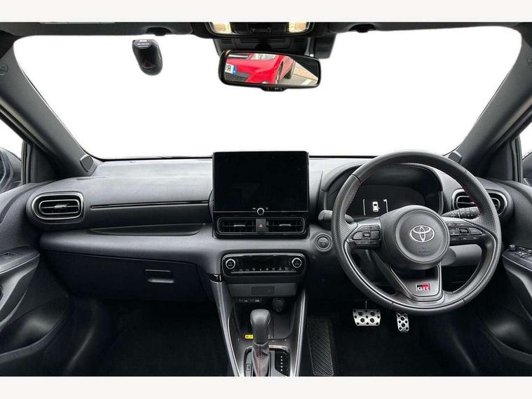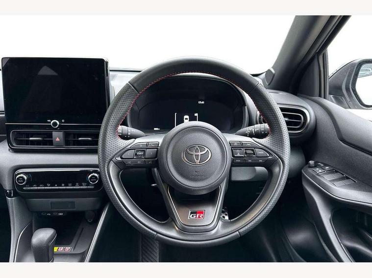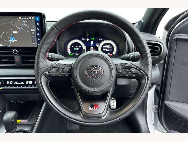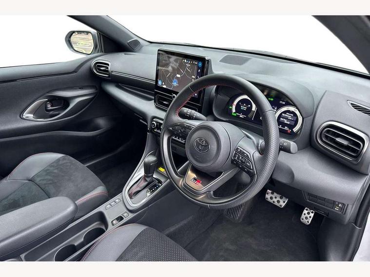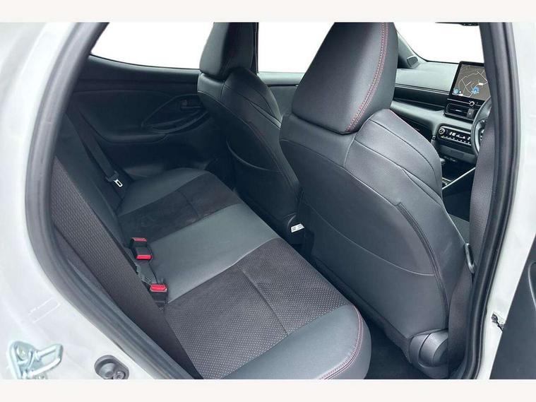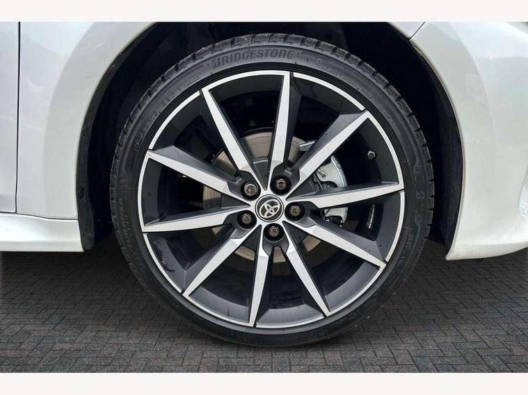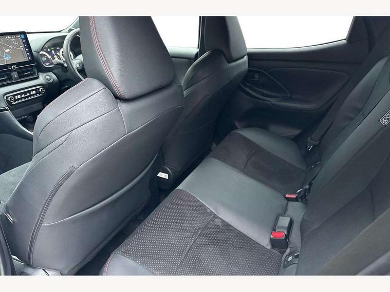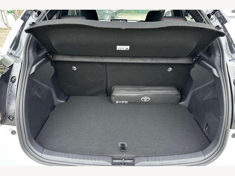 12.3" Digital Combimeter, Adaptive cruise control, Adjustable speed limit with speed warning, Bluetooth connectivity, Colour binocular inspired displays with digital speedometer, E-call, Electric power steering, Hybrid energy display, Lane trace assist, Multi information display switches on steering wheel, Pre-collision system (PCS), Reversing camera, Tailgate, Voice recognition, Wireless charger, Vehicle Stability Control (VSC), 10.5" Toyota smart connect multimedia with wireless smartphone integration incl apple car play and cloud Navigation, 6 speakers, Toyota Touch 3 system with DAB radio, USB connection, Acoustic windscreen glass, Auto high beam assist, Auto windscreen wipers, Automatic headlights, Dark chrome lower front grille, Electric adjustable heated door mirrors, Follow me home headlights, Front auto power windows with anti jam protection, LED daytime running lights, LED front fog lights, LED front light guide, LED Headlights, LED High mounted stop lamp, LED Indicators, LED rear light guide, Manual headlight levelling, Painted chequered front grille with hot stamp in mesh design, Rain sensor, Rear auto power windows with anti jam protection, Rear privacy glass, Rear roof spoiler, Rear side wing doors, Rear wiper, Shark fin antenna, Turning signal integrated indicators in door mirrors, Variable front intermittent wipers, 3 adjustable rear headrests, 3 seat bench in 2nd row, 3 spoke leather steering wheel, 60/40 split folding rear seat, Active headrests, Adjustable boot height, Ambient lighting, Black roof lining, Coat hooks in rear grab handles, Cup holders (2 front & door), Data Communication Module (DCM) connected services, Dual zone automatic air conditioning, Front armrest, Front sport seats, Glovebox, GR embossed in headrests, Height adjustable driver's seat, Height adjustable passenger seat, Isofix seat fixing, Leather gearshift, Map pockets on the backs of the front seats, Pollen filter, Shopping bag hooks, Single front passenger seat, Suede upholstery, Tilt/telescopic steering column, 3 point seatbelts on all rear seats, ABS+EBD+Brake assist, Electronic parking brake, Emergency brake light system (EBS), Front passenger airbag on/off switch, Front seatbelt reminder, Hill start assist control (HAC), Rear child proof door locks, Rear seat belt reminder, Supplemental Restraint System (SRS) 8 airbags: Driver & passenger's airbags, dual side curtain airbags, side impact airbags, front centre airbag, Toyota Safety Sense 3 with over the air updates, Tyre pressure warning system, 2x Master key, Alarm/immobiliser, Keyless smart entry with push button start, Remote AC via MyT, Remote locking via MyT, Remote powered central double locking doors, GR Sport interior styling with accents and exterior styling, Piano black interior trim, Soft touch instrument panel, 18" Black Machined-face, 10 spoke alloys wheels, Space saver spare wheel,