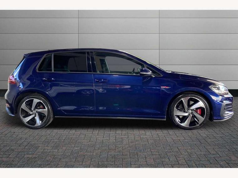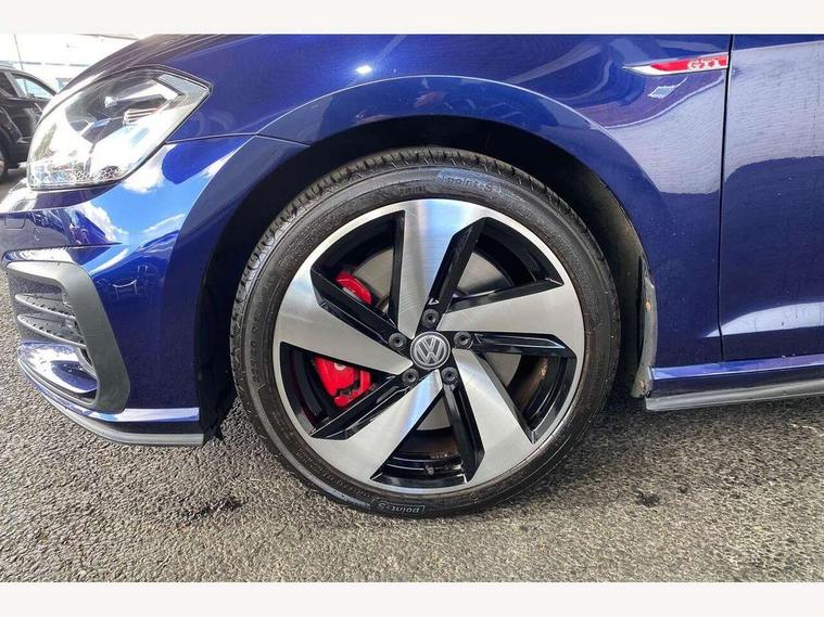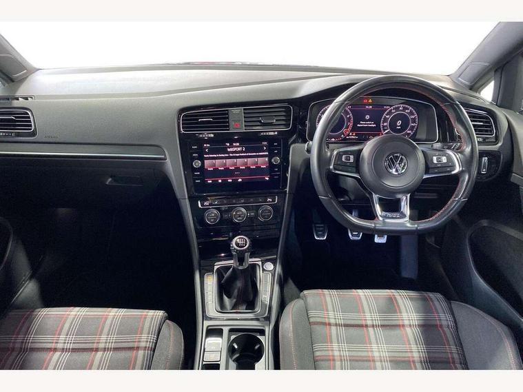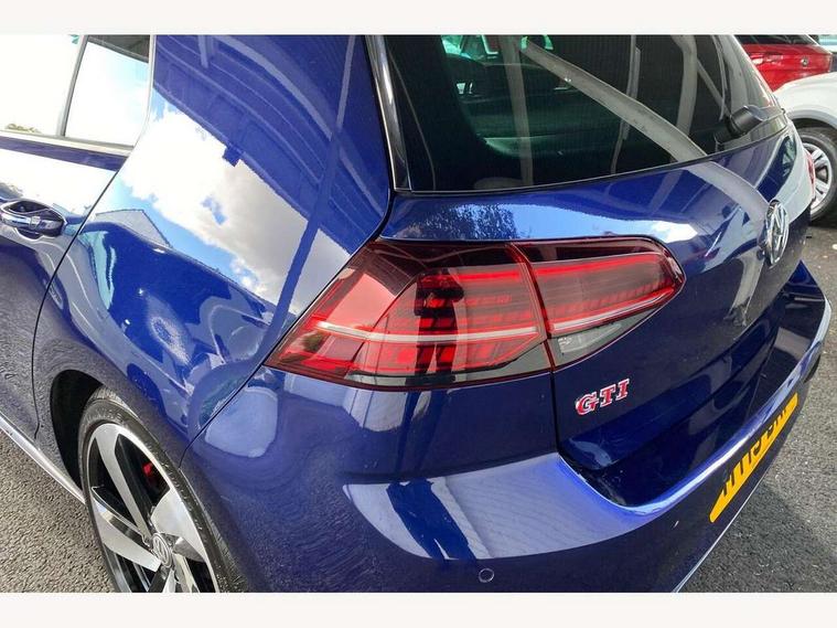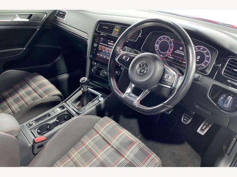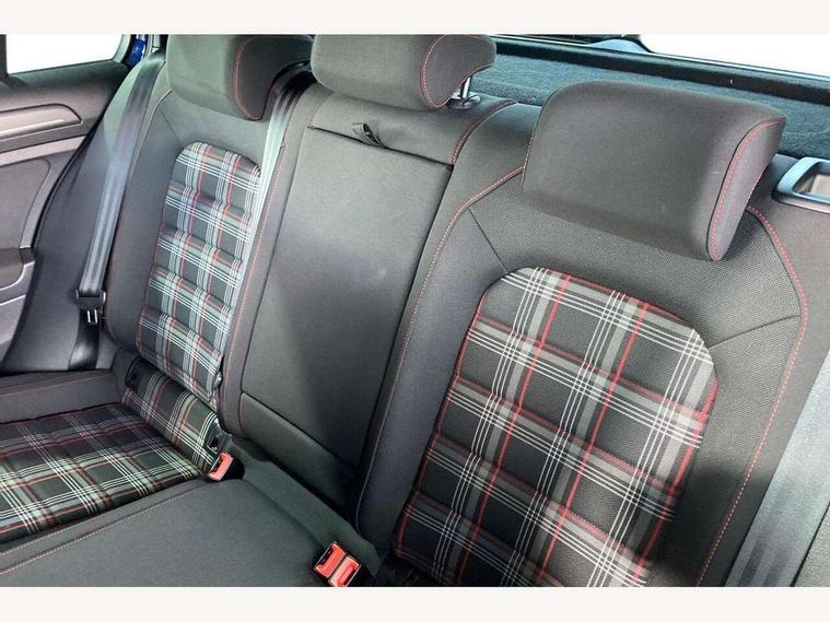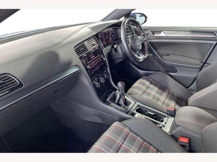 'Lights On' Reminder warning buzzer, ACC - Adaptive cruise control with front assist, forward collision warning, distance monitoring, city emergency brake and speed limiter, Bluetooth telephone and audio connection for compatible devices, Brake pad wear indicator warning light, Driver alert system, Driver profile selection, Driving Mode Selection with four preset modes - Eco, normal, sport or individual modes, Instrument cluster in white, Lane assist with dynamic light assist and traffic sign recognition, Multifunction computer with visual gear change recommendation for fuel consumption, Power assisted speed sensitive electro-mechanical steering, Push tank flap, Rear view camera, Speedo, rev counter, electronic odometer, trip, service interval display, exterior temperature and fuel gauge, Stop/start system, Warning buzzer and light for front seatbelts unfastened, Battery regeneration during braking, Limited slip differential, Lowered sports suspension, XDS electronic differential lock, Composition media system, DAB Digital radio receiver, MP3/WMA compatability, Multi device interface (MDI) with USB connection, Premium USB cable in choice of either Apple or Android smartphone compatibility, SD card slot, SMS Functionality, USB and SD card connectivity, Volkswagen media control, 3D-LED tinted rear light clusters with indicator sweep function, Black rear diffuser, Body colour door handles, Body colour door mirrors with integrated indicators, Body colour rear roof spoiler, Body colour sports bumpers, Dusk sensor + automatic driving lights, Electric front windows, Electric rear windows, Electrically adjustable and heated door mirrors, Fully galvanised body, GTI logo in red on front and back, GTI logo lettering on front wings on right and left, Heated rear windscreen, High level 3rd brake light incorporating LED Technology, Honeycomb radiator grille - black, LED daytime running lights, LED front fog lights with static cornering light function, LED headlights with dynamic light assist, Rear fog lamp, Rear window aerial, Rear window wash/wipe with intermittent wipe, Reflectors in all doors, Shiny black aerofoil downside, Sill extensions, Twin exhaust tailpipe, Windscreen wipers/ intermittent wipe + 4 position delay, 12V socket in luggage compartment, 3 rear headrests, 4 load lashing points in luggage compartment, 60/40 split folding rear seat backrest, Bag hook in luggage compartment x 2, Black headlining, Climate control - 2 zone electronic air conditioning with automatic air recirculation and allergy filter, Cooled glovebox, Dust/pollen filter, Front + rear carpet mats, Front centre armrest with storage compartment and two rear air vents, Front seat back storage pockets, Grab handles front x 2, rear x 2 with integrated coat hooks, Height and reach adjustable steering wheel, Illuminated door sills, Illuminated vanity mirrors, Instrument lighting white adjustable panel illumination, Interior light delay, Isofix preparation for 2 rear child seats, Leather gear knob and handbrake grip, Load through provision with rear centre armrest and cupholders x2, Luggage compartment lighting, Multifunction leather steering wheel with GTI logo and selector lever boot grip with red stitching, Overhead storage box, Stainless steel pedals, Storage box in luggage compartment, Storage compartment in roof console with cover, Storage compartments in front doors, Storage compartments in rear doors, Stowable luggage compartment cover, Sun visors, Variable boot floor, height adjustable and removable, Ambient lighting pack - Golf, Convenience Pack - Golf, Light and Sight pack - Golf, Mirror pack - Golf, 3 rear three point seatbelts, Airbags - Driver's and front passenger's, curtain airbag, Driver's knee, front side impact and passenger's airbag deactivation switch, Anti-lock Braking System (ABS) with Hydraulic Brake Assist (HBA), Automatic post collision braking system, Child locks on rear doors, Driver/Passenger optimised head restraints, Electronic parking brake with auto hold, Electronic stability control (ESC) including Electronic differential lock (EDL) and ASR (Traction control) with deactivation via infotainment system, Front ventilated disc brakes and rear disc brakes, Pre crash preventive occupant protection, Red brake calipers, Three point height adjustable front seatbelts with tensioners, Tyre pressure loss indicator, Alarm with interior protection and deactivation via infotainment system, Electronic engine immobiliser, Keyless entry with start/stop button on centre console, Remote central locking with 2 remote folding keys, Chrome plated air vent surround, Chrome plated electric mirror adjustment light switch surround, Honeycomb black decorative inserts, Piano black centre console, Steel space saver spare wheel,