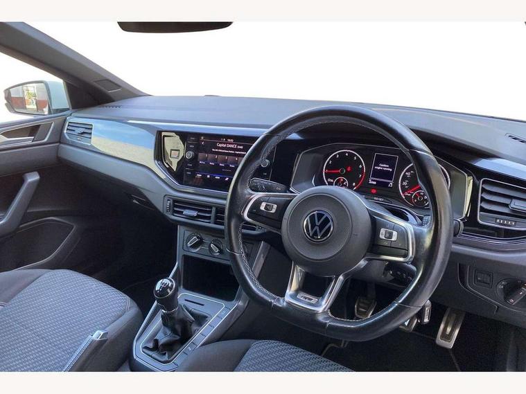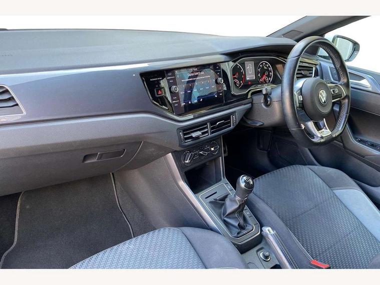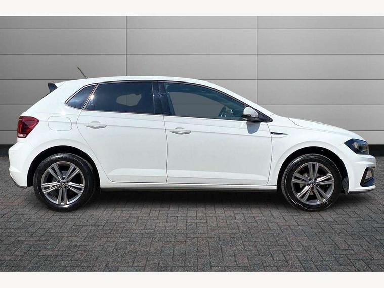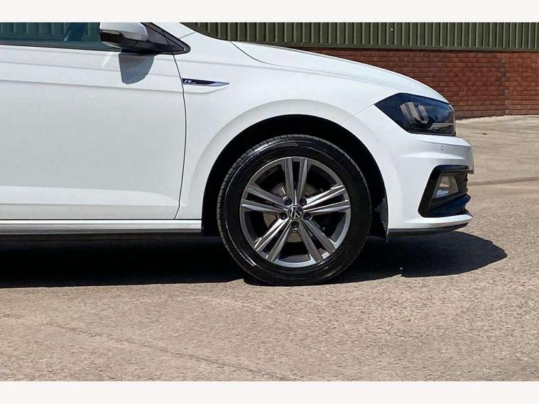Digital clock, Driver alert system, Emergency call service, Lights on warning, Multifunction computer plus, Power assisted speed sensitive steering, Speedo and rev counter, electronic odometer, trip, service interval display and fuel gauge, Start/stop system, Volkswagen connect, Warning buzzer and light for front seatbelts unfastened, Wireless app connect, Battery regeneration during braking, Galvanished body, Diversity antenna for FM reception, Front and rear 6 speakers, Black grille with chrome surround, Body colour door handles, Body coloured side sills, Chrome trimmed strip on lower bumper, Electric front windows, Electrically adjustable and heated door mirrors with reverse activated kerb view adjustment on passenger's side, Front windscreen washers and wipers with 4 speed intermittent delay, Heated rear window with auto timer, High level 3rd brake light, LED darkened rear light clusters, LED daytime running lights, LED rear number plate lights, Left and right chrome effect trapezoid fascia exhaust tailpipe surrounds, Rear diffuser, Rear electric windows, Rear windscreen washer and wiper with interval delay, reverse activated, Unique R Line badging, 2 bag hooks in luggage compartment, 2 front cupholders and 12 V socket with cover, 3 rear head restraints, 60/40 split folding rear seat, Ambient lighting in front foorwell, front/rear door and dashboard light strips, Carbon flag cloth upholstery, Centre console storage with open storage compartment, Chrome-plated electric mirror adjustment switch surround, Chrome-plated electric window button surround, Driver and front passenger seat height adjustment, Driver and front passenger sunvisors with illuminated vanity mirrors, Dust/pollen filter, Folding rear seat backrest, Front + rear carpet mats, Front head restraints, Front seat backrest storage pockets, Front sport seats with lumbar adjustment and R line logo on seat backrest, Gear lever gaiter in black trim surround, Glovebox, Handbrake grip button in chrome effect, Height/reach adjustable steering column, Instrument lighting, adjustable panel illumination, Interior light with delay, Isofix Preparation 2 Rear child seats, Leather gear knob and handbrake grip, LED interior lighting - 2 reading lights front and rear with interior delay and dimming function, Luggage compartment cover, removable, Luggage compartment lighting, Luggage compartment with variable load floor, Stainless steel pedals, Storage compartment in front doors, Storage compartment in rear doors, Storage compartment under front seats, Three spoke leather trimmed multifunction steering wheel with aluminium inserts and R Line Logo, Titanium black roof lining and sun visors, Unique R Line door sill protectors, Light and sight pack - Polo, R Line styling pack - Polo, 3 point height adj front seatbelts + pretensioners, 3x3 point rear seatbelts, ABS, Automatic post collision braking, Driver/front passenger airbag, Drivers and front passengers safety optimised head restraints, ESP with EDL + ASR, Front and rear passenger curtain airbags, Front passenger airbag deactivation, Front seat side impact airbags, Front/rear disc brakes, Hill hold control, Hydraulic Brake Assist (HBA), Single tone horn, Tyre pressure monitoring system, Alarm with interior protection and deactivation via infotainment system, Electronic engine immobiliser, Remote central locking with 2 remote folding keys, Chrome plated air vent surround, Chrome plated instrument surrounds, Shadow steel decorative inserts,