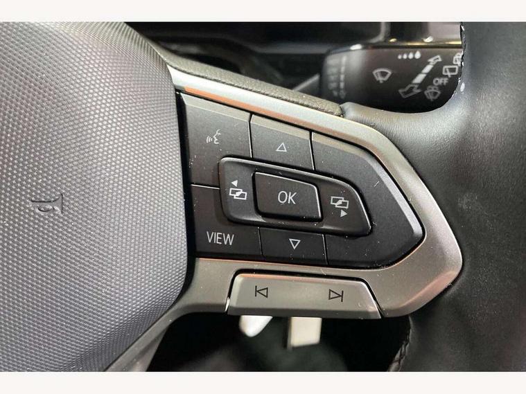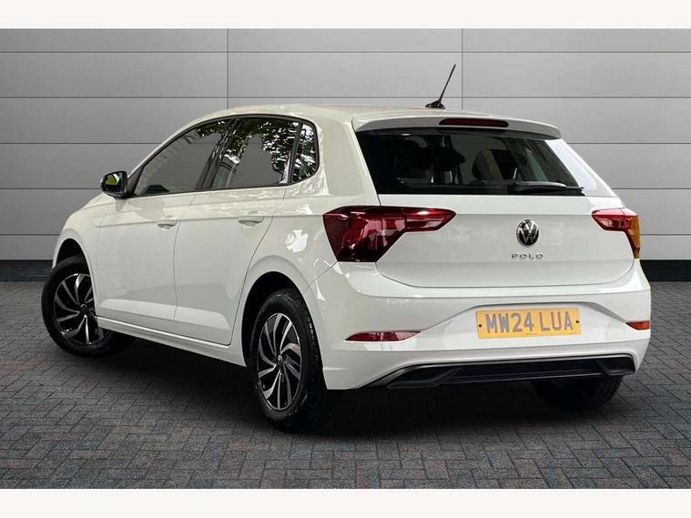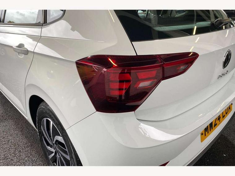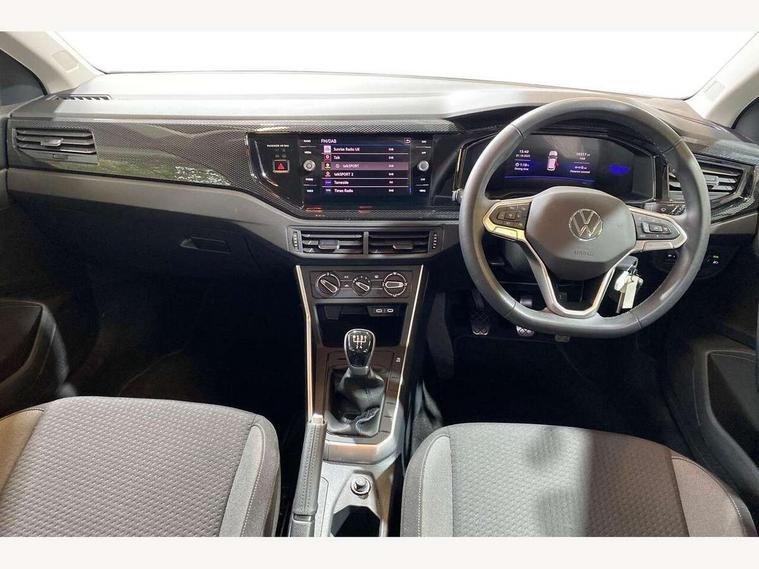 Adaptive cruise control without follow-to-stop and speed limiter, Advanced driver attention and drowsiness monitor, Bluetooth mobile phone interface, Dynamic road sign display, Emergency call service, Power assisted speed sensitive steering, Preparation for navigation system with media and internet package, Preparation for We connect and We connect plus, Speedo and rev counter, electronic odometer, trip, service interval display and exterior temperature gauge, Standard rear axle, Travel Assist - Lane keeping system and traffic jam assist, Travel assist including emergency assist, Trip computer, Warning signal and warning light for front and rear seatbelts not fastened, Washer fluid level indicator, Wireless app connect, Front wheel drive, Rear shock absorpion, Start-stop system with battery regeneration (recuperation - energy recovery during braking), DAB Digital radio, Diversity antenna for FM reception, Front and rear 6 speakers, Automatic dimming interior rear view mirror, Automatic headlight control with LED separate daytime running lights with coming/leaving home function, Body colour bumpers with chrome inserts, Body colour door handles, Body colour door mirrors, Electric front windows, Engine badge deletion, Headlight range adjustment, Heat insulating and laminated safety glass windshield, Heat insulating darkened glass in side and rear windows, Heat insulating glass windscreen, LED Headlights, LED rear combination lamps, Power folding adjustable/heated exterior mirrors and front passenger exterior mirror lowering function, Rain sensor, Rear electric windows, Rear fog light, Rear side wing doors, Rear windscreen washer and wiper with interval delay, Third brake light, 12V power socket in centre console, 2 front and 2 rear reading lights with switch off delay and dimmer, 2 USB-C ports in the front, 2 USB-C charging sockets on the center console in the rear, 3 rear head restraints, 60/40 split folding rear seat and rear seat bench not split, Ceramique roof lining, Chrome plated radiator grille inserts, air vent surrounds and light switch surrounds, Door and side trim panel, Driver and front passenger seat height adjustment, Driver/passenger sunvisors with illuminated vanity mirrors, Front centre armrest, Front seat backrest storage pockets, Front standard seats, Handbrake lever handle in leather, Hartley/Thomas cloth upholstery, Headliner in recycled material, Isofix child seat preparation easy-fit (for two outer rear seats, and front passenger seat) compatible with I-size, Leather trimmed gear knob, Luggage compartment cover, Luggage compartment lighting, Removable luggage compartment floor, Single front passenger seat, Standard climatic zones, Standard pedal cluster, Three spoke leather wrapped multifunction steering wheel, Light and vision pack - Polo, 3 point height adj front seatbelts + pretensioners, 3x3 point rear seatbelts, ABS, Driver and front passenger airbag with front passenger airbag deactivation, Drivers and front passengers safety optimised head restraints, ESC (Electronic stability control) + EDL (Electronic Differntial lock) and ASR (Traction control), Extended and predictive pedestrian/ cyclist protection, Front assist with autonomous emergency braking (for Adaptive Cruise Control ACC up to 130 mph), Front curtain and side airbags with center airbag, Front disc brakes, Hill hold control, Manual child lock in rear doors, Rear drum brakes, Single tone horn, Tyre pressure loss indicator, Alarm with interior protection, Anti-theft alarm system with interior monitoring, backup horn, and towing protection, Anti-theft wheel bolts, Electronic engine immobiliser, Lava stone black gloss/matt decorative inserts in dash and front door panels, Low rolling resistance tyres,