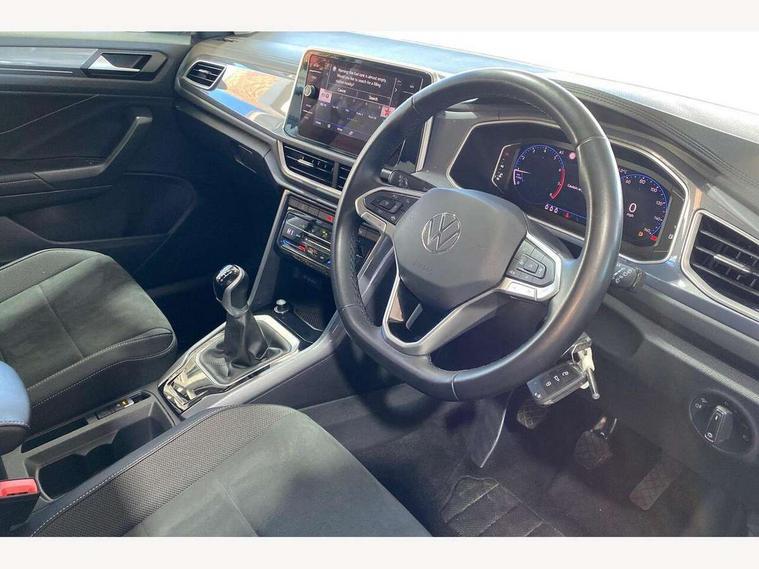 10.25" Digital cockpit pro, Bluetooth mobile phone interface, Driver alert system with fatigue detection, Driver tips and journey analysis, Dynamic road sign display, Emergency call service, Lane keeping system Lane Assist, Modified key software - reduce switch off time for key status change to Long no motion, Online services, Park assist including front and rear parking sensors, Power assisted speed sensitive steering, Service interval indicator, Tailgate/trunk lid release from outside, Think blue trainer driver tips and journey analysis, Warning sound and light for front seatbelts unfastened, Wireless app connect, Battery regeneration during braking, Front shock absorption, Rear shock absorption chassis with increased ride height, Start/stop function with battery regeneration, Diversity antenna for FM reception, Music playback - MP3, WMA and AAC files, Premium USB cable in choice of either Apple or Android smartphone compatibility, SD card slot, Simultaneous pairing of 2 compatible mobile devices, Title and cover art display, We Connect and We Connect Plus functionality, 3rd brake light, Auto dimming interior rear view mirror, Automatic hazard lights activation under emergency braking, Automatic headlight control with LED separate daytime running lights with coming/leaving home function, Body colour sports bumpers with silver metallic underbody fascia, Dynamic headlight range control with self adjusting whilst driving, Extended roof spoiler, Exterior mirrors aspherical on driver side, convex on front passenger side, External USB type C socket and charging sockets, Front windscreen wiper with intermittent wipe and 4 position delay, Heated rear window, LED rear combination lamps, LED rear number plate lights, LED tail lamp rear comination lamps, Light mode for poor weather, rain, fog or snow, Power windows with comfort operation and circuit breaker, Rain sensor, Rear exhaust tailpipe, Rear fog light on one side and reversing lights on both sides, Rear side wing doors, Rear wash/wipe with intermittent wipe setting, Remote electrically foldable door mirrors, puddle lights and reverse activated passenger's door mirror, 12V power socket in centre console, 3 rear head restraints, 3 seat bench in 2nd row, 4 load lashing points in luggage compartment, Air care climatronic air conditoning system with active combination filter and 2-zone temperature control, Chrome plated radiator grille inserts, air vent surrounds and light switch surrounds, Door and side trim panel with leatherette insert, Drawer under drivers seat, Front + rear carpet mats, Front centre armrest, Front comfort sports seats, Front cupholders x 2, Front footwell illumination, Instrument lighting, white adjustable panel illumination, Interior ambient lighting and surround lighting, Interior light delay, Isofix child seat preparation, Leather gearshift handle, LED interior light with switch off delay/dimmer and 2 front/rear LED reading lights, Load-through provision with cup holder when folded down ('Unsplit rear seat bench, split folding backrest, with centre armrest), Luggage compartment lighting, Non-folding front passenger seat backrest, Single front passenger seat, Storage compartment in left and right luggage area, Storage compartment in rear doors, Storage compartments in driver and front passenger doors, Sunvisors with illuminated vanity mirrors, Variable boot floor, height adjustable and removable, Driver assistance pack without proactive passenger protection - T-Roc, 3 point height adj front seatbelts + pretensioners, 3 point seatbelts in outer rear with ECE label, ABS, Child locks on rear doors, Driver and front passenger airbag with front passenger airbag deactivation, Driver and front passenger safety-optimised head restraints, Drivers seatbelt reminder, Electronic parking brake, Electronic Stability Control (ESC) inc EDL (Electronic Differential Lock) and ASR (Traction Control), Front and rear passengers curtain airbag system including front side airbags, Front assist with city emergency braking and pedestrian monitoring, Front disc brakes, Front seat side impact airbags, Predictive pedestrian protection, Rear disc brakes, Single tone horn, Tyre pressure loss indicator, Volkswagen roadside assistance, Anti-theft alarm system with interior monitoring, backup horn, and towing protection, Remote central locking with SAFELOCK, radio remote control with 2 remote control folding keys, Trims for alloy wheels,