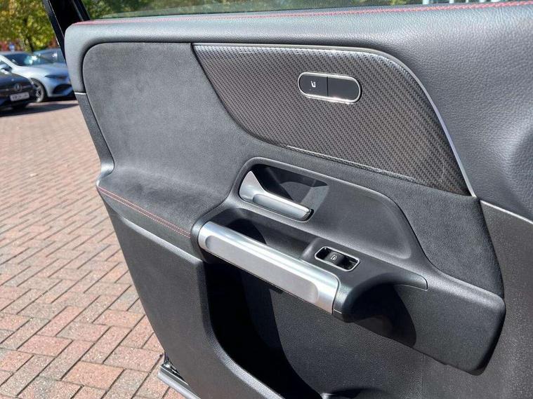 10.25" Digital instrument cluster display screen, 10.25" Digital media screen display, Active lane keeping assist, Attention assist - Monitors steering behaviour and long journey fatigue, Brake pad wear indicator warning light, Car wash mode, Cruise control with limiter, DYNAMIC SELECT with a choice of driving modes (ECO, Comfort, Sport and Individual), Easy-pack tailgate, ECO start/stop function, Fluid level warning indicator for fuel, oil, coolant and washer fluid, Hard disk navigation, Hey Mercedes Voice activation, Lamp failure indicator, MBUX augmented reality for navigation, Mercedes me connect including emergency call system, accident recovery, breakdown management and maintenance, Mercedes me remote services, Outside temperature gauge, Owners manual and service booklet in English, Parameter steering system, Pre-installation of private car share, Radio aerial integrated into front and rear windshields, Service indicator (ASSYST), Smartphone integration with Apple CarPlay and Android auto, Speed limit assist, Trip computer in multifunction display with current consumption indicator, Wireless charging, 23.8 litre AdBlue fuel tank, 60 litre fuel tank, Comfort suspension, Rear axle multi-link, DAB digital radio tuner, MBUX multimedia system with DAB digital radio and touchpad including satellite navigation, Mercedes Benz advanced sound system (225 W) with 10 speakers, 1 central speaker, speakers on doors, a tweeter on door, one sub woofer + boost amplifier, Pre installation for Mercedes Benz Link, USB (type C) port in front stowage compartment, USB (type C) ports (2) in stowage compartment, Adaptive brake lights, Aerial for GPS, AMG bodystyling door panels black grained with chrome plated inserts, AMG bodystyling front apron with chrome splitter, AMG bodystyling rear apron with diffuser optics and chrome trim element, AMG specific front and rear bumper including underride guard in high gloss chrome, Beltline strips and weather strip in chrome, Body coloured door handles with chrome insert for keyless entry, Body coloured door mirror caps, Electric adjustable and heated door mirrors with integrated LED side indicators, Exhaust system with dual flow exhaust pipes (non-functional), Front and rear electric windows, Headlamp assist automatic headlamp activation, Heated glass rear windscreen + timer control, High level LED third brake light, Interior mirror with black reading lamps and frameless, LED high performance headlamps with integrated LED daytime running lights, LED tail lamp, Polished aluminium roof rails, Pre-installation for trailer coupling, Privacy glass with dark tinting on rear side windows and rear window, Radiator grille with pins in chrome and single louvre with chrome insert, Rain sensor windscreen wipers, Rear fog lamp, Two visible tailpipe trim elements exhaust, 3 spoke multifunction sport steering wheel in nappa leather, Air conditioning - Two zone thermotronic luxury automatic climate control with display, AMG sports pedals with brushed stainless steel surfaces and black rubber studs, Artico man-made leather/Microfibre Dinamica upholstery with red contrast stitching, Automatic child seat recognition sensor, Black floor mats with AMG lettering, Black roof lining, Fore/aft adjustment rear seats, Freight packaging with tie-down hooks, Front centre armrest with stowage, Front door sills with illuminated changeable cover, Front passenger grab handle with brushed side silver chrome, Galvanished gear shift paddles on steering wheel, Heated front seats, Height/reach adjustable steering column, Interior lighting - 64 colour Ambient lighting, Luggage net on driver/front passenger seat backrest, Net in front passenger footwell, Rear armrest with two integral cup holders for drinks, Sports seats with adjustable head restraints, Stowage compartment in centre console, Stowage compartment with retractable cover, Third row of seats for two people on rear seat, Third row of seats with isofix and top tether child seat fixing points, Touchpad on center console, Twin front cup holders, Two outer rear seat isofix and top tether child seat fixing points, Interior lighting with light and sight pack - GLB, Keyless Go comfort pack - GLB, Mirror pack - GLB, Off-road engineering package - GLB, Parking pack - GLB, Seat comfort pack - GLB, 3 rear 3 point seatbelts, Active bonnet pedestrain safety measure which detects an impact and raises bonnet by 65mm, Active brake assist includes forward collision warning system with autonomous braking, Adaptive brake assist with hold function and hill start assist, Airbags - kneebag for driver, Anti-lock braking system (ABS) with brake assist, Childproof locks manually operated for rear doors and electrically operated for rear power windows, Crash responsive emergency lighting, Driver and front passenger head and sidebags, Driver and front passenger windowbags, Dual stage driver and front passenger airbags, Electronic parking brake, Electronic stability programme with acceleration skid control, ESP curve dynamic assist, Front and rear seatbelt reminder, Front brake callipers with Mercedes Benz lettering, Front passenger seat occupancy sensor, Perforated and ventilated front brake discs, Tyre pressure monitoring system, Warning triangle and first aid kit, Remote central locking and crash sensor with emergency opening function, Urban guard vehicle protection - Anti theft alarm system, tow away protection with visual and acoustic warning and alarm siren, Vehicle key with decorative surround in chrome, Black air vents with chrome surround, Carbon structure trim, 19" AMG 5 twin spoke light alloy wheels painted in tantalite grey with high sheen finish, Summer tyres, Tirefit tyre sealant kit,