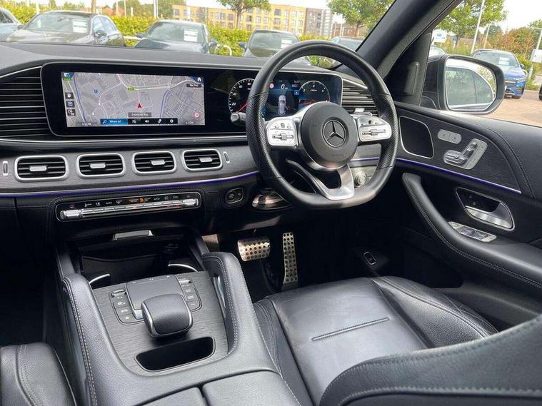 12.3 High resolution wide screen cockpit display with choice of three display styles Classic, Progressive or Sport and unique ambient lighting setting, Attention assist, Blind spot assist, Brake wear warning display, Cruise control with variable speed limiter, Direct steer speed sensitive steering, DYNAMIC SELECT with a choice of driving modes (ECO, Comfort, Sport and Individual), Easy-pack tailgate - Powered opening/closing automatically, ECO start/stop function, Geofencing, Hard-disk navigation, Hey Mercedes Voice activation, High resolution 12.3" multimedia colour display, Lane keeping assistant (LKA), Mercedes me connect including emergency call system, accident recovery, breakdown and maintenance management, Outside temperature display, Remote boot release, Reversing camera, Service indicator (ASSYST), Smartphone integration, Speed limit assist, Status display for rear seat belts in instrument cluster, Traffic Sign Assist, Traffic sign recognition including wrong way warning function and display of posted speed limits in the instrument cluster, Trip computer in multifunction display showing current fuel consumption, 85 litre fuel tank, 9G TRONIC 9 speed automatic transmission, Diesel particulate filter (DPF), Incorrect fuelling protection, Lowered comfort suspension with steel springs and selective adaptive dampening with lowering by up to -15mm, Additional USB connection, DAB Digital radio, Dual bluetooth interface, 2 USB ports (type C), MBUX multimedia system, 3rd brake light, Adaptive brake lights, Adaptive high beam assist, Aerial for GPS, Aluminium look, illuminated running boards with rubber studs, AMG bodystyling front and rear aprons and side skirts in polished aluminium, Body colour door mirrors, Body coloured bumpers, Daytime running lights, Electric windows with one touch opening/closing and obstruction sensors, Exterior mirrors heated and electronically adjustable, Front green tinted glass, LED high performance headlamps, LED rear lights, Privacy glass - heat insulating dark tinted glass, Radiator grille with integrated star and single louvre in matt iridium silver with chrome trim, Radio aerial integrated into rear window, Rain sensing windscreen wipers, Rear side wing doors, Rear wiper, Roof rail system, Top surround of side windows in polished aluminium, Visible twin pipe exhaust system integrated into bumper, Waistline in polished aluminium, 3 spoke AMG multifunction steering wheel with touch control buttons, trimmed in black nappa leather with flattened bottom section, 3rd row of seats for 2 people, 4 way adjustable front head restraints and 2 way rear head restraints, 4 way lumbar support, 40:20:40 split folding rear seats, AMG brushed stainless steel sports pedals with rubber studs, AMG floor mats with AMG lettering, Artico man-made leather upper dashboard with contrast topstitching, Automatic child seat recognition sensor, Black roof liner, Central stowage compartment with 12 V socket in centre console, Chrome door pins, Courtesy lights in rear grab handles with reading light functionality, Electric height/reach adjustable steering column, Front centre armrest with stowage compartment and illuminated grab handles, Gearshift paddles on steering wheel, Glove compartment - lockable, air conditioned and illuminated, Heated front seats, Interior lighting - 64 colour Ambient lighting, Seat occupancy sensor for front passenger seat, Second row three seats, Single front passenger seat, Sports steering wheel, Sunvisors with illuminated vanity mirrors, Thermotronic automatic 4 zone climate control, Touchpad, Anti theft Protection package - GLE, Memory package - GLE, Mirror package - GLE, Parking package - GLE, Active bonnet, Active braking assist, Adaptive brake system with HOLD function and brake drying in the wet, Airbags - driver and front passenger, with extended adaptivity for front passenger airbag, Airbags - sidebag for driver and front passenger with combined thorax/pelvis bag, Airbags - windowbags, Anti-lock braking system (ABS), Childproof locks manually operated for rear doors and electrically operated for rear power windows, Drivers knee airbag, Electronic parking brake, Electronic Stability Programme (ESP), ISOFIX child seat attachment points two outer rear seats, Perforated front brake discs and brake calipers with Mercedes-Benz lettering, Pre-Safe anticipatory safety system, Three point rear seat belts, Tyre pressure monitoring system and loss warning system, Warning triangle and first aid kit, Alarm system/interior protection/immobiliser, Central locking with interior switch, automatic locking and crash sensor with emergency opening function, Chrome surround electric key, Keyless Go starting function, Dashboard and door, anthracite open pore oak wood trim, Trim - Centre console, anthracite open pore oak wood trim, 21" AMG multi spoke light alloy wheels painted in black with a high sheen finish, Summer tyres with noise reducing absorber, TIREFIT with tyre inflation compressor,