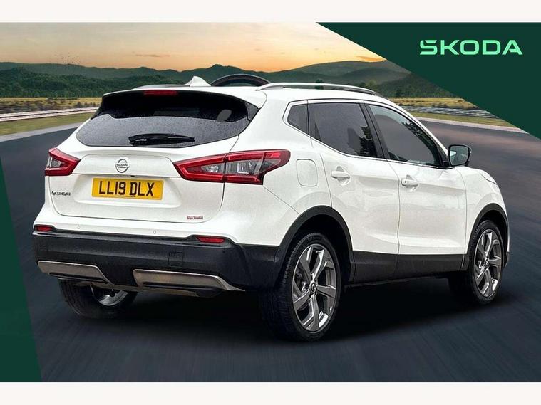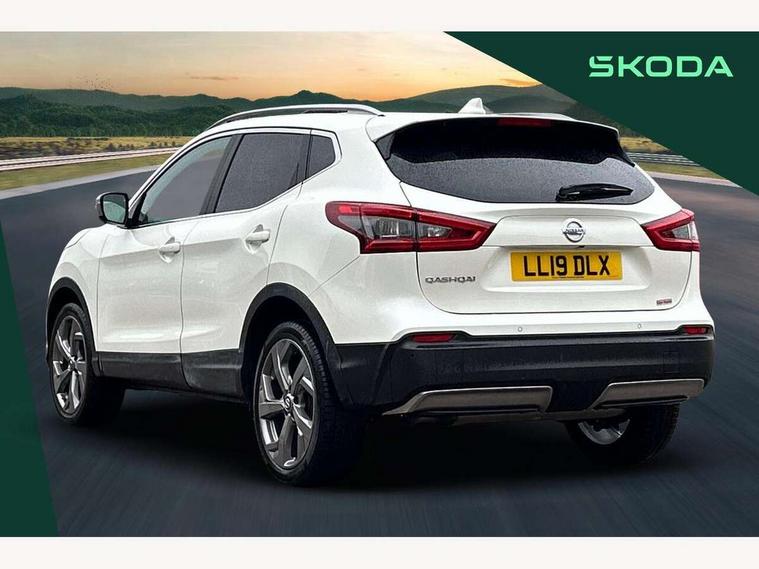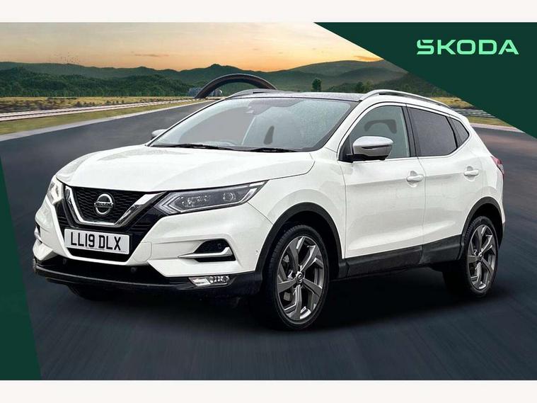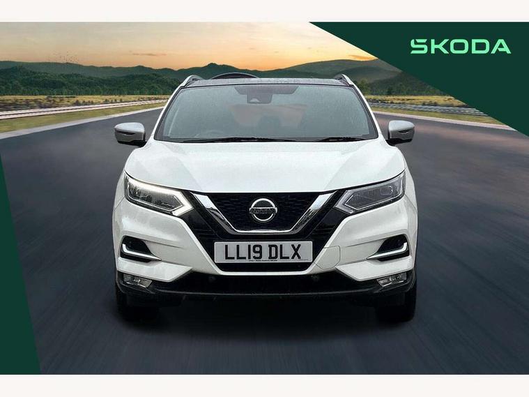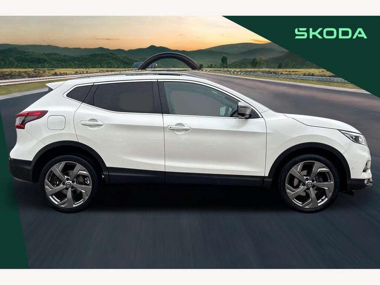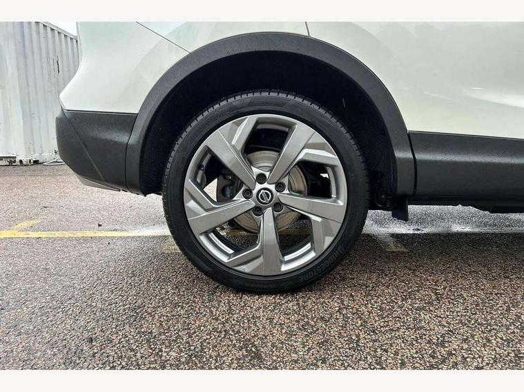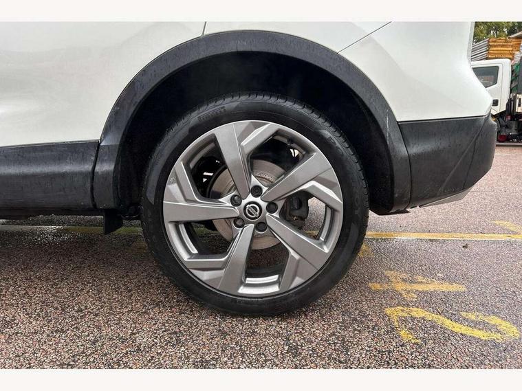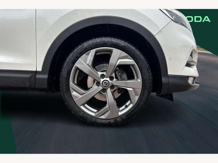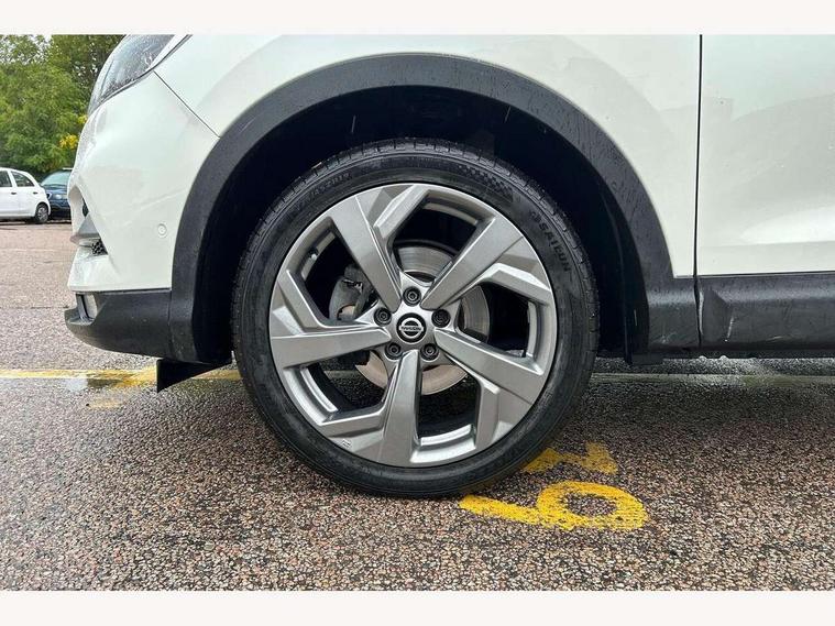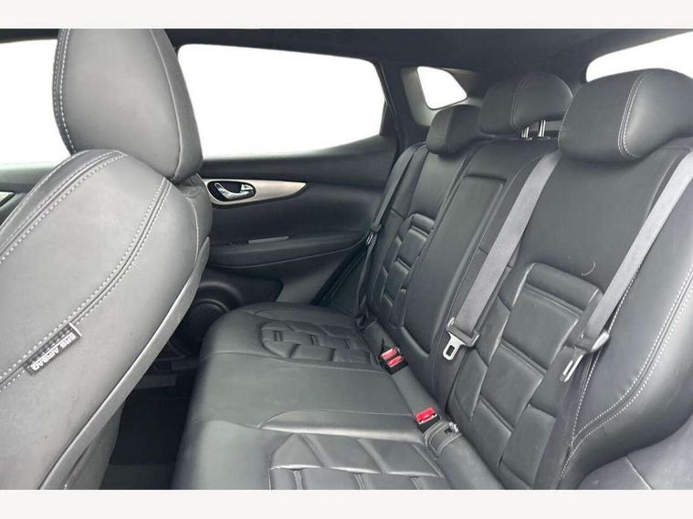 Advanced drive assist display 5'' TFT coloured screen, Android Auto, Apple CarPlay preparation, Bluetooth connectivity, Cruise control + speed limiter, Electric speed sensitive power steering, Front parking sensors, Intelligent around view monitor, Intelligent parking assist, Lane departure warning system, Nissan connect evo 7" touchscreen navigation and entertainment system, Normal or sport selectable steering, Outside temperature sensor, Push button starter, Rear parking sensors, Rear view camera, Service interval indicator, Smartphone integration, Stop/start system, Tomtom connected services, Traffic sign recognition, Trip computer, Voice control system, Nissan chassis control (intelligent ride control, intelligent trace control, intelligent engine brake), AM/FM radio, CD audio system, Aux-in socket, Bose premium 8 speaker system, DAB Digital radio, Steering wheel mounted audio controls, USB port, Anti dazzle rear view mirror, Auto wipers, Body colour bumpers, Body coloured door handles, Chrome window surround, Daytime running lights dip function when turn signal applied, Electric folding door mirrors, Electric front and rear windows with one touch illuminated window controls, Electric front/rear windows, Electrically adjustable door mirrors, Front fog lights, Gloss silver door mirror caps, Heated door mirrors, High beam assist, Intelligent auto headlights, LED indicators in door mirrors, Matt silver roof rails, Panoramic sunroof with one touch shade, Privacy glass, Rear roof spoiler, Rear wiper with reverse link, Shark fin antenna, Underbody vortex generators, 2 X front 12v power sockets, 3 height adjustable rear headrests, 60/40 split folding rear seat, Ambient lighting in centre console, Boot lighting, Centre console storage box/armrest, Chrome interior door handles, Configurable luggage board system, Dark headlining, Dual zone climate control, Electric 4-way lumbar support for drivers seat, Electrically adjustable driver seat, Electrically adjustable passenger seat, Front and rear door pockets with bottle holders, Front and rear seat belt pre-tensioners with load limiters, Height adjustable front headrests, Individual rear seat reading lights, Leather D shaped steering wheel, Leather gear lever, Leather knee pad, Manual lumbar support on passenger seat, Map reading lamp, Memory for drivers seat/door mirrors, Monoform front seats with plastic backboard, One touch electric shade, Parcel shelf stow function under luggage board, Pollen filter, Rear armrest with 2 cupholders, Synthetic leather wrapped door handle with contrasting stitching, Tilt/telescopic adjustable steering wheel, Heat package - Qashqai, LED pack - Qashqai, Safety shield plus pack - Qashqai, 6 airbags - Driver, front passenger, curtain and side airbags, ABS, ESP, EBD and brake assist, Auto hold function, Child locks on rear doors, Electronic parking brake, Front and rear seat belt warning, Front passenger airbag deactivation, Height adjustable front seatbelts, Hill start assist, Intelligent emergency braking with pedestrian recognition, Three 3 point rear seatbelts, Tyre pressure monitoring system, Anti-theft immobiliser, Intelligent Key, Remote central locking, Thatcham Cat.1 alarm, Carbon graphite dash trim, Tyre puncture repair kit,