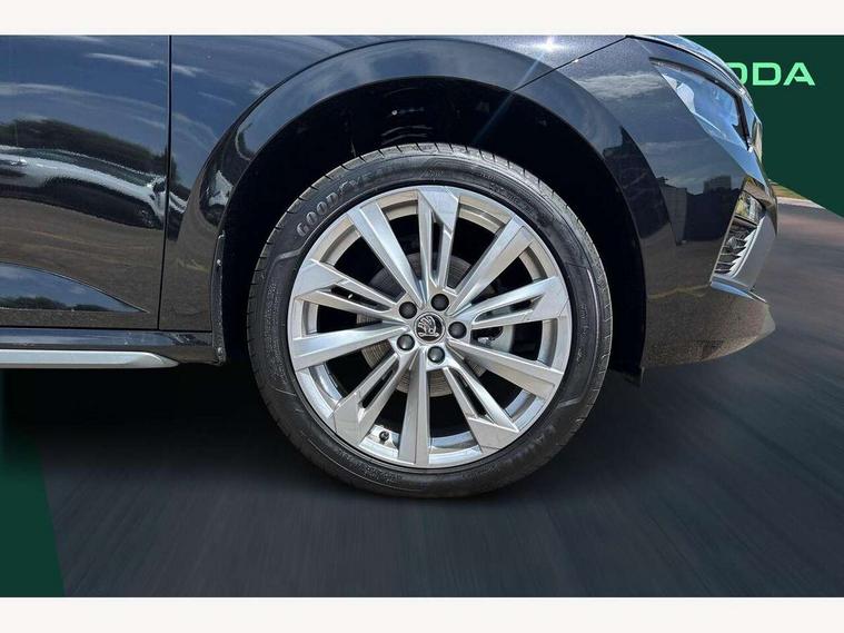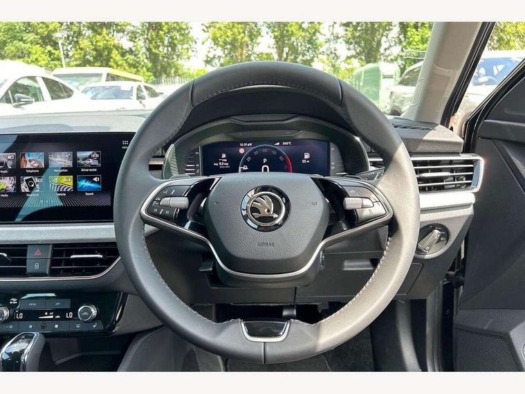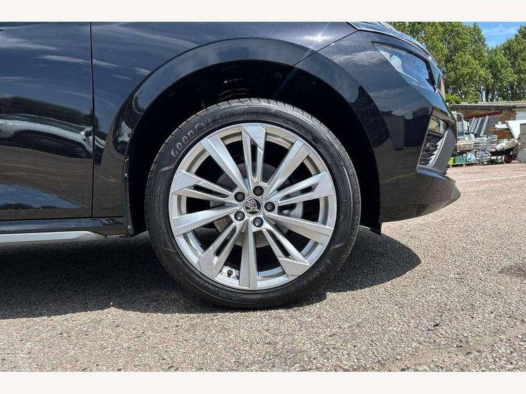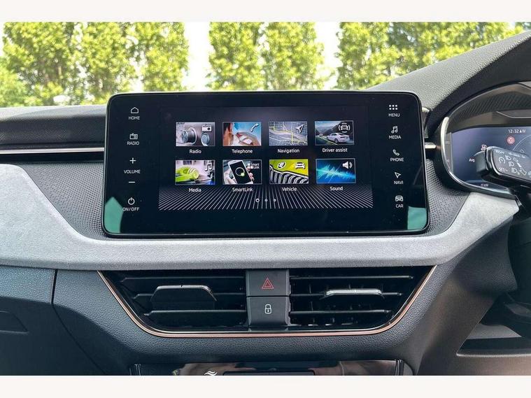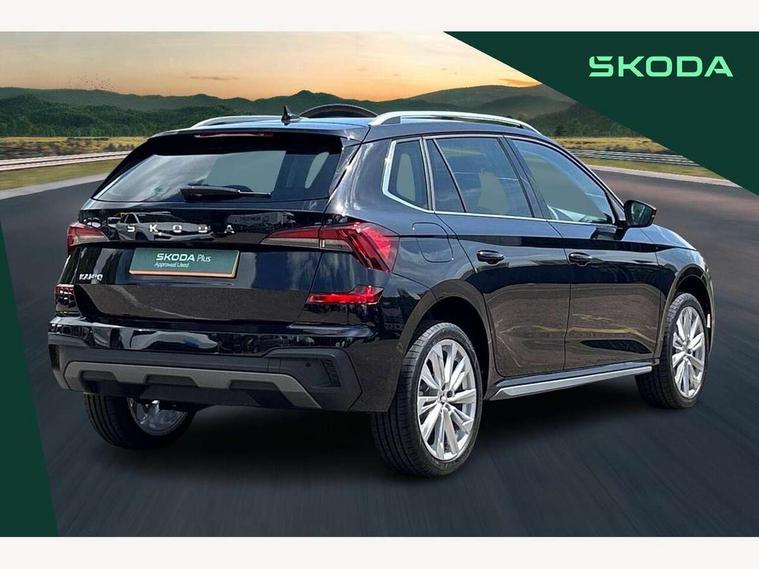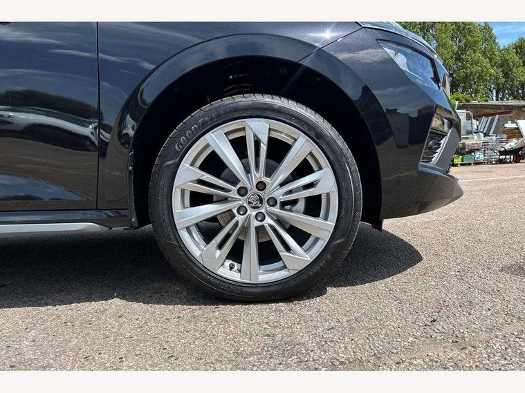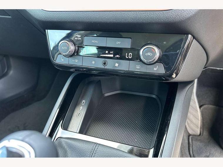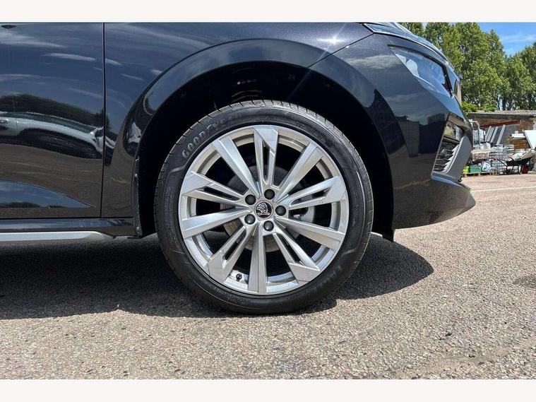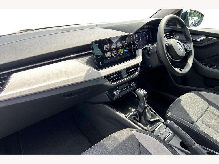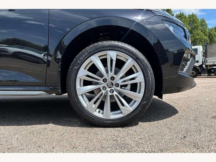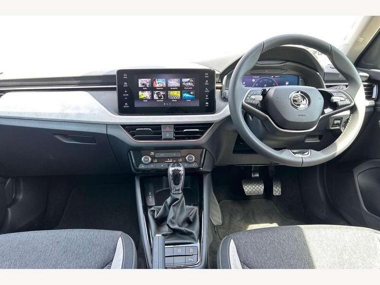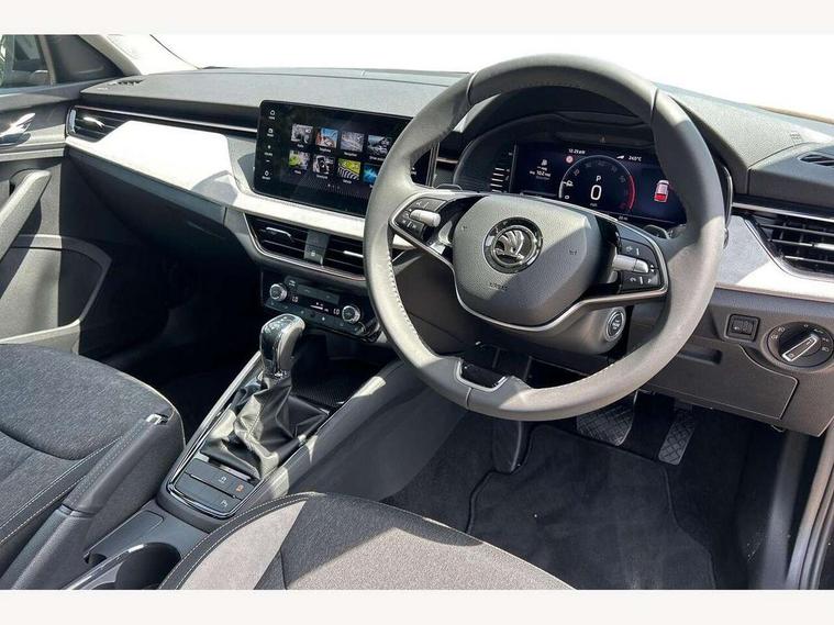 Advanced driver attention and drowsiness monitor, Bluetooth system, E-call, Front assist system, PAS, Rear parking sensors, Rear view camera, Service indicator, Speed limiter, Traffic sign recognition, Virtual cockpit with 10.25" display, Voice control system, Wireless smartlink, 4 USB C ports, 8 Speakers, 9.2" Skoda navigation display, DAB Digital radio, Auto dimming rear view mirror, Automatic headlight control with coming home and leaving home feature, Body colour bumpers, Body colour door mirrors and handles, Chrome grille surround, Chrome roof rails with chrome window surround, Front and rear electric windows, Heated rear window, LED daytime running lights, LED high beam, LED low beam, LED third brake light, Light sensors, Privacy glass, Rear side wing doors, Rear wiper, Ticket holder inside windscreen, 12V socket in luggage compartment, 3 seat bench in 2nd row, Accent black door inserts, Ambient lighting in white/red, Cargo elements, Chrome inner door handles, Copper hotstamping, Driver and passenger sun visors with vanity mirror, Dual zone climate control, Front and rear roof lights, Front centre armrest, Front head restraints, Glove compartment with illumination, Height adjustable driver seat, Height adjustable front passenger seat, Ice scraper, Inner circulation control with pollen filter, ISOFIX on front passenger seat, Isofix preparation for back seats, Leather gearknob and handbrake lever, Lodge cloth upholstery, Manual lumbar support for front seats, Net package and top tether hooks in boot space, Net under rear shelf, Overhead glasses storage compartment, Pocket on the back of both front seats include mobile phone pockets, Rake/reach adjustable steering wheel, Reading lights, Rear centre armrests, Single front passenger seat, Suedia grey decor inserts, Textile floor mats, Third rear headrest, Top tether for front passenger seat, Umbrella in driver's door, Convenience pack - Kamiq, 3x3 point rear seatbelts, Airbags - driver and front passenger, Disc brakes, ESP, Extended and predictive pedestrian/cyclist protection, Front passenger airbag deactivation switch, Front side airbags with curtain airbags, Hill hold control, Manual leather parking brake, Manual rear child locks, One tone horn, Seatbelt reminder for driver an co-driver, Traction control, Tyre pressure monitor, Anti-theft alarm system with interior monitoring, backup horn, towing protection and remote central locking with SAFE system, Anti-theft wheel bolts, Electronic engine immobilizer,