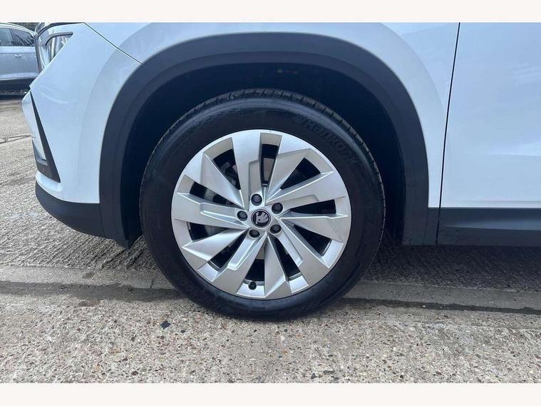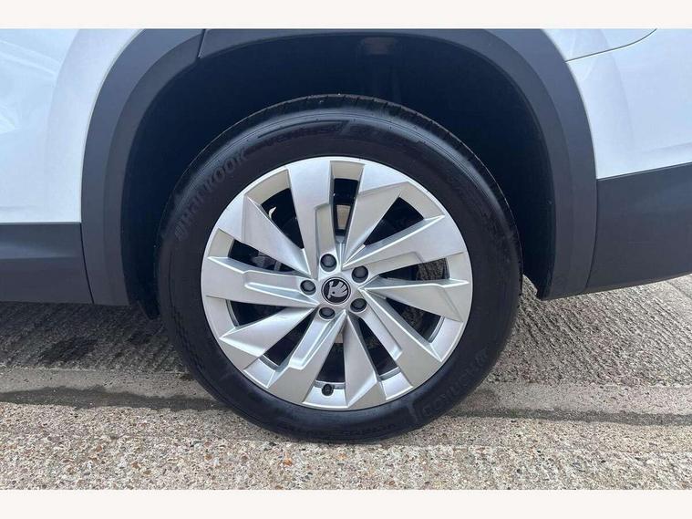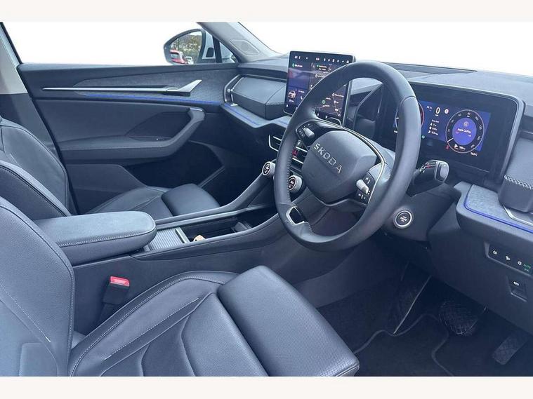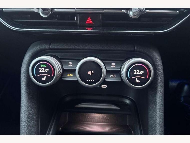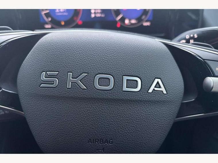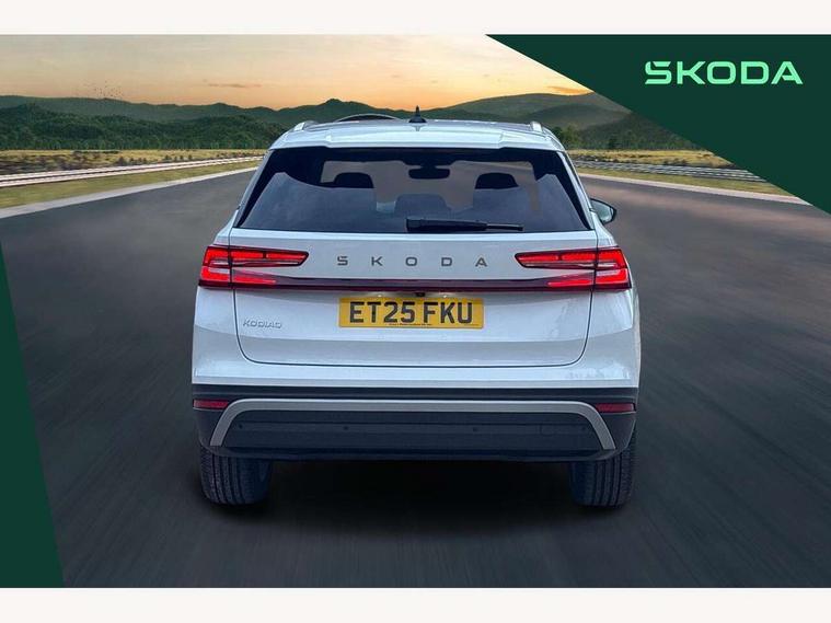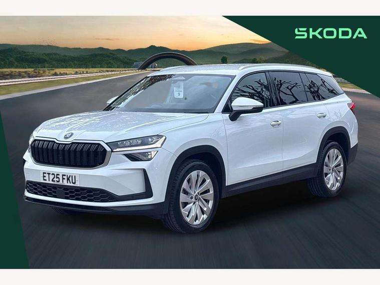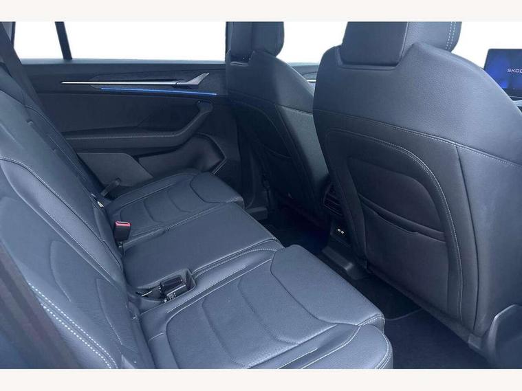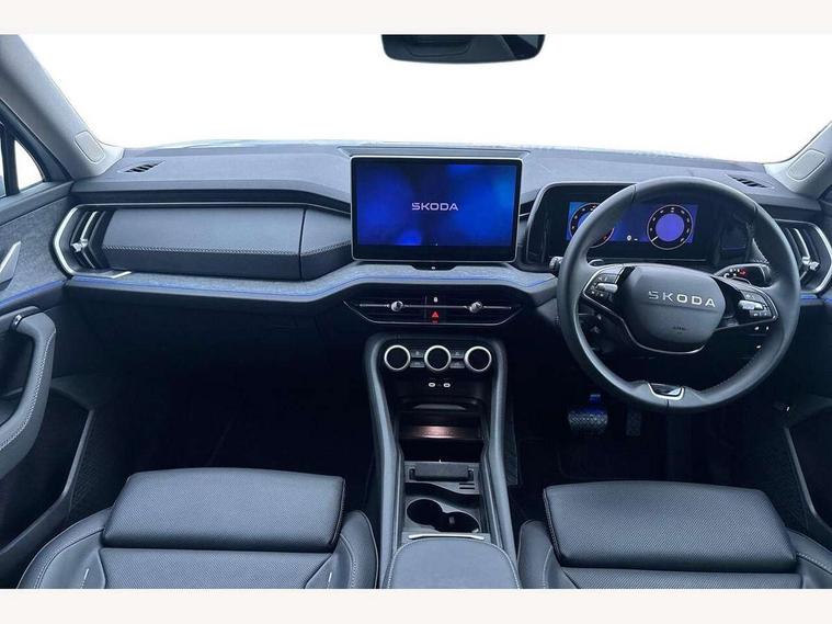 13" satellite navigation touchscreen display, Blind spot detection with door exit warning, Bluetooth system, ChatGPT functionality, Driver alert - Fatigue and drowsiness monitor, Dry display cleaner, Emergency call, Front and rear parking sensors, Front cross traffic assist, Lane assist, PAS, Rear traffic assist, Tailgate unlocking from outside, Traffic sign recognition, USB C Port x 2 in front centre console, Virtual Cockpit - 10.25" digital display, Voice control system, Wireless charging for two smartphones (15W) with cooling function, Wireless SmartLink for Apple CarPlay and Android Auto, Stop/start function, 2x USB-C in the rear, DAB Digital radio, Aero front windscreen wipers with intermittent function, Auto dimming rear view mirror, AWL (all weather lighting) and all weather light with cornering function, Black wheel arch surrounds, Body colour bumpers, Body colour door mirrors and handles, Cornering light and poor weather light, Electric folding /adjustable/separted heated/folding door mirrors, auto dimming with boarding sports and memory function, Electric front and rear windows, Exterior black decorative trims, Heat insulating glass in windshield, Heated rear window, Ice scraper in fuel tank cap, Invisible tailpipe, LED daytime running lights, LED third brake light in rear spoiler, Light assistant with automatic headlight control and coming home feature, Logo projection in door mirrors, Privacy glass, Rear roof spoiler, Rear side wing doors, Rear window wiper, Red decorative strip between rear LED lights, Safety reflectors on front and rear doors, Unique dark chrome design logo on alloy wheels, Window control switches with black trim, Windscreen wipers with rain sensor, Without engine designation, 1.5l bottle holder points in all door, 1x centre rear reading light, 2 seat bench in 3rd row, 3 configurable smart dials with 32mm coloured display, 3 seat bench in 2nd row, 4 foldable roof handles with rear coat hooks, Ambient interior lighting - Dashboard, front-door stowage compartments, front and rear door panels and footwell lighting, Automatic gear selector on steering column, Chrome interior door handles, Driver/front passenger reading lights, Fabric headlining, Fixed bench 40:60:40 split folding backrests, Front and rear floor mats, Front centre armrest with jumbo box storage compartment, cup holder and 12V socket, Height adjustable front headrests, Isofix child seat fittings in outer middle row rear seats and front passenger with top tether, Manually adjustable steering column, Pollen filter, Rear centre armrest with cupholders, Rear seat boot backrest release, Single front passenger seat, Skoda lettering on steering wheel, Storage pocket including mobile phone pockets on the backs of the front seats, Sunvisors with illuminated vanity mirrors, Three rear height adjustable headrests, Ticket holder on A Pillar, Tri zone climate control, Umbrella in door panel x1 made from sustainable materials, Upper and lower glovebox with card holder and coin compartment, USB C port by rear view mirror for charging only (15W), Exterior styling pack - Kodiaq, Auto door release and activation of warning lights in the event of an accident, Driver and front passenger airbag with knee airbag and front passenger airbag deactivation, Electric child locks, Electronic parking brake, ESC (incl. ABS+EMD+MSR+ASR+EDL+HBA+DSR+RBS+ESBS+MCB+TSA+XDS), Front assist with braking reaction to vehicles, pedestrians and cyclists, Front disc brakes, Fuel cut off safety device, Height adjustable front 3 point seatbelts + pretensioners, Hill hold assist, Junction assist with automatic emergency braking, Rear disc brakes, Safety vest holder in door, Seat belt reminder for all seats, Three point rear seat belts, Two tone horn, Tyre pressure monitor, Anti-theft wheel bolts, Immobiliser, Remote central locking with 2 keys,