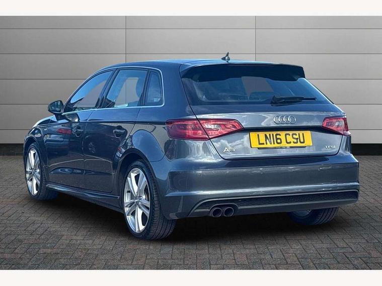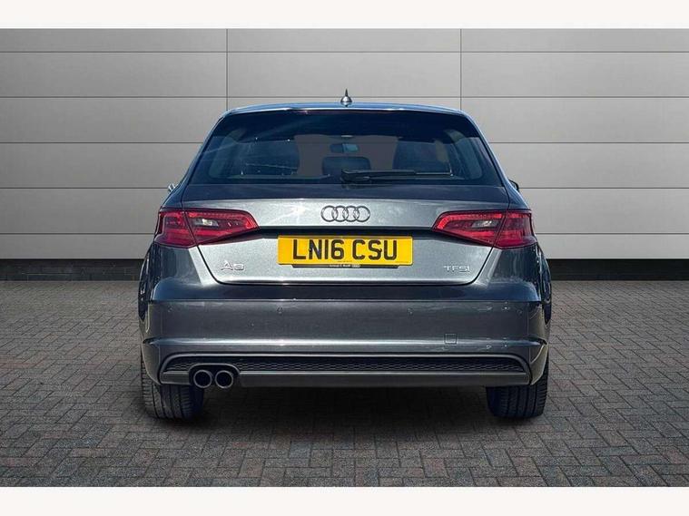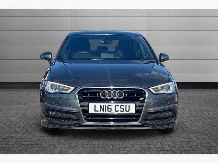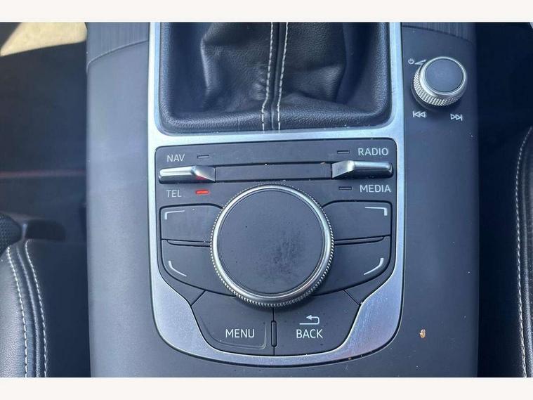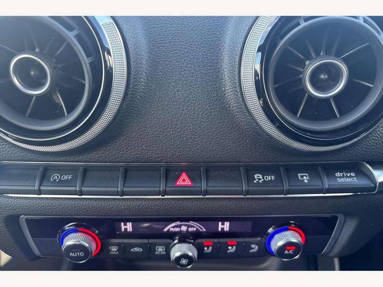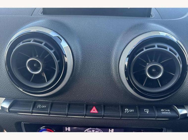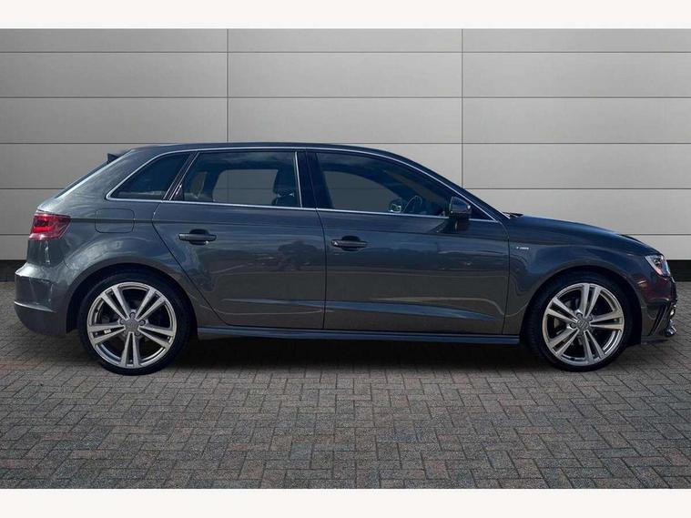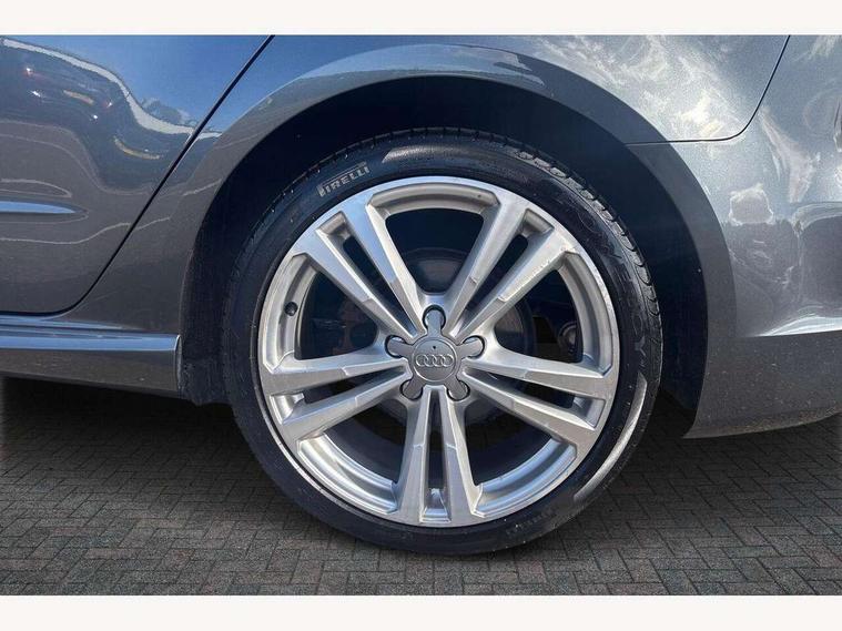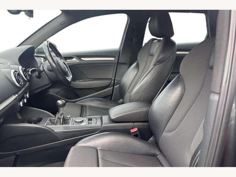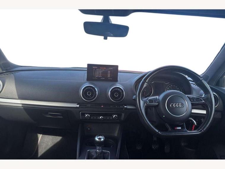 Audi drive select, Colour driver's information system display, Electro-mechanical PAS, Low washer fluid indicator, Service interval indicator, Voice control system, Audi music interface, DAB Digital radio, Speed dependent audio volume control, Aluminium side window trim, Body colour bumpers, Body colour door mirrors with integral indicators, Body colour roof spoiler, Chrome exhaust tailpipes, Front and rear electric windows, Front fog lights, Heated rear window, Heated windscreen washer jets, High gloss black fog light surround, High gloss black front grille, LED daytime running lights, LED rear lights, Rear wiper, S Line body styling, Twin exhaust tailpipe, 3 adjustable rear headrests, 3 spoke flat bottomed S Line multifunction steering wheel, 4 lashing points to secure luggage, 60/40 split folding rear seat, Adjustable front armrest, Aluminium door sill trims, Black cloth headlining, Coat hooks on both sides, Cup holders, Door sill trims with S line logo, Driver seat undertray, Driver/passenger sunvisors, Dual zone electronic climate control, Front and rear interior lights with delay, Front/rear floor mats, Height adjustable front seats, Height/depth adjustable steering column, Illuminated glovebox, Illuminated luggage compartment, Isofix attachments on outer rear seats, Jack and tool kit, Perforated leather gearknob, Removable rear parcel shelf, Storage compartment in centre console, Storage compartments in doors, Storage and luggage pack - A3/RS3, 3 point seatbelts on all seats, ABS/EBD, Active bonnet, Active front headrests, ASR, Curtain airbags, Driver and passenger side airbags, Driver/Front Passenger airbags, Drivers knee airbag, EDL, Electromechanical parking brake, ESC - Electronic Stability Control + traction control, Front passenger airbag deactivation, Manual rear child locks, Seatbelt warning, Tyre pressure monitor, Warning triangle and first aid kit, Anti-theft wheel bolts, Remote control central locking, Thatcham category 1 alarm + immobiliser, Aluminium air vent surrounds, Aluminium trim elements, Matt brushed aluminium inlays, Space saver spare wheel,