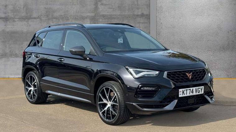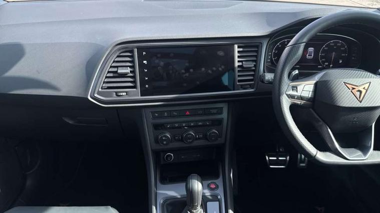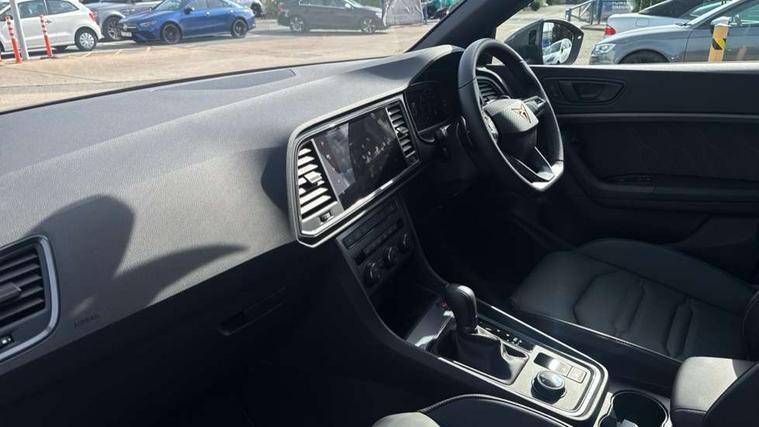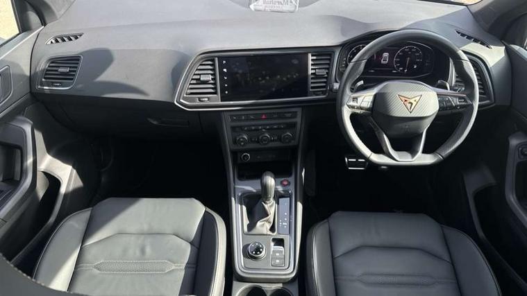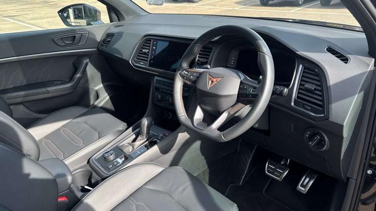 CUPRA drive profile - Normal, sport, CUPRA and individual modes and Hydraulic damper control (DCC), Digital cockpit, E-call, Electric tailgate with virtual pedal, Front and rear view camera, Outside temperature gauge, Progressive power assisted steering, Self parking functionality (includes front and rear parking sensors), Top view camera, Trip computer, wired and wireless full link smartphone integration, Wireless phone charger, CUPRA sport suspension, Steering wheel mounted audio/phone controls, Body colour bumpers with dark aluminium diffusor, Body coloured wheel arch surrounds, Dark tinted rear windows, Daytime running lights, Door mirrors with welcome CUPRA light silhouette, Dynamic headlight range control with self adjusting whilst driving, Electric adjustable/heated/folding door mirrors, Front and rear electric windows, Front grille frame in chrome, Full LED headlamps with lens and LED front fog lamps with cornering function, Gloss black door mirrors, Gloss black roof rails, Gloss black side mouldings, Gloss black side window trim, Illuminated aluminium front door sill, LED rear tail lights with dynamic indicators, Rear fog lights, Rear side wing doors, Rear spoiler, Rear wash/wipe, Specific CUPRA design front bumper, Third brake light, Visible twin black exhaust pipes in both sides, 12v socket in front, 3 seat bench in 2nd row, 60/40 split folding rear seat, Aluminium pedals, Black roof lining, Cupra steering wheel emblem, Dual zone climate control, Electric driver seat with memory function, Front and rear head restraints, Front centre armrest, Front seat back storage pockets, Heated front seats, Heated steering wheel, Height adjustable driver and passenger seat with lumbar adjustment, ISOFIX points in outer rear seats with top tether anchorage points, Leather sport bucket seats, Leather steering wheel and gear knob, Multicoloured ambient lighting with LED interior illumination, Pedal cluster, Rear armrest and easy back seat release mechanism from boot, Single front passenger seat, Sports steering wheel, Steering wheel mounted gearshift paddles, Storage compartment in roof console for sunglass, Storage compartment under driver's seat, Convenience pack - Ateca, Interior lighting pack - Ateca, Navigation system plus pack with DAB - Ateca, Safe and driving pack with High beam control - Ateca, 3x3 point rear seatbelts, ABS, Traction control system (TCS), Electronic stability control (ESC) and Electronic differential lock system (XDS), Airbags - Driver and front passenger airbag with deactivation, front side, two curtain and driver's knee airbags, Attention and drowsiness assist, Black brake callipers with CUPRA logo, Electric parking brake with auto hold function, Front and rear seatbelt reminder, Hill hold control, Manual rear child locks, Single tone horn, Tiredness recognition system, Tyre pressure monitoring system, Tyre pressure warning light, Alarm, Keyless entry, Locking wheel bolts,