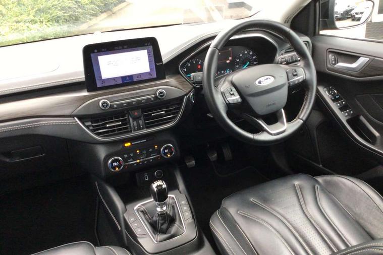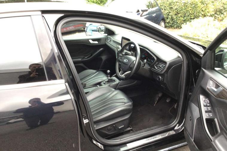4" TFT coloured cluster screen, Active park assist system, Bluetooth system, Digital clock, Easy fuel capless refuelling system, Eco mode, Ford pass connect, Ford SYNC 3 nav system with DAB radio, 8" colour touch screen, voice control, app link, Apple car play/Android auto and 4.2" TFT coloured cluster, Front and rear parking sensors, Head up Display, Lane keeping aid with lane departure warning, PAS, Rear wide view camera, Trip computer, 2 USB ports, Aux input, B&O Audio system with 360 degree sound, 10 speakers, 675 watts of total amplifier power and digital sound processor, 'Quickclear' heated windscreen/heated washer jets, Auto dimming rear view mirror, Auto headlamps (on/off), Automatic rain sensing wipers, Body colour large rear spoiler, Body coloured bumpers, Body coloured door handles, Body coloured electrically operated and heated door mirrors with side indicators, Door edge protectors, Electrically operated front and rear windows with one touch opening and closing, Front variable intermittent wipers with electric wash, Heated rear window, LED daytime running lamp, LED front fog lamps with cornering function, LED rear lamps, Polished twin tailpipe, Power folding door mirrors with puddle lights, Rear privacy glass, Tailgate wash/wipe, Vignale front grille and body styling, 3 spoke leather trimmed steering wheel with integrated audio controls, 6 way power adjustable driver seat, 60/40 split back and cushion rear seats with 2 height adjustable headrests, Alloy finish pedals, Ambient LED multi colour interior lighting, Centre console with sliding front armrest, Dual zone electronic air temperature control, Front/rear floor mats, Heated front seats, Heated steering wheel, Height adjustable front headrests, Isofix child seat preparation, Leather gear knob, Leather upholstery, Load through ski hatch, Manual passenger seat height and lumbar adjust, Reach + rake adjustable steering column, Rear centre headrest, ABS+Electronic Brake force Distribution, Auto hold function, Driver airbag, Electronic parking brake, Electronic stability control, Front and rear seatbelt reminder, Front inertia reel height adjustable seatbelts with pre-tensioners, Front passenger airbag, Front side airbags, Hill start assist, Passenger airbag deactivate switch, Post collision braking, Pre collision assist with autonomous emergency braking and pedestrian/cyclist detection, Side curtain airbags, Three rear inertia reel lap/diagonal seatbelts, Tyre pressure monitoring system, Ford keyfree system with Keyless entry and keyless start, MyKey system, Remote central locking & engine immobiliser, Thatcham category 1 alarm, 18" 5x3 spoke liquid aluminium alloy wheels, Mini steel spare wheel,
