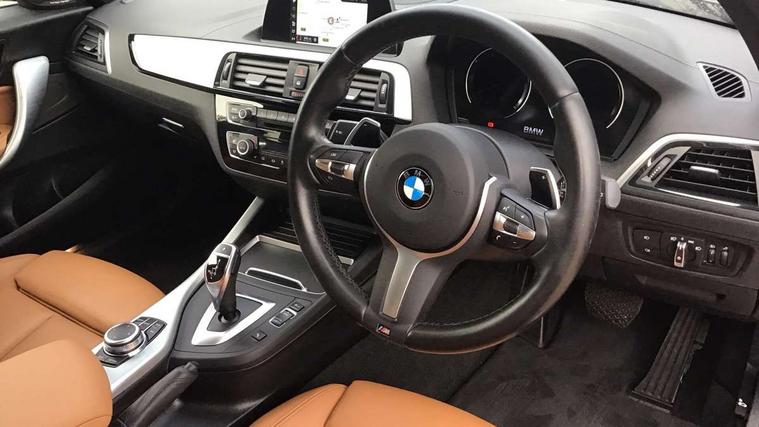 'Lights On' Reminder warning buzzer, BMW Online services, BMW remote services, BMW Teleservices, Brake force display, Engine start/stop button, Oil level indicator, On board computer, On board diagnostics, Outside temperature display, Service interval indicator, Speed limiter, Drive Performance Control, Sports function on gearbox with steering wheel mounted gearshift paddles, BMW professional radio with CD player, DAB Digital radio, Harman Kardon HiFi loudspeaker system, Body colour bumpers, Body colour door handles, Body coloured door mirrors, Chrome kidney grille with black vertical slats, Dark chrome exhaust tailpipe, Electric front windows + one touch + anti-pinch, Electric rear windows, Electrically adjustable door mirrors, Follow me home headlights, Green tinted heat insulating glass, Heated door mirrors, Heated windscreen washer jets, M aerodynamic bodystyling, Rain sensor including auto headlights activation, Rear wash/wipe, Sun protection glass, Welcome lighting, 12V power socket in centre console, 12V power socket in passenger footwell, 4 grab handles, 60/40 split rear seats, Anthracite headlining, Anthracite Velour floor mats, Door armrests, Door sill finishers with illuminated M designation, Driver/passenger sunvisors with ticket holders, Folding rear seat head rests, Front folding/sliding centre armrest with storage, Front head restraints, Front sports seats with electric side bolster adjustment, Front/rear courtesy lights with soft on/off dimming, Glovebox, Isofix rear child seat preparation, Leather gear knob and handbrake grip, Load restraint lashing eyes, M sports leather steering wheel, Multifunction steering wheel with audio controls, Reach + rake adjustable steering column, Storage compartments in doors, ABS/EBD, Automatic Stability Control (ASC), BMW emergency call, Child locks on rear doors, Cornering brake control (CBC), Crash sensor, Driver/Passenger airbags (Impact dependent), DSC+, Dynamic brake control, Dynamic Traction Control - DTC, Front passenger airbag deactivation, Front side airbags, Hill start assist, ITS head airbags for front/rear, M Sport braking system, Pyrotechnically pre-tensioned front seatbelts, Seat belt force limiter, Three 3 point rear seatbelts, Tyre pressure monitor, Warning triangle and first aid kit, Automatic drive away locking facility, Electronic immobiliser, Remote central locking, Thatcham Cat.1 alarm, Run flat tyres,