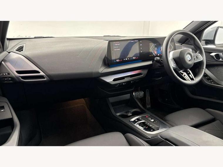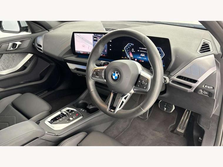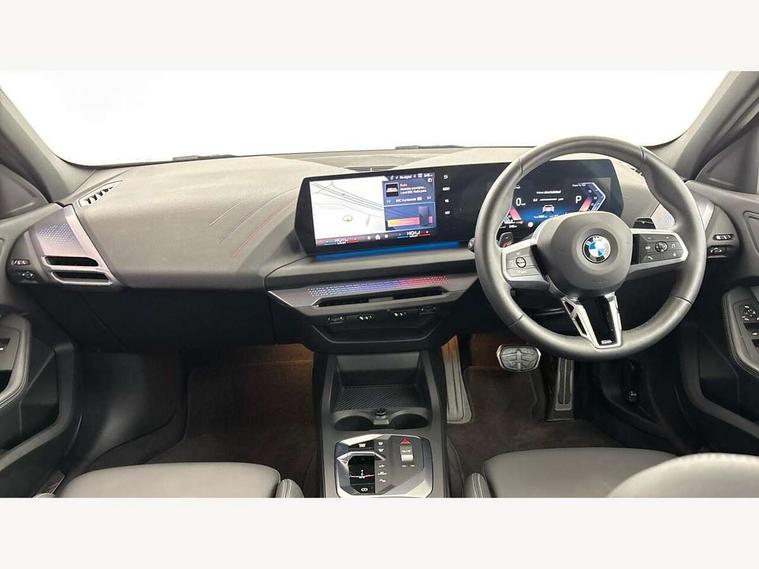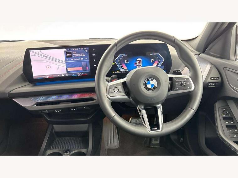 Active guard plus, Attentiveness assist, Bluetooth / WiFi interface for wireless connection of mobile terminal devices and audio streaming, BMW ConnectedDrive online services, BMW Live cockpit plus, BMW Teleservices, Check Control warning system for monitoring of lights and door/luggage compartment open warning, Eco pro mode, Electric power steering with Servotronic steering optimised at all speed ranges, Evasion assistant, Flat airvents in instrument panel with adjustable slats, Front and rear parking sensors, Front axle single joint with specific axle kinematics to minimise drive influences on steering + provide increased rigidity agile driving behaviour, Gearshift time display in manual mode, Integrated owners handbook, Left turn warning with brake function, My modes (Personal / Efficient / Sport), Oil sensor for level and grade, On board computer, Optimum shift indicator, Park assist including reversing assistant, lateral parking aid and reversing assist camera, Personal e-SIM, Personal Profile, Pull away assistant, Rigidly mounted rear subframe - Multi link construction with separate spring / damper configuration and excellent driving characteristics, Speed limit Info including no-overtaking indicator, Speed limiter, 49 litre fuel tank, Aluminium lightweight construction, Anti roll bar front and rear, Balancer shaft, Double VANOS twin scroll turbocharging system, Drive Performance Control, Electronic differential lock, Electronic selector lever, High precision injection, M Adaptive suspension, Petrol Particulate Filter, Steptronic transmission with double clutch, Twin tube gas filled shock absorbers with degressive characteristic curve, VALVETRONIC engine management, DAB Digital radio, Auto dimming rear view mirror, Automatic windscreen wipers and automatic headlight, Body colour door handles, Body colour mirror caps, Body colour roof trims, Chrome 'M' logo side designation, Chrome exhaust twin tailpipes round 90mm in left, Chrome kidney grille frame with Satin Aluminium struts, Direction indicator side lights in exterior mirrors, Electrically adjustable exterior mirror with mirror adjustment switch on drivers armrest and aspheric on driver side, convex on passenger side, Exterior M sport design elements, Fading support, Folding side mirrors with auto dimming/folding wing mirrors with auto dimming, Follow me home headlights, Front and rear bumper system with replaceable deformation elements, Front and rear electric windows with open and close fingertip control, anti trap facility and comfort closing, Front bumper panel with M specific design in vehicle colour with inserts in black high gloss, Front door sill finishers in black plastic with M designation in metallic look, Green tinted heat protection glazing, Heated rear window, High gloss black exterior mirrors, High gloss shadowline window frame, Recess cover mirror frames and B/C pillar embelisher trim, High level third brake light, Integrated front windscreen with washer jets, LED daytime running lights, LED eyebrow turn indicators, LED front fog lights, LED Headlights, Lightweight engineering, M identification on the sides, Matt black air guide grilles, Matt black wheel arch trim, Model badge on tailgate right, Nearside reverse light in rear light cluster, Preparation for high beam assistant, Rain sensor, Rear bumper panel with M-specific design in vehicle colour with inserts in black high gloss, Rear fog lights, Rear side wing doors, Rear window wiper, Shark fin antenna, Side sill covers with M specific design in body colour, Trailer stabilisation logic, Visible VIN plate, Welcome lighting, 12V power socket in front centre console with blanking plug, 3 rear seat head restraints, 3 seat bench in 2nd row, 3 spoke sports leather steering wheel with black leather and stitching, pearl chrome decorative finish, specific M Badge, Anthracite front and rear floor mats, Anthracite headlining, Black boot net with lashing eyes, Cargo function on 2nd seat row, Child seat ISOFIX attachment for two outer rear seats and front passenger seat with anchorage points, Conditioned based service, Driver and front passenger backrest net on rear, Driver and front passenger seat heating, Driver side folding compartment in instrument panel, Folding rear clothes hook, Footrest and pedals in black plastic, Four grab handles integrated in roof lining, Front and rear door pockets with bottle holders, Front and rear side armrest integrated into door trim, Front armrest with storage compartment, Gearshift paddles on steering wheel, Glove compartment, Height adjustable front head restraints, Luggage compartment for bag hooks on left and right, foldable luggage compartment liner and four lashing eyelets, Manual adjust steering wheel, Multi-function controls for steering wheel, Rear seat backrest with manual 60:40 split folding with 3 top tether clips integrated on rear of seat panels, Single front passenger seat, Storage compartment in centre console, Storage compartment in luggage compartment, Stowage of the parcel shelf in luggage compartment trim, Sun visors with vanity mirrors and insert tab, Two front centre console cupholders, Type C two USB ports in rear centre console, Upper retaining strap integrated into backrest rear panels, Connected pack professional - 1 Series, Interior lights pack - 1 Series, M Sport exterior styling aerodynamics pack - 1 Series, 2 tone horn, 3 point seatbelts on all seats, front pyrotechnic belt tensioners, stopper and belt force limiters, rear coded belt buckles, Airbags - Front driver/passenger, front and rear curtain head protection, front side, manual deactivation of front passenger airbag, Anti lock braking system (ABS) with brake assist, BMW emergency call, Brake drying, Braking readiness, Child proof locking system in rear door, Comfort modes, Cornering brake control, Crash sensor activating of airbags, Unlocking doors, hazard warning lights, fuel cut off, interior lighting+activation of safety battery terminal clamp, Driv