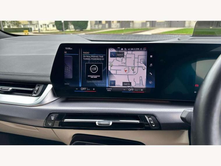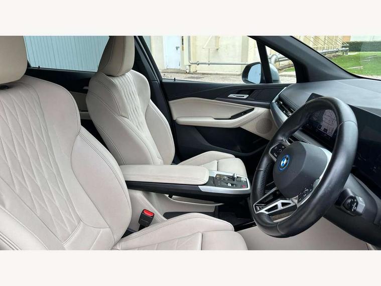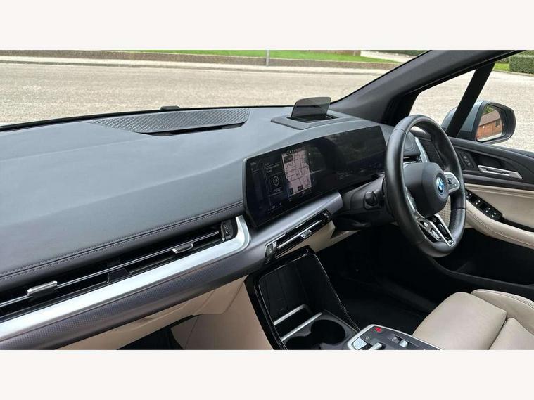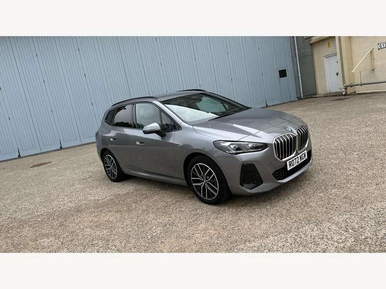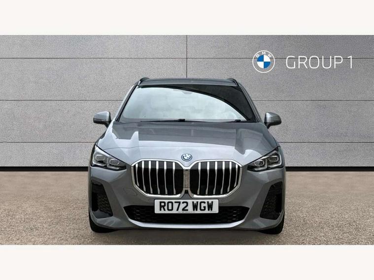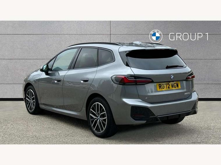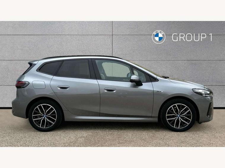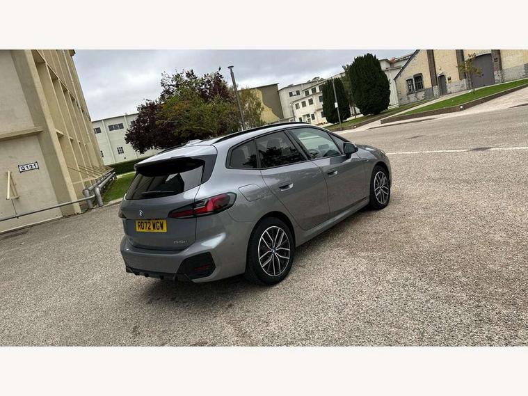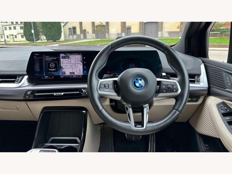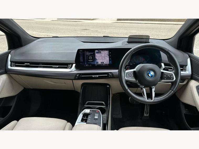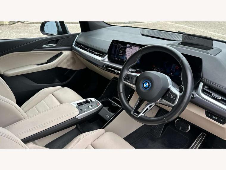 Active Guard incl speed limiting and lane departure functions with auto steering, and front collision warning with brake intervention, Automatic powered tailgate, Automatic start/stop function, BMW Iconic sounds electric, BMW Online services, BMW Teleservices, Brake pad wear indicator in front and rear, Condition based service, Drive off assistant, Flat air vents on instrument panel in high gloss black, adjustable slats with elements in pearl chrome, iDrive controller, Language version English, On board computer - average speed+fuel consumption, service interval, clock/date, odometer/trip meter, outside temperature display and ice warning, Parking assistant with active park distance control, reversing assistant, lateral parking aid and rear view camera, Servotronic variable electric power steering (EPS), Smartphone integration, Widescreen display, 45 Litre fuel tank, Drive performance control with ECO PRO comfort + sport mode, eDrive exterior sound, Gear selector switch with toggle operation, M Adaptive suspension, Mode 3 charging cable, Petrol Particulate Filter, Steptronic transmission with double clutch and gear shift paddles, 2x USB Type C ports in front centre console for charging and data transfer, 2x USB Type C ports in rear centre console for charging, DAB Digital radio, Welcome sound upon opening of the front driver or passenger door, Air inlet middle part on front apron in lines specific design with trim strip in satinised aluminium, Automatic headlights, BMW emblem, engine compartment lid and tailgate, Body colour roof mouldings, Body coloured door mirror caps, Contoured rear roof spoiler in vehicle colour with side aeroblades in black high-gloss, Driver side exterior mirror lighting with BMW logo projection, Dynamic brake lights, Electric adjustable heated door mirrors, Electric windows - front and rear, with open/close fingertip control, anti-trap facility and comfort closing, Folding door handles integrated flush with surface, Front and rear windscreen wipers with heated front washer nozzles, Front bumper cover with independent design in body colour with inserts in black high gloss, Front bumper design elements in satinised aluminium, Front door exit lights, Front door sill finishers aluminium inserts with M inscription, Front entry sills with aluminium inserts + BMW inscription, Front oramental grille with radiator grille bars in satinised aluminium, Heated rear window, Hidden exhaust pipe, High gloss shadow line, High gloss shadowline roof rails, Key with M identification, LED Daytime running lights and parking lights with turn indicators, LED number plate light, LED third brake light in rear spoiler, M identification on sides, Manual headlight range control, Model inscription on right tailgate, Rain sensor, Rear bumper cover with independent design in body colour with inserts in black high gloss, Rear bumper trim strip in satinised aluminium, Rear side wing doors, Shark fin antenna, Side sill covers with independent design in Body colour, Trailer stabilisation logic, Trims on front and rear bumper covers colour-coordinated with side window graphic, Visible VIN plate, Welcome lighting, Windscreen washer nozzle for rear view camera, 12V power socket in luggage compartment and front centre console, 12V socket in right side trim panel, 2 bag hooks in luggage compartment, 2 front reading lights, 2 open cup holders in front centre console, 3 seat bench in 2nd row, 40:20:40 split folding rear seat backrests, Ambient lighting front and rear, Automatic two zone climate control air conditioning, Bottle trays in all doors, Child seat ISOFIX attachment for two outer rear seats and front passenger seat with anchorage points, Driver and front passenger sports seats, Four grab handles integrated in roof lining, Front and rear door pockets, Front and rear footwell lighting, Front and rear side armrest integrated into door trim, Front centre console storage compartment, Front head restraints, Glovebox with light, Heated front seats, Height adjustable 3 rear head restraints, Interior door handle recess light on all doors, Luggage compartment lighting, M Anthracite headlining, M specific floor mats, M sport leather steering wheel, Map pockets, Mechanical rear seats with fore/aft adjustment, Multi-function controls for steering wheel, One piece parcel shelf opens together with tailgate and removable, Rear cloth hooks, Single front passenger seat, Stainless steel pedals, Steering wheel column manual adjustment, Storage compartment lighting in centre console and storage tray in centre stack, Storage compartment net in left side trim panel, Storage compartment with folding cover under centre console armrest cushion, Storage tray in right side trim panel, Sunvisors with illuminated vanity mirrors, Three spoke sport leather steering wheel, Connected pack professional - 2 Series Active Tourer, Technology pack - 2 Series Active Tourer - MY22, 3 point seatbelts on all seats, front pyrotechnic belt tensioners, stopper and belt force limiters, rear coded belt buckles, Airbag - Front driver and passenger, front and rear head, front side, curtain head protection, manual deactivation of front passenger airbag possible, Anti lock braking system (ABS) with brake assist, Automatic hold function, BMW emergency call, Brake drying, Braking readiness, Child proof locking system in rear door, Cornering brake control, Crash Sensor - activates hazard/interior lighting + unlocks doors, DSC - Dynamic Stability Control, Dynamic brake control, Dynamic Traction Control - DTC, Electromechanical parking brake, Energy recovery system, Front disc brakes, Integrated braking system, PC iBrake PostCrash approach control warning with light braking function, Rear disc brakes, Tyre pressure monitoring system, Warning triangle and first aid kit, Anti theft alarm system, Closing system with central locking, Engine immobiliser, Locking wheel bolts, Front centre console trim in high gloss black with my mode expressive, BMW mobility
