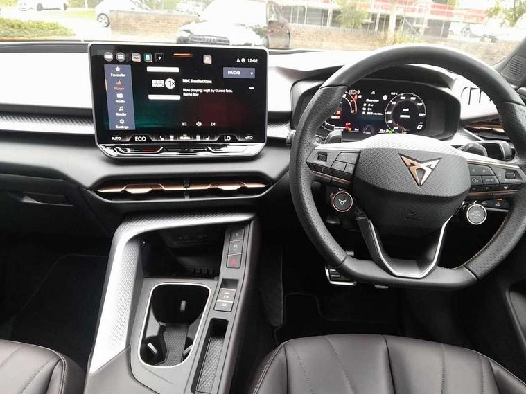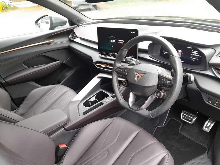 10.25" digital cockpit and configurable dashboard, Adaptive cruise control with follow-to-stop and speed limiter, Advanced driver alert system, Advanced lane assist with semi-automatic vehicle control in a medical emergency and traffic jam assist, Driving profile selection (DCC- Comfort, performance, CUPRA, Individual, Dynamic road sign display, E-call, Electric tailgate with virtual pedal, Emergency steering support with turn assist, Four x USB Type C ports (2 in front and 2 in rear), Front and rear parking sensors, Front assist (Forward collision warning with automatic braking) with multifunction camera and front cross traffic assist, Head up Display, Intelligent park assist, Media system with Nav - 12.9" touch display, voice control, full link phone (wired/wireless), DAB and Steering wheel mounted controls, Rear traffic assist, Side and exit assist, Speed sensitive power steering, Start/stop system with regenerative braking, Top view camera (front camera, rear camera, 2 side cameras), Wireless phone charger, 10 amp mode 2 charging cable, 16 amp mode 3 charging cable, Adaptive chassis control with a 2-valve shock absorber, Auto dimming rear view mirror, Black roof rails, CUPRA 3D rear lights with ceremony & swiping indicator and illuminated logo, Dark tinted rear windows, Daytime running lights with automatic headlight control and Coming and Leaving home function, Door mirrors with memory function and lowing function on passenger mirror, Electric front/rear windows, Electrically adjustable, heated and folding door mirrors, Front fog lamps with cornering function, Heat reflecting windscreen, High beam assist, Rain sensing wipers, Rear fog light on one side, back up light on both sides, Rear side wing doors, Rear wash/wipe, Third brake light, Welcome lights (within exterior mirror housing), 3 seat bench in 2nd row, Black roof lining, Cupra sports pedals, Driver seat memory function, Electrically adjustable front seats including lumbar support, Front and rear head restraints, Front and rear reading lights X 4, Front centre armrest, Heated front seats, Heated leather wrapped multi function sports steering wheel with tiptronic, Illuminated interior front door sills, Isofix, Leather upholstery, Operating voltage 12V, Single front passenger seat, Smart wraparound interior lighting, Sunvisors with illuminated mirror, Three zone climate control with control panel in rear, Unsplit rear seat bench, split folding backrest, with centre armrest, Variable luggage/load compartment floor, Pure performance pack - Terramar, 3 point seatbelts in front with pretensioner and electric height adjustment, 3 point seatbelts on all rear seats, Brake control system - ESC and brake booster, Child proof door locks, Driver and front passenger airbags, Electronic parking brake, Front and rear disc brakes, Front interaction airbag, Front passenger airbag deactivation switch, Front side airbags with curtain airbags, Pre-crash front and rear seat belt tensioner, window closure and hazard lights, Tyre pressure monitoring system, Visual and acoustic seat belt reminder, electric contact in front and rear, Anti theft alarm, Keyless locking and starting system with keyless access, Locking wheel bolts, Black decorative trims, Chrome interior detailing, Breakdown kit, Performance tyres in polmer coating, Tool kit,