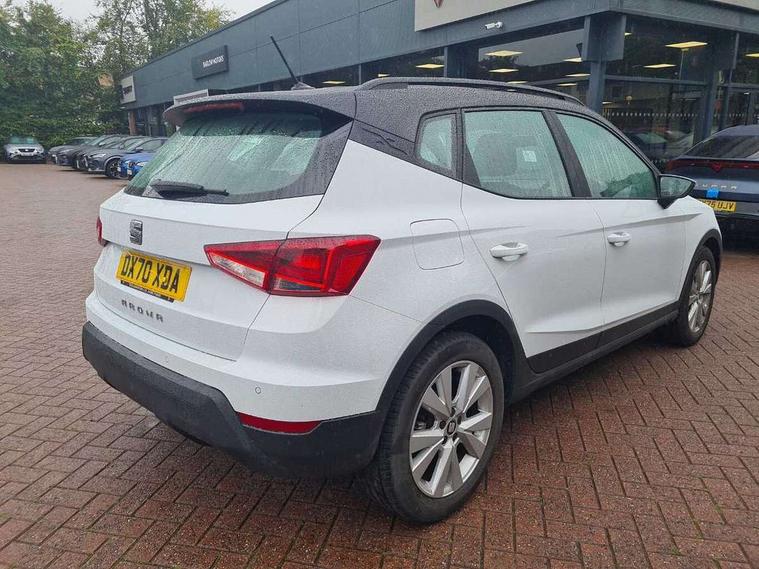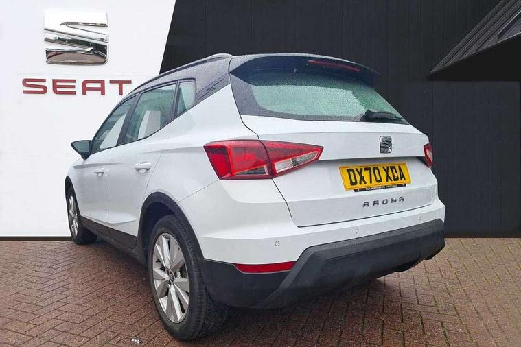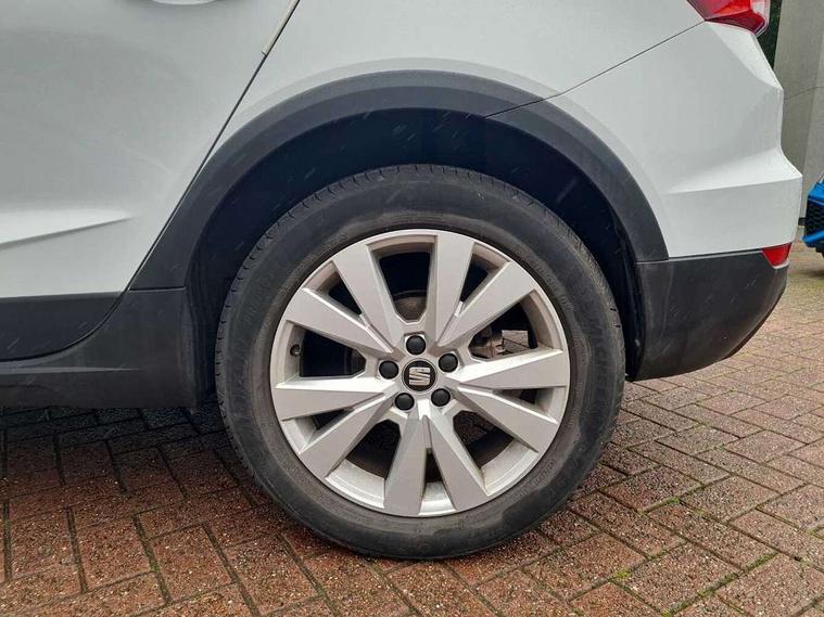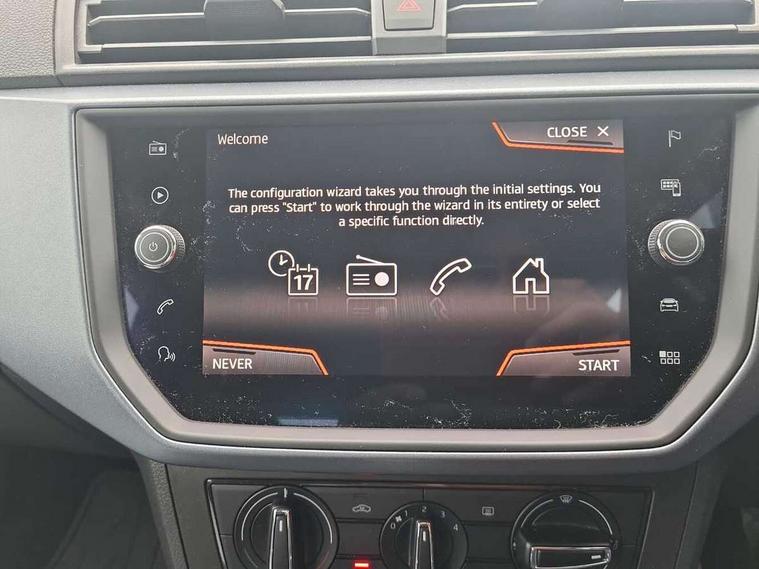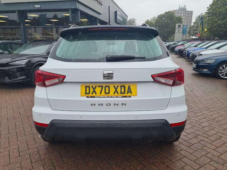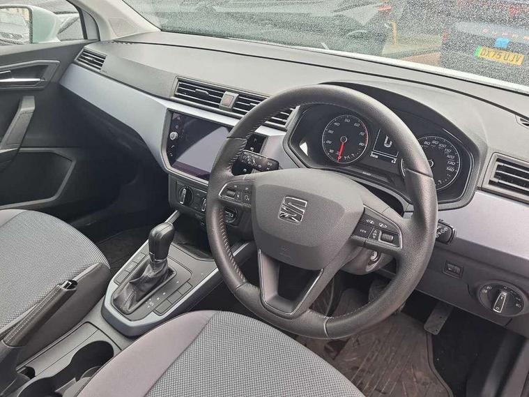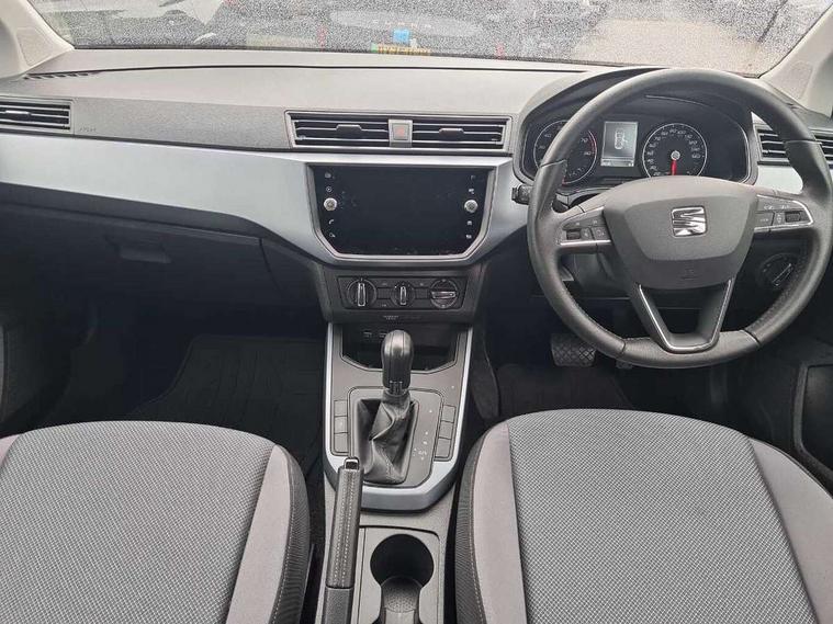 'Lights On' Reminder warning buzzer, Cruise control, Digital clock, Electric speed sensitive power steering, Full Link Smartphone Integration with Mirror Link, Apple Car Play, Google Android Auto with USB Type C cable for Apple and Android compatibility, Low fuel warning light, Outside temperature display, Rear parking sensor, RPM counter, Trip computer, Comfort suspension, 6 speakers, Bluetooth interface for hands free and audio streaming, DAB digital radio and AM/FM radio, Steering wheel mounted audio controls, Anti theft roof antenna, Automatic activation of hazard warning lights, Automatic headlights, Black roof rails, Black window trims, Body coloured bumpers, Body coloured door handle inserts, Body coloured door mirrors, Chrome front grille frame, Dimming rear view mirror, Electric adjustable door mirrors, Electric front/rear windows with one touch/auto up/down, Electric headlight adjustment, Front fog lights with cornering function and rear fog light, Hidden exhaust pipe, LED daytime running lights, LED rear tail lights and licence plate lights, Rear window wash/wipe, Visible VIN plate, Windshield wiper with intermittent control and potentiometer, 2 cupholders, 60/40 split folding rear seat, Air conditioning, Cloth upholstery, Double boot floor, Driver sunvisor with covered mirror + card holder, Dust/pollen filter, Front courtesy light with front reading lights, Gear shift indicator, Grey interior roof, Height adjustable front seats, Height/reach adjustable steering column, Illuminated boot, Instrument lighting with brightness control, Interior footwell lighting, ISOFIX points in outer rear seats with top tether anchorage points, Leather steering wheel/gear knob/handbrake, Multi-colour ambient interior lighting, Passenger sunvisor with vanity mirror, Two front and three rear height adjustable headrests, Connectivity pack plus - Arona, Interior chrome pack - Arona, 3 point seatbelts on all rear seats, ABS, Active front headrests, Child locks on rear doors, Driver and front passenger airbags with front passenger airbag de activation, front side and curtain airbags, Electronic stability control, Emergency Brake Assist (EBA) and front assist, Front and rear seatbelt reminder, Hill hold control, Multi-Collision braking, Tiredness recognition system, Traction control, Tyre pressure monitoring system, 2 folding remote keys with window open/close function, Electronic engine immobiliser, Locking wheel bolts, Remote central locking + deadlocks, Interior chrome line trim, Plastic grey dashboard, 17" Dynamic alloy wheels,