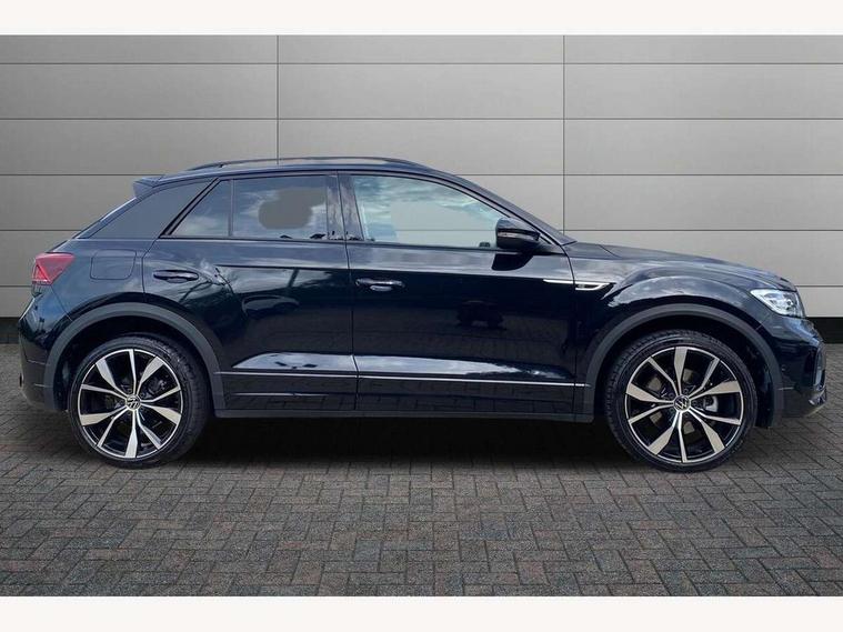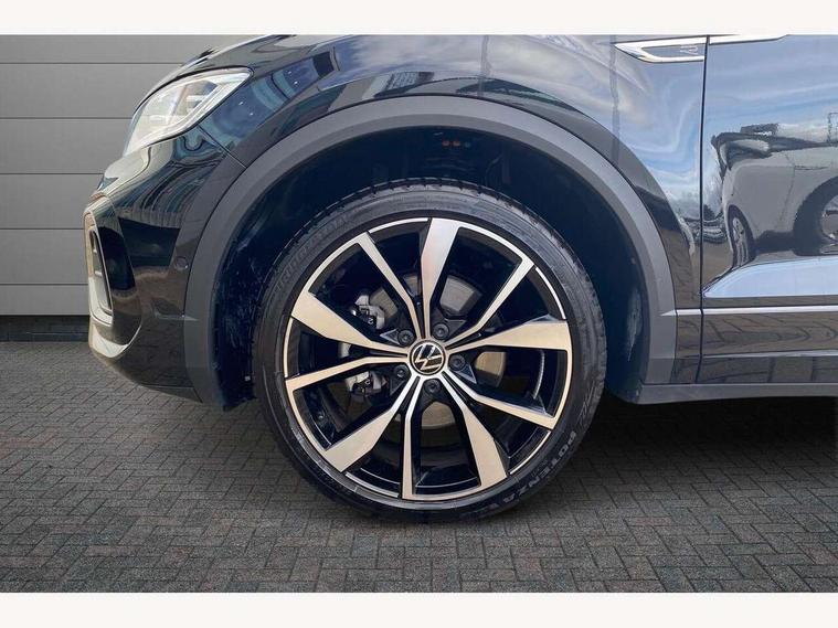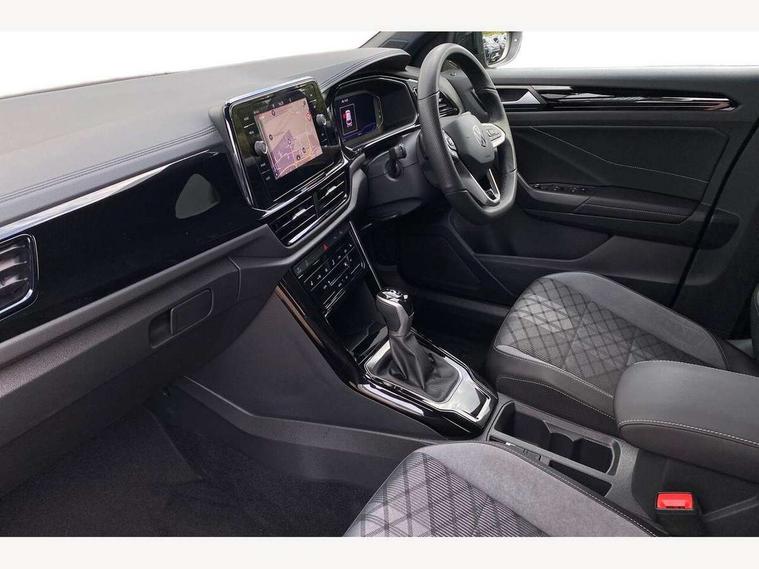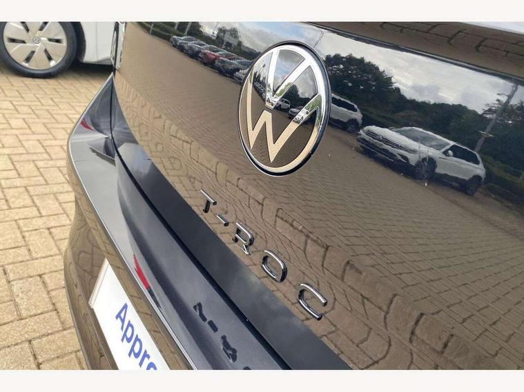 10.25" Digital cockpit pro, Advanced driver attention and drowsiness monitor, Emergency call service, Lane keeping system Lane Assist, Mobile phone interface, Modified key software - reduce switch off time for key status change to Long no motion, Online services, Park assist including front and rear parking sensors, Power assisted speed sensitive steering, Service interval indicator, Tailgate/trunk lid release from outside, Think blue trainer driver tips and journey analysis, Warning sound and light for front seatbelts unfastened, Wireless app connect, Battery regeneration during braking, Rear shock absorption chassis with increased ride height, Start/stop function with battery regeneration, DAB Digital radio, Diversity antenna for FM reception, Front and rear 6 speakers, Music playback - MP3, WMA and AAC files, Premium USB cable in choice of either Apple or Android smartphone compatibility, SD card slot, Simultaneous pairing of 2 compatible mobile devices, Title and cover art display, We Connect and We Connect Plus functionality, Auto dimming interior rear view mirror, Automatic hazard lights activation under emergency braking, Automatic headlight control with LED separate daytime running lights with coming/leaving home function, Dynamic cornering light, Electrically adjustable and heated door mirrors, Extended roof spoiler, Exterior mirrors aspherical on driver side, convex on front passenger side, External USB type C socket and charging sockets, Front windscreen wiper with intermittent wipe and 4 position delay, Heated rear window, Illuminated front grille, IQ LED matrix headlights, LED 3rd brake light, LED rear number plate lights, LED rear tail lights with dynamic turn signal, Light mode for poor weather, rain, fog or snow, Power windows with comfort operation and circuit breaker, R-Line design body coloured bumpers, Rain sensor, Rear exhaust tailpipe, Rear fog light on one side and reversing lights on both sides, Rear side wing doors, Rear wash/wipe with intermittent wipe setting, Remote electrically foldable door mirrors, puddle lights and reverse activated passenger's door mirror, 12V power socket in centre console, 3 rear head restraints, 3 seat bench in 2nd row, 4 load lashing points in luggage compartment, Air care climatronic air conditoning system with active combination filter and 2-zone temperature control, Artvelours cloth upholstery, Black roof lining, Chrome plated radiator grille inserts, air vent surrounds and light switch surrounds, Door and side trim panel with leatherette insert, Drawer under drivers seat, Driver seat height adjust, Driver's seat lumbar support, Front + rear carpet mats, Front centre armrest, Front comfort sports seats, Front cupholders x 2, Front footwell illumination, Front reading light, Front scuff plates with R Line logo, Front seat back storage pockets, Glove compartment door with light, Instrument lighting, white adjustable panel illumination, Interior ambient lighting and surround lighting, Interior light delay, Isofix child seat preparation, Leather gearshift handle, Leather wrapped multifunction steering wheel with paddle shift, Load-through provision with cup holder when folded down ('Unsplit rear seat bench, split folding backrest, with centre armrest), Luggage compartment lighting, Non-folding front passenger seat backrest, Passenger seat height adjuster, Passenger seat lumbar support, Single front passenger seat, Stainless steel pedals, Storage compartment in left and right luggage area, Storage compartment in rear doors, Storage compartments in driver and front passenger doors, Sunvisors with illuminated vanity mirrors, Variable boot floor, height adjustable and removable, Winter pack without heated windscreen washer jets - T-Roc, 3 point height adj front seatbelts + pretensioners, 3 point seatbelts in outer rear with ECE label, ABS, Child locks on rear doors, City emergency braking and pedestrian monitoring, Driver and front passenger airbag with front passenger airbag deactivation, Driver and front passenger safety-optimised head restraints, Drivers seatbelt reminder, Electronic parking brake, Electronic Stability Control (ESC) inc EDL (Electronic Differential Lock) and ASR (Traction Control), Front and rear passengers curtain airbag system including front side airbags, Front disc brakes, Hill start assist, Predictive pedestrian protection, Rear disc brakes, Two tone horn, Tyre pressure loss indicator, Volkswagen roadside assistance, Tool kit, Trims for alloy wheels, Tyre mobility kit including compressor and sealing foam,