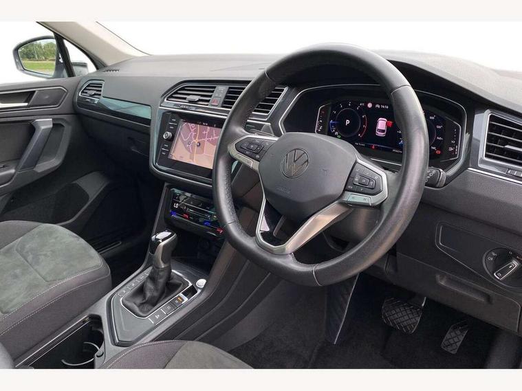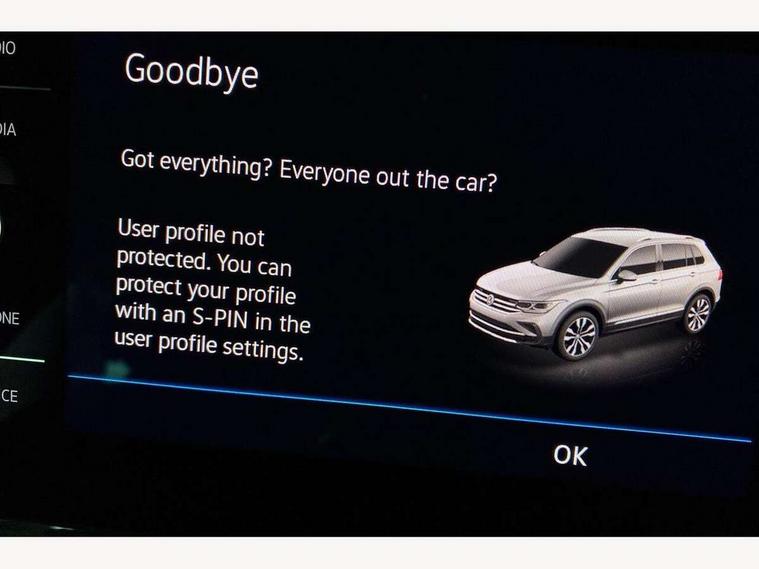 Adaptive cruise control ACC stop and go including speed limiter, App-Connect incl. App-Connect Wireless for Apple CarPlay and Android Auto, Bluetooth phone integration system, Digital Cockpit Pro - Active info display, Distance control assist, Driver alert system, Driver profile selection, Dynamic road sign display, eCall emergency call system, Electric tailgate opening, Electromechanical speed sensitive power steering, Lane keeping system Lane Assist, Lights on warning, Multifunction front facing camera, Outside temperature display, Premium multifunction display with multi colour display, Revision / skills operating concept travel assistant, Service interval indicator, Start/stop system with regenerative braking, Tailgate/trunk lid unlocking from outside, Warning sound and light for doors and tailgate open, Battery regeneration during braking, XDS electronic differential lock for improved traction and handling, 2 USB-C ports in the front, 1 USB-C charging socket on the center console in the rear, Diversity antenna for FM reception, Radio, SD card slot, Simultaneous pairing of 2 compatible mobile devices, SMS functionality - read, compose and send SMS messages using touch-screen display, Title and cover art display, Auto dimming interior rear view mirror, Automatic headlight control system, Body colour door handles, Body coloured bumpers, Coming/leaving home lighting function, Dynamic headlight range control, Front and rear electric windows, Heated rear window, High level 3rd brake light, IQ light with advanced high beam control and dynamic light assist for LED matrix headlamps + Dark red rear combination lamp in LED technology, Laminated safety glass windshield, heat and sound insulating, LED rear number plate lights, LED separate daytime running light, Poor weather light and cornering light, Privacy glass for rear side windows and rear window, Rain sensor windscreen wipers, Rear exhaust tailpipe, Rear fog lamp, Rear windscreen washer and wiper with interval delay, Side and rear windows in heat insulating glass, Tilting and sliding panoramic sunroof with rear panoramic sunroof, Trailer Stability Programme, Windscreen wipers/ intermittent wipe + 4 position delay, 12V outlet in center console rear and in luggage compartment, 2 cup holders in front, 2 LED front reading lights, 2 LED rear reading lights, 3 rear headrests, 4 load lashing points, 40:20:40 split folding rear seats, Air Care Climatronic 3 zone automatic climate control with enhanced air filter and controls in the rear, Backrest release for left front seat, Climate control unit rear with touch function, Door and side trim panel in foam film and woven fabric, Front + rear carpet mats, Front footwell illumination, Front seats head restraints (x-adjustment), Height adjustable front seats, Height/reach adjust steering wheel, Instrument lighting white adjustable panel illumination, Interior light with delay, Isofix Preparation 2 Rear child seats, Leather gear knob, Lockable cooled glovebox, Luggage compartment lighting, Rear bench seat asymetrically split folding, longitudinally movable and folding with load-through hatch and center armrest, Remote unlocking for rear seat backrest, Removable luggage cover, Safety optimised front head restraints, Sliding/reclining rear seats, Standard rear seat release, Storage compartment in driver's door, Storage compartment in passenger's door, Storage compartment in rear doors, Storage compartments in luggage area left and right, Storage tray on dashboard, Sun visors with illuminated vanity mirrors, Variable boot floor, height adjustable and removable, Ambience pack - Tiguan, Chrome pack - Tiguan, Easy open and close pack with safelock - Tiguan, 3 point seat belt for centre rear seats, 3 point seat belts with seat belt pretensioners for the outer rear seats, Active bonnet, Curtain airbags for front and rear passengers, Driver/Front Passenger airbags, Drivers knee airbag, Electronic parking brake with auto hold, Electronic Stability Control with driver steering recommendation, ABS, ASR, EDL, EDTC and trailer stabilization, Front assist with autonomous emergency braking (for Adaptive Cruise Control ACC up to 130 mph), Front disc brakes, Front passenger airbag deactivation, Front side airbags, Height adjustable front 3 point seatbelts + pretensioners, Hill hold control, Pedestrian monitoring system, Proactive passenger protection system in combination with front assist, Rear disc brakes, Rigid safety cell with front and rear crumple zones, Two tone horn, Warning sound and light for front seat belts if unfastened, Anti theft alarm system with interior monitoring, backup horn and towing protection, Anti theft wheel bolts, Central locking system with safelock radio remote control and 2 remote control folding keys, Electronic engine immobiliser, Tool kit,