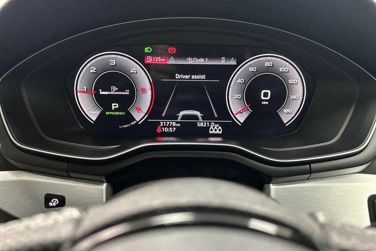 Audi connect safety and service (e-call), Audi connect with Amazon Alexa Integration, Audi drive select (Auto, Comfort, Dynamic, Efficiency and Individual), Audi parking system plus with front and rear sensors, Audi smartphone interface, Audi virtual cockpit - 12.3" full colour digital instrument cluster, vehicle/engine speed, Radio/media information+Driver assistance systems, Automatic start-stop system with coasting functionality and efficiency programme, Bluetooth interface, Electro-mechanical power steering, Email, calendar and text messages displayed via MMI, MMI nav+ with MMI touch - 10.1" high resolution MMI display, touch sensitive, 3D map, route/country info, dynamic route guide, personal route assist, Power operated tailgate, Rear view camera, Service interval indicator, Voice control system, Diesel particulate filter, Sports suspension lowered by 23mm, 8 passive loudspeakers, CD player, DAB digital radio reception, Two additional USB ports for rear passenger in rear centre console, Two SDXC card slots, Audi matrix LED headlights with LED rear lights + dynamic front and rear indicators, Auto dimming door mirrors, Auto dimming rear view mirror, Body colour bumpers, Body colour door handles, Body colour front spoiler lip, Body colour side sill trim, Body coloured door mirrors, Electric adjustable heated door mirrors, Electric folding door mirrors, Electric front windows, Front fog lights, Honeycomb structure radiator grille in grained matt black, Kerb-view function for passenger side, LED daytime running lights, LED side indicator lights integrated into door mirrors, LED third brake light, Matt aluminium silver tailpipe trim, Privacy glass, Rain and light sensors, Rear side wing doors, S line badges on front wings, S line front and rear bumpers with side skirts, S Line rear diffuser in matt titanium black with trim strip in matt aluminium silver, Side air inlets in grained matt black with matt aluminium silver inlay, Variable front intermittent wipers, Windscreen with acoustic glazing, 3 seat bench in 2nd row, 4 way electric lumbar support for driver and front passenger, 40/20/40 split folding 3 seater rear bench seat, Adjustable steering column, Black cloth headlining, Black perforated leather gearknob, Contrast stitching on seats, steering wheel and gear lever gaiter, Deluxe 3 zone electronic climate control, Front centre armrest, Front head restraints, Front/rear floor mats, Heated front seats, Illuminated door sill trim with S logo, ISOFIX child seat mounting and top tether, Luggage compartment mat, Manual seat adjustment, Rear centre armrest, Rear headrests, Single front passenger seat, Stainless steel pedals, Sunvisors with vanity mirrors, LED interior light pack - A5/RS5, 3x3 point rear seatbelts, 6 airbags - Driver, front passenger, curtain and side airbags, Electromechanical parking brake, Electronic Stabilisation Control (ESC) including ABS, ASR and EDL, Front passenger airbag deactivation, Height adjustable front seatbelts, Hill hold assist, Manual child lock in rear doors, Multi collision brake assist, Pop-up bonnet for pedestrian protection, Pre sense city, Seatbelt monitoring, Tyre pressure warning, Variable restraint system, Warning triangle and first aid kit, Anti theft alarm system, Anti theft wheel bolts, Immobiliser, Keyless Go, Remote central locking, Matt brushed aluminium inlays, Tool kit, Tyre repair kit,
