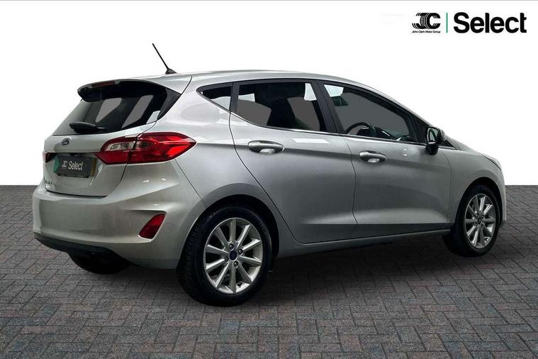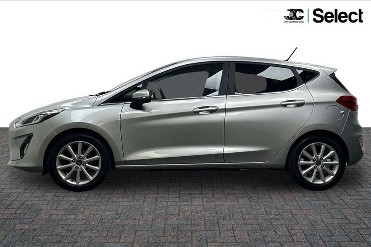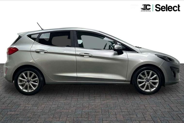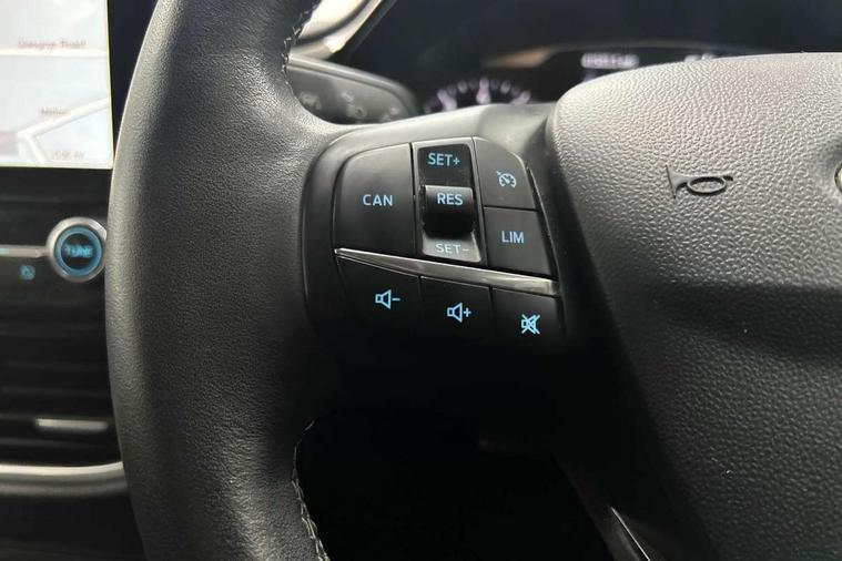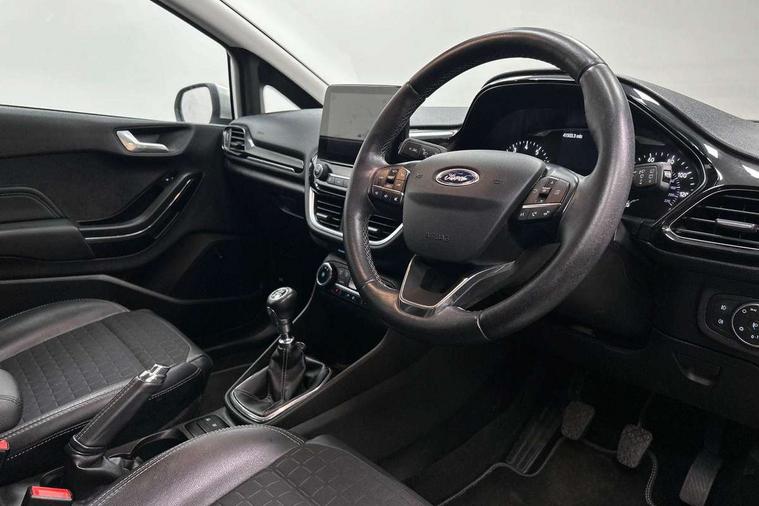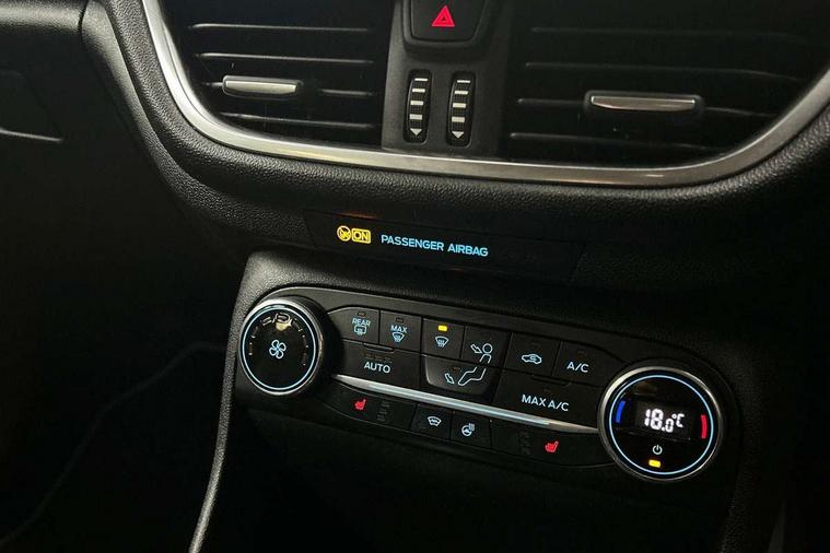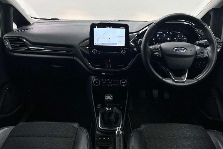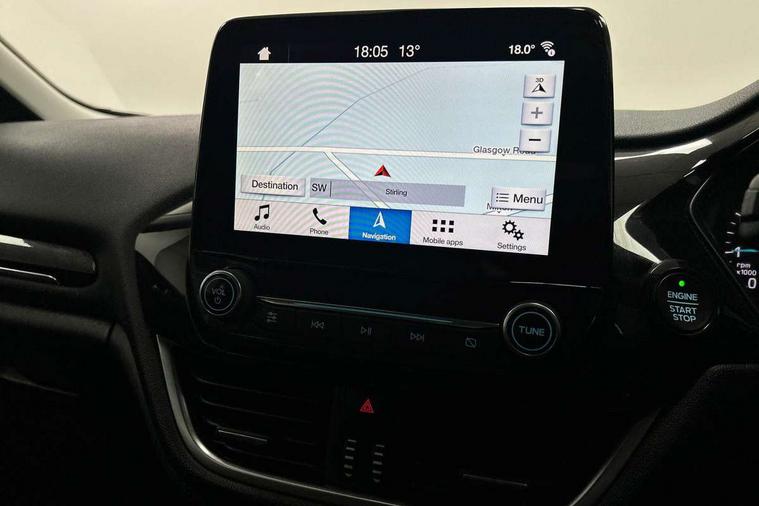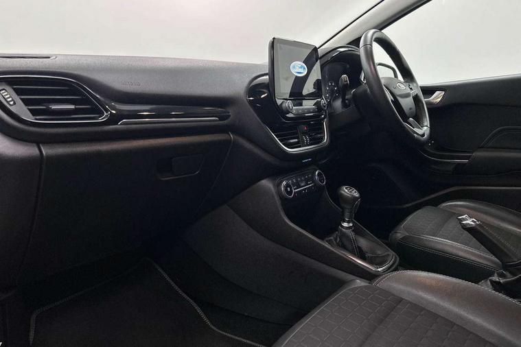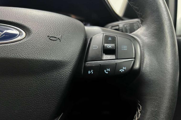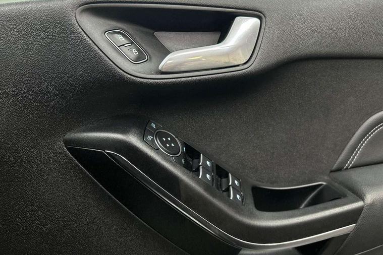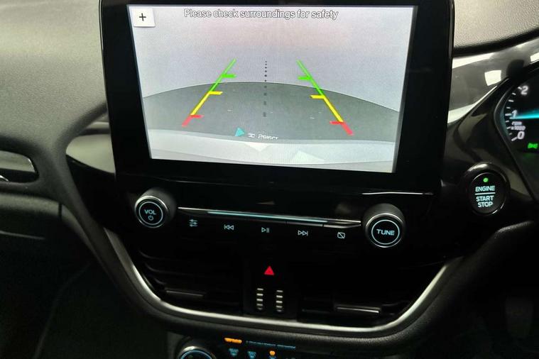 Bluetooth system, Driver alert system, Electric power steering, Lane keep assist, Rear view camera, SYNC Emergency Assistance, Traffic sign recognition, Trip computer, Auxiliary input socket, Bang and Olufsen premium sound with 10 speakers and Ford SYNC 3 Navigation, DAB with voice control, Steering wheel mounted controls, USB connection, Auto dimming rear view mirror, Auto high beam, Automatic headlights, Body colour bumpers, Body colour door handles, Body colour electric adjustable heated door mirrors, Body colour rear spoiler, Chrome beltline trim, Cornering front fog lights, Electric folding door mirrors with puddle lamps, Electric front windows/one touch facility, Electric rear windows, LED daytime running lights, LED rear lights, Privacy glass, Quickclear heated windscreen, Rear wiper, Tinted glass, Upper front grille chrome surround, 12V Accessory socket in centre console, 3 spoke leather steering wheel, 60/40 split folding rear seat, Adjustable head restraints, Air conditioning + Electric Auto Temperature Control (EATC), Boot carpet, Centre console with armrest, Chrome inner door handles, Driver/passenger seat height adj/lumbar support, Footwell illumination, Front and rear velour floor mats, Front map reading lights, Front seat and rear pockets, Illuminated cup holders, Illuminated glovebox, Leather gear knob, Leather trimmed handbrake handle, Load area light, Luxury woven headliner, Overhead console with sunglasses holder, Part leather upholstery, Pollen filter, Rake/reach adjustable steering wheel, Rear centre head restraint, Comfort Pack - Fiesta, 3 point seatbelts on all rear seats, ABS+EBA, Curtain airbags, Driver and passenger airbags, Drivers knee airbag, ESP + traction control, Front passenger airbag deactivation, Front side airbags, Hill start assist, Seatbelt warning, Tyre pressure monitoring system, Immobiliser, Keyless entry and keyless start, MyKey system, Remote central locking, Thatcham Cat.1 alarm, Tyre repair kit,