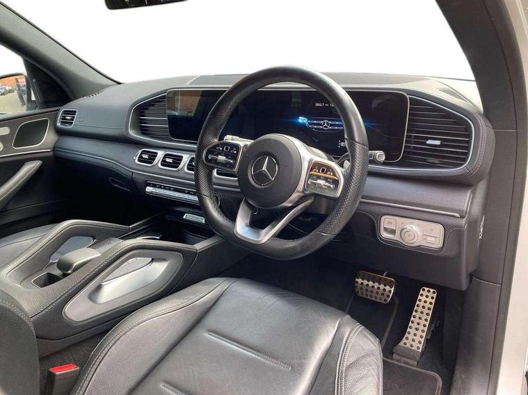 12.3 High resolution wide screen cockpit display with choice of three display styles Classic, Progressive or Sport and unique ambient lighting setting, Attention assist, Blind spot assist, Brake wear warning display, Cruise control with variable speed limiter, Direct steer speed sensitive steering, DYNAMIC SELECT with a choice of driving modes (ECO, Comfort, Sport and Individual), Easy-pack tailgate - Powered opening/closing automatically, ECO start/stop function, Geofencing, Hard-disk navigation, Hey Mercedes Voice activation, High resolution 12.3" multimedia colour display, Lane keeping assistant (LKA), Mercedes me connect including emergency call system, accident recovery, breakdown and maintenance management, Outside temperature display, Remote boot release, Reversing camera, Service indicator (ASSYST), Smartphone integration, Speed limit assist, Status display for rear seat belts in instrument cluster, Traffic Sign Assist, Traffic sign recognition including wrong way warning function and display of posted speed limits in the instrument cluster, Trip computer in multifunction display showing current fuel consumption, Wireless charging, 85 litre fuel tank, 9G TRONIC 9 speed automatic transmission, Lowered comfort suspension with steel springs and selective adaptive dampening with lowering by up to -15mm, Mild Hybrid starter alternator, Petrol Particulate Filter (PPF), Additional USB connection, DAB Digital radio, Dual bluetooth interface, 2 USB ports (type C), MBUX multimedia system, 3rd brake light, Adaptive brake lights, Adaptive high beam assist, Aerial for GPS, Aluminium look, illuminated running boards with rubber studs, AMG bodystyling front and rear aprons and side skirts in polished aluminium, Body colour door mirrors, Body coloured bumpers, Daytime running lights, Electric windows with one touch opening/closing and obstruction sensors, Exterior mirrors heated and electronically adjustable, Front green tinted glass, LED high performance headlamps, LED rear lights, Privacy glass - heat insulating dark tinted glass, Radiator grille with integrated star and single louvre in matt iridium silver with chrome trim, Radio aerial integrated into rear window, Rain sensing windscreen wipers, Rear side wing doors, Rear wiper, Roof rail system, Top surround of side windows in polished aluminium, Visible twin pipe exhaust system integrated into bumper, Waistline in polished aluminium, 3 spoke AMG multifunction steering wheel with touch control buttons, trimmed in black nappa leather with flattened bottom section, 3rd row of seats for 2 people, 4 way adjustable front head restraints and 2 way rear head restraints, 4 way lumbar support, 40:20:40 split folding rear seats, AMG brushed stainless steel sports pedals with rubber studs, AMG floor mats with AMG lettering, Artico man-made leather upper dashboard with contrast topstitching, Automatic child seat recognition sensor, Black roof liner, Central stowage compartment with 12 V socket in centre console, Chrome door pins, Courtesy lights in rear grab handles with reading light functionality, Electric height/reach adjustable steering column, Electronically adjustable second row three seats adjustments, Front centre armrest with stowage compartment and illuminated grab handles, Gearshift paddles on steering wheel, Glove compartment - lockable, air conditioned and illuminated, Heated front seats, Interior lighting - 64 colour Ambient lighting, Seat occupancy sensor for front passenger seat, Second row three seats, Single front passenger seat, Sports steering wheel, Sunvisors with illuminated vanity mirrors, Thermotronic automatic 4 zone climate control, Touchpad, Anti theft Protection package - GLE, Memory package - GLE, Mirror package - GLE, Parking package - GLE, Active bonnet, Active braking assist, Adaptive brake system with HOLD function and brake drying in the wet, Airbags - driver and front passenger, with extended adaptivity for front passenger airbag, Airbags - sidebag for driver and front passenger with combined thorax/pelvis bag, Airbags - windowbags, Anti-lock braking system (ABS), Childproof locks manually operated for rear doors and electrically operated for rear power windows, Drivers knee airbag, Electronic parking brake, Electronic Stability Programme (ESP), ISOFIX child seat attachment points two outer rear seats, Perforated front brake discs and brake calipers with Mercedes-Benz lettering, Pre-Safe anticipatory safety system, Three point rear seat belts, Tyre pressure monitoring system and loss warning system, Warning triangle and first aid kit, Alarm system/interior protection/immobiliser, Central locking with interior switch, automatic locking and crash sensor with emergency opening function, Chrome surround electric key, Keyless Go starting function, Dashboard and door, anthracite open pore oak wood trim, Trim - Centre console, anthracite open pore oak wood trim, 21" AMG multi spoke light alloy wheels painted in black with a high sheen finish, Summer tyres with noise reducing absorber, TIREFIT with tyre inflation compressor,