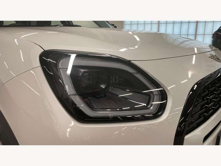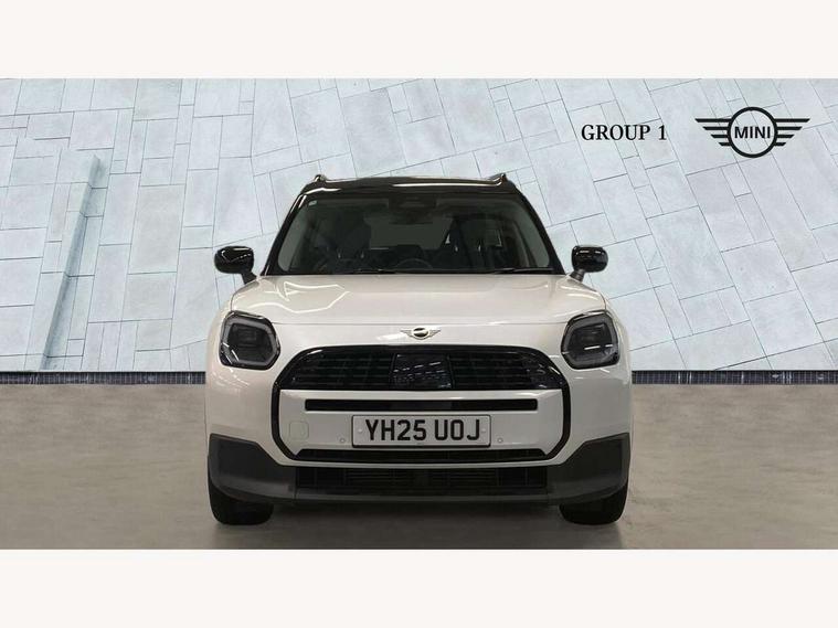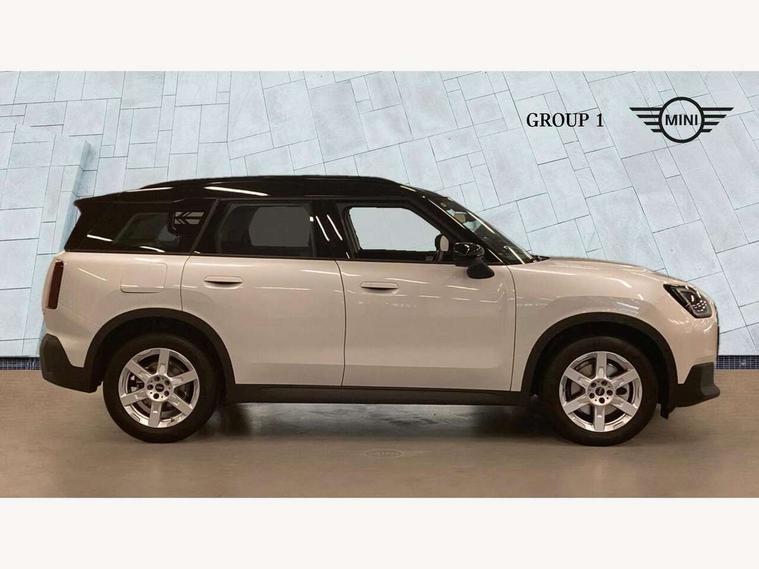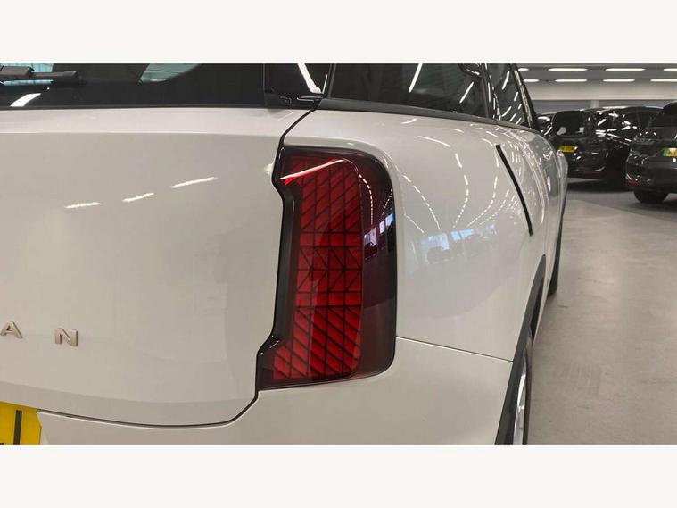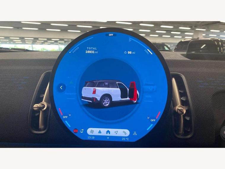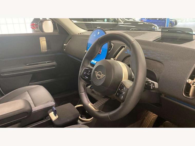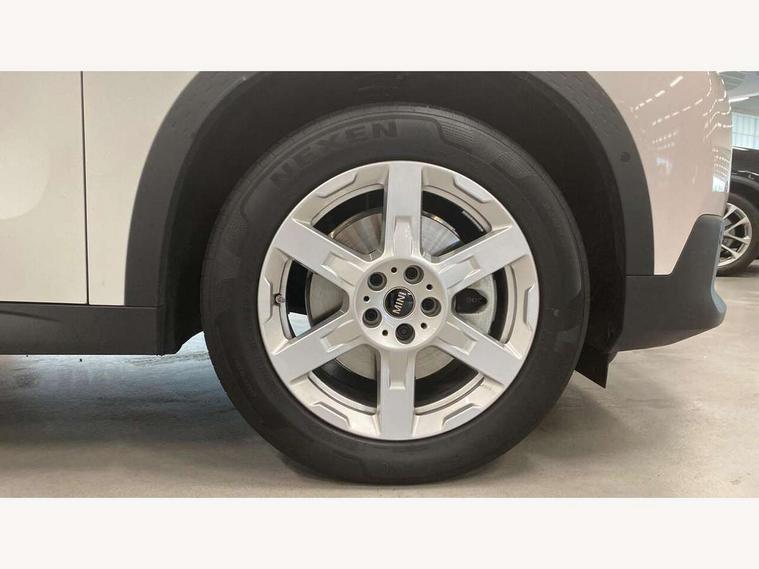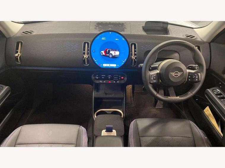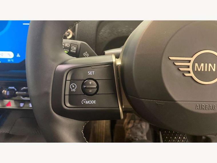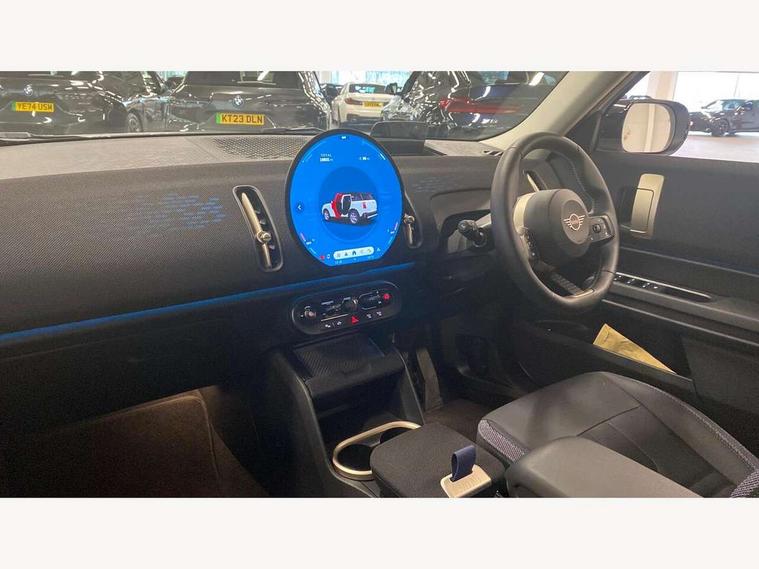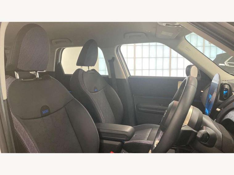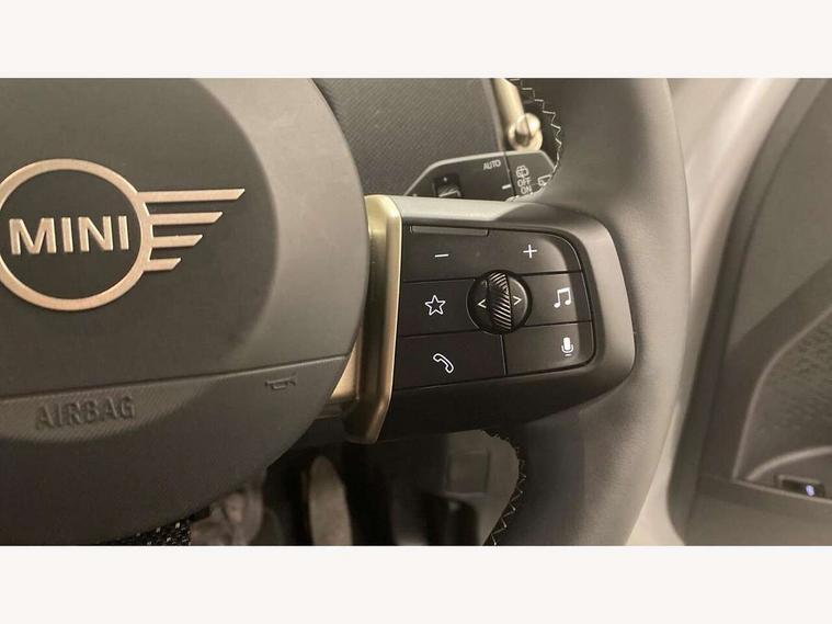 Bluetooth connection, Circular OLED Screen, Compatible mobile phone bluetooth with audio streaming, Cruise Control (DCC), Digital dashboard display, Driving assistant, E-call, Electro-mechanical speed dependant steering assistance, MINI Experience Modes, Mini navigation system, MINI TeleServices, Parking assistant in camera and ultrasound based assistance system, rear view camera, parking aid and distance control, Auto transmission with Paddles, Larger capacity fuel tank, 6 speakers, DAB Digital radio, Personal eSim, Auto tailgate, Electric adjustable heated door mirrors, Front and rear electric windows, Heated rear window, LED daytime running lights, LED Headlights, LED rear lights, LED third brake light, Rain sensor with auto headlights, Rear side wing doors, Rear window wiper, Roof rails, 3 seat bench in 2nd row, 60/40 split rear bench seat, Auto air conditioning, Floor mats, Front armrest, Front headrests, Heated steering wheel, Height and length steering column adjustment, Light headliner, Rear headrests, Single front passenger seat, Sport Vescin Steering Wheel, Sunvisors with vanity mirrors, Vescin/Cloth upholstery, 3x3 point rear seat belts, 6 Airbags - front, side, head and seat belt tensioners, ABS, DSC - Dynamic Stability Control, Electronic handbrake, Electronic Stability Programme (ESP), Front ISOFIX (iSize), Hill hold assist, Hill start assist, Manual rear child locks, Traction control, Tyre pressure monitoring system, Warning triangle, Alarm system with tilt sensor, monitoring doors, bonnet interior and tailgate, Auto drive away locking, Deadlocking function, Electronic vehicle immobiliser, Locking wheel bolts, Remote control locking, Start/stop toggle with keyless go, Black/Blue dashboard knit, MINI Mobility Kit,
