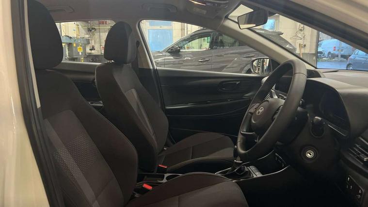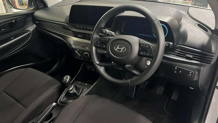 10.25" touchscreen + navigation, 2nd Gen eCall, 8" Touchscreen DAB Radio with android auto and apple carplay, Cruise control + speed limiter, Forward collision assist with car, pedestrian and cycle detection, Intelligent speed assist, Intelligent speed limit warning, Lane follow assist, Lane keep assist, PAS, Rear parking sensor, Rear view camera with dynamic guidelines, USB C port front, Automatic headlights with dusk sensor, Electric adjustable heated door mirrors, Front grille mesh pattern design, High beam assist, LED 3rd brake light, LED daytime running lights, LED Headlights, LED taillights, Rain sensor, Rear side wing doors, Rear wiper, Repositioned flat metal hyundai emblem, Trailer wiring, 3 seat bench in 2nd row, Adjustable head restraints, Air conditioning, Cloth upholstery, Floor mats, Leather steering wheel, Single front passenger seat, 3x3 point rear seatbelts, ABS with front and rear diagonally split, Autonomous emergency braking, Child locks on rear doors, Front ventilated disc brakes, Rear solid disc brakes, Tyre pressure monitoring system, 16" alloy wheels, Tyre repair kit,