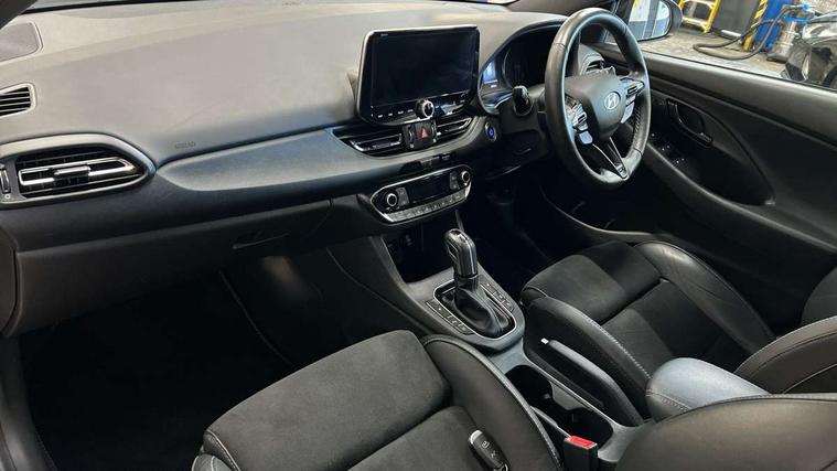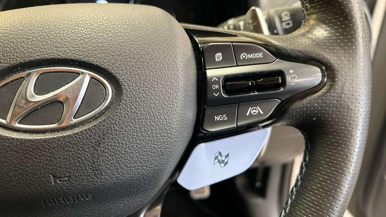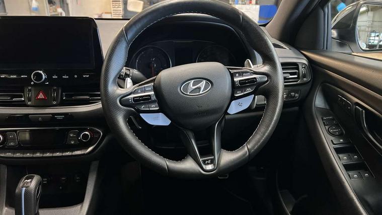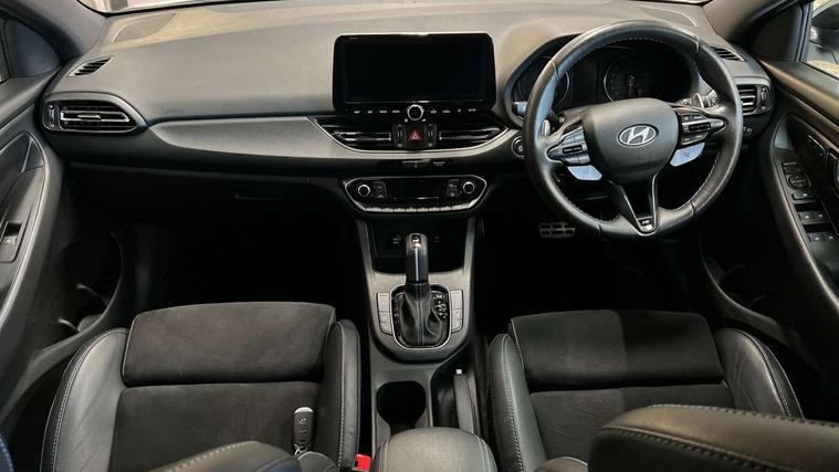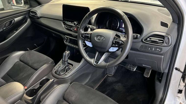 10.25" touchscreen centre console display satellite navigation including traffic messaging channel, map care and live services, Android Auto, Apple car play, Audio control with voice recognition, Blind spot Collision Warning (BCW), Bluetooth connectivity with voice recognition, Cruise control, Drive mode buttons, Driver attention alert system, Driver's supervision instrument cluster with 4.2" LCD display, e-Call (Emergency button system), Emergency stop signalling system, Forward collision avoidance assist, Front and rear parking sensors, Intelligent speed limit warning, Lane follow assist, Lane keep assist, N exclusive sport cluster, N grin shift, N mode button, N track sense shift, Parking system with rear camera and guidance system, Performance information display, Rack motor driven power steering, Rear collision assist, Rev matching system, Shift timing indicator, Trip computer, Windscreen washer fluid sensor and warning indicator, Wireless phone charging pad, Electric active sound design, Electronic limited slip differential, Electronically controlled suspension, Intelligent Stop and Go, Launch control, 2 front and 2 rear speakers with 2 tweeters, DAB Digital radio, USB ports in centre console, 1 speed non intermittent rear windscreen wiper, Active variable exhaust system, Adjustable intermittent front windscreen wipers with aero wiper blade, Automatic defog system for front windscreen, Automatic dimming rear view mirror, Automatic headlight with follow me home function, Automatic windscreen wipers with rain sensor, Black finish window surrounds, Black glossy door mirrors with integrated indicators, Body coloured door handles, Door mirror puddle lights, Dual LED Headlamps with Low/High Projection & Static Cornering, Dusk sensor, Electric adjustable heated door mirrors, Electric folding door mirrors, Electric windows - front and rear with anti-trap mechanism and one touch control (driver window), LED daytime running lights, LED tail lights, N exclusive front and rear bumpers, N exclusive radiator grille, N exclusive rear diffuser, Rear brake light in signature N triangular design, Rear LED lights, Rear roof spoiler with integrated LED brake light, Rear side wing doors, Rear stiffness bar, Rear windows and tailgate privacy glass, Shark fin antenna, Static Cornering lights, Tinted glass with windscreen shade band, 12V power outlets in front console and luggage compartment, 3 seat bench in 2nd row, 60/40 split folding rear seat, Active head restraints, Aluminium pedals, Black roof liner, Centre console storage, Chrome effect interior door handles, Driver's seat electric height adjustment, Driver's seat manual extendable seat cushion, Driver/passenger sunvisors and illuminated vanity mirrors, Dual zone climate control air conditioning, Electric adjust driver's seat, Floor mats, Front and rear door pockets, Front armrest with storage box, Front cupholders, Front head restraints with vertical and horizontal adjustment, Front passenger's seat electric adjustments, Front passenger's seat electric height adjustment, Front passenger's seat electric lumbar support, Front passenger's seat manual extendable seat cushion, Front, rear and luggage compartment interior lights, Glove compartment, Heated front seats, Heated function steering wheel, Interior front map reading light and sunglasses holder, ISOFIX child seat anchorage points attached on outer rear seats, Leather gearstick gaiter with light blue stitching, Leather wrapped steering wheel and gear knob, Luggage board, N branded aluminium door sill trims, N drive mode steering wheel button in blue, Reach + rake adjustable steering column, Rear armrest with cupholder, Rear head restraints, Single front passenger seat, Steering wheel audio, phone and cruise control buttons, 3x3 point rear seatbelts, Airbags - front, front side and curtain airbags, Anti-lock braking system (ABS), Childproof rear door locks, Curtain airbag roll over sensor, Electronic stability control, Front passenger airbag deactivation switch, Front seatbelt reminder, Height adjustable seatbelts, Hill start assist control (HAC), Manual parking brake, N power shift, Red brake calipers with N logo, Reinforced brakes, Seatbelt reminder for rear passenger seats, Torque vectoring brake, Tyre pressure monitoring system (TPMS), Deadlocks, Immobiliser, Locking wheel nuts, Remote control central locking, Smart key with keyless entry and engine start/stop button, Speed sensitive automatic door locking, Thatcham category 1 alarm, 19" Gloss black alloy wheels, 19" Pirelli P zero performance tyres, Temporary mobility kit (TMK),