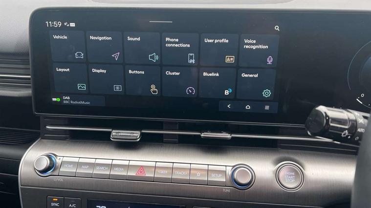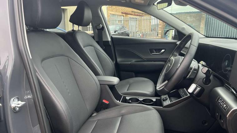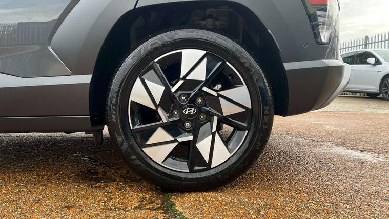 12.25" digital instrument cluster, 12.3" touchscreen centre console display satellite navigation with bluelink, live services and mapcare, Blind spot collision avoidance assist, Blind spot view monitor, Bluetooth connectivity with voice recognition, Driver status monitor (DSM), Driver supervision instrument cluster with 12.3" LCD display, eCall emergency call system, Feature on demand - Enabled, Forward collision avoidance assist (FCA 1.5) - Car, pededstrian, cycle and junction turning, Front parking sensor, HDA - Highway Drive Assist Level 1.5, Height adjustable power tailgate, Intelligent speed limit assist, Lane follow assist, Lane keep assist, Leading vehicle departure alert (LVDA), Parking Collision Avoidance Assist-Reverse (PCA-R), Parking distance warning - side, Parking system with rear camera and guidance system, PAS, Rear cross traffic collision avoidance (RCCA), Rear parking sensor, Rear view camera with dynamic guidelines, Roadside assistance, Safe exit warning (SEW), Smart cruise control with stop and go functionality, Surround view monitor, Wireless phone charging pad, Wireless Smartphone Integration includes Apple CarPlay and Android auto, 2 front USB C and 2 rear USB C charging points, Bose Premium Audio system with 7 premium speakers + subwoofer, DAB Digital radio, Steering wheel audio, phone and cruise controls, Auto dimming rear view mirror, Automatic headlights with dusk sensor, Automatic windscreen wipers with rain sensor, Black painted wheel arch inserts, Body colour exterior door handles, Body coloured door mirrors, Door mirror LED indicator lights, Electric front windows with anti-trap mechanism and one touch control, Electric rear windows, Electric sunroof, Electrically adjustable and heated door mirrors, Horizon centre LED DRL, LED projector headlights, LED taillights, LED upper and lower rear lights, Power folding door mirrors, Privacy glass - Rear windows and tailgate, Rain sensor, Rear roof spoiler with integrated LED brake light, Rear side wing doors, Rear skid plate - silver, Rear wiper, Roof rails, Solar glass with front door glass and windscreen, Tinted glass in front and rear doors, Windscreen auto defog function, 12V power outlet in front console, 2 zone climate control, 3 seat bench in 2nd row, 40/20/40 split folding rear seat, Adjustable head restraints, Ambient lighting, Driver and passenger front seat pockets, Driver's seat electric adjustments, Driver's seat lumbar support, Driver/passenger sunvisors and illuminated vanity mirrors, Floor mats, Front passenger's seat electric adjustments, Heated front seats, Heated rear seats, Heated steering wheel, Height/reach adjustable steering column, Leather steering wheel, Leather upholstery, LED centre interior light, LED front interior light, Luggage compartment LED lighting, Luggage net, Luggage shelf, Metal paint effect interior door handles, Rear centre armrest with cupholders, Shift by wire SBW, Single front passenger seat, Ventilated front seats, Vertical adjustment rear head restraints, Trailer wiring package - Kona, Airbag - front, front side, curtain and centre front airbag, Anti-lock brake system (ABS), Childproof rear door locks, Downhill brake control, Electric parking brake, Electronic stability control, Fixed 3 point for second row centre passenger seatbelt, Hill start assist control (HAC), Rear seat alert, Tyre pressure monitoring system, Alarm/immobiliser, Rear occupant alert, Remote central locking, Smart key with keyless entry and start/stop button, Five year annual vehicle health checks, 18" Alloy wheels, Temporary mobility kit (TMK),