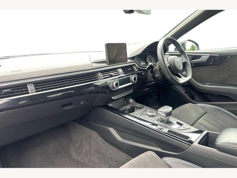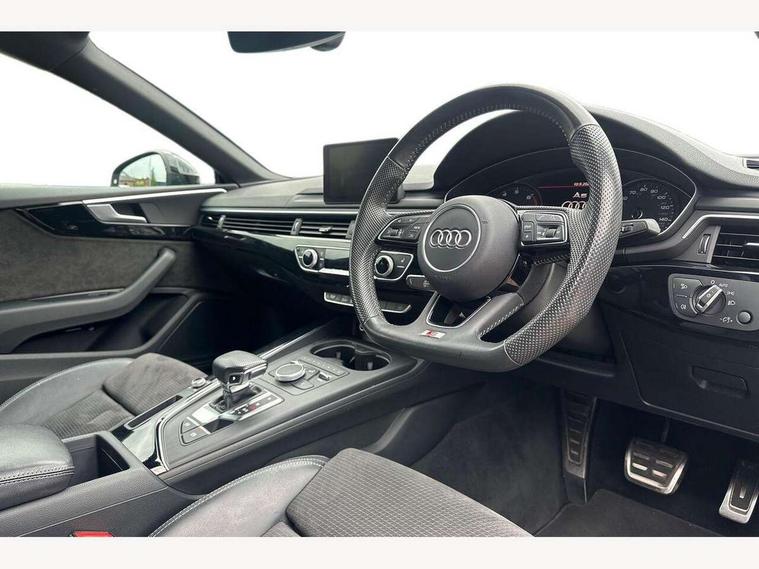 7" Colour driver information system, Audi connect, Audi drive select, Audi parking system plus with front and rear sensors, Audi smartphone interface, Automatic start-stop system with coasting functionality and efficiency programme, Bluetooth interface, Electric boot release, Electro-mechanical power steering, MMI Navigation, Service interval indicator, Voice control system, 2 x USB charging port with aux input socket, CD player, DAB Digital radio, Two SDXC card slots, Air inlets in titanium black with matt aluminium inlay, Auto dimming rear view mirror, Body colour bumpers, Chrome plated exhaust pipe, Electric adjustable heated door mirrors, Electric front windows, Front fog lights, High beam assistant, High gloss black door mirrors, Rain and light sensors, Rear diffuser in Twilight grey matt with honeycomb grille, S Line body styling, S line sill plates, S style high gloss black rear spoiler, Side and rear windows privacy glass, Titanium black frame and radiator grille, Titanium black front and rear air intakes, Titanium black window surround, Windscreen with acoustic glazing, 3 spoke flat bottom high multi-function leather steering wheel, 40/20/40 split folding 2 seater rear seat bench with rear centre armrest, Adjustable steering column, Black headlining, Black perforated leather gearknob, Centre console with cupholders, Contrast stitching on seats, steering wheel and gear lever gaiter, Deluxe 3 zone electronic climate control, Front centre armrest, Front head restraints, Front/rear floor mats, Gearshift paddles, Illuminated door sills, ISOFIX child seat mounting and top tether, Jack and tool kit, Luggage compartment mat, Rear headrests, S embossed logo on front sport seats, Stainless steel pedals and foot rest, Non Smokers pack, 6 airbags - Driver, front passenger, curtain and side airbags, Electromechanical parking brake, Electronic Stabilisation Control (ESC) including ABS, ASR and EDL, Front passenger airbag deactivation, Height adjustable front seatbelts, Hill hold function, Multi-Collision braking, Pop-up bonnet for pedestrian protection, Pre sense city, Seatbelt monitoring, Tyre pressure warning, Variable restraint system, Warning triangle and first aid kit, Anti theft alarm system, Anti theft wheel bolts, Immobiliser, Keyless Go, Remote central locking, Piano black finish inlay, 20" 5 arm rotor alloy design wheels with matt titanium finish, Tyre repair kit,