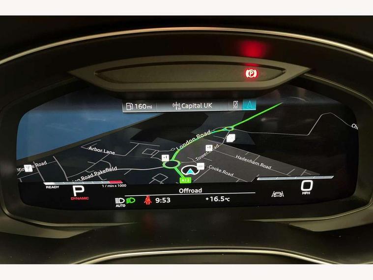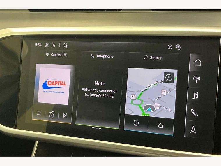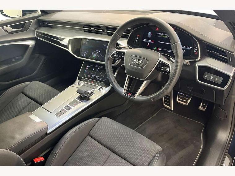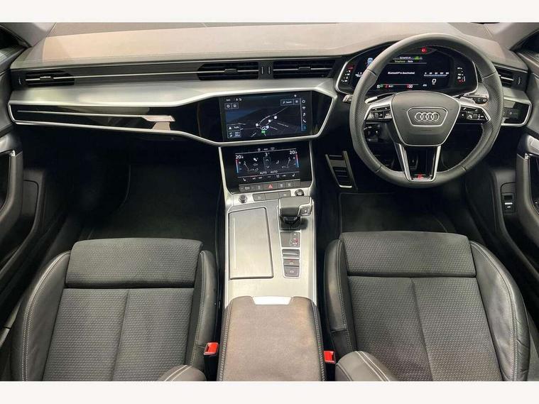 7" high resolution colour driver information display system, Audi connect safety and service (e-call), Audi connect with Amazon Alexa Integration, Audi drive select, Audi parking system plus - acoustic and visual park assist system for front and rear, Automatic start/stop system with coasting functionality, Bluetooth interface, Lane departure warning system, Power operated tailgate, Progressive steering, Rear view camera, Service interval indicator, Smartphone interface includes wireless Apple carplay/Android Auto, Voice control system, Sports suspension, Audi front music interface, Audi sound system, Auxiliary input socket, DAB Digital radio, USB connection, Aluminium roof rails, Body coloured door mirrors, Electric front/rear windows, Frameless auto dimming interior rear view mirror, Front intermittent wipers, Headlight washers, Heat insulating darkened glass in side and rear windows, Heat insulating glass in windshield, LED signature front daytime running light, LED third brake light, Matrix LED headlights, Matt black side air intake grille with inlay in matt aluminium, Privacy glass, Radiator grille in anthracite black matt, single frame in chrome and horizontal struts in matt aluminium silver, Rain and light sensors, Rear side wing doors, Rear wiper, S line air inlet design with inlay in matt aluminium, S Line badge on front fender, S Line front and rear bumpers, S line rear diffuser and grille in matt black with matt aluminium tailpipes, S Line roof edge spoiler, S Line side skirts, Signature rear LED light design, 2 zone deluxe electronic climate control, 4 way electric lumbar support for driver and front passenger, 40/20/40 split folding 3 rear seat bench in 3 parts with rear centre armrest, Black cloth headlining, Black steering wheel insert, Electrically adjustable front seats with driver memory, Front centre armrest, Front head restraints, Heated front seats, Height/reach adjust steering wheel, Illuminated door sill trims with S logo, Illuminated sun visors with vanity mirrors, ISOFIX child seat mounting and Top Tether with front passenger airbag deactivation, Leather gear knob, Luggage compartment system, Perforated leather steering wheel with contrast stitching, Rear headrests, S line front and rear black carpet floor mats with contrast stitching, Single front passenger seat, Stainless steel pedals and foot rest, LED Interior Ambient Lighting Pack - A6, Non smoking pack - A6, Technology pack - A6, 3 point seatbelts on all seats, Airbags - Front side, front and rear including head, Audi pre-sense front, Black seatbelts, EBD - Electronic brakeforce distribution, Electromechanical parking brake, Electronic Stability Control (ESC) including ABS, ASR and EDL, Extended pedestrian protection measures, Manual child proof rear door locks, Seatbelt monitoring, Tyre pressure warning light, Warning triangle and first aid kit, Anti theft alarm with tow away protection, Anti-theft wheel bolts and wheel loosening detection, Immobiliser, Keyless Go, Remote central locking, Matt brushed aluminium dark inlays,