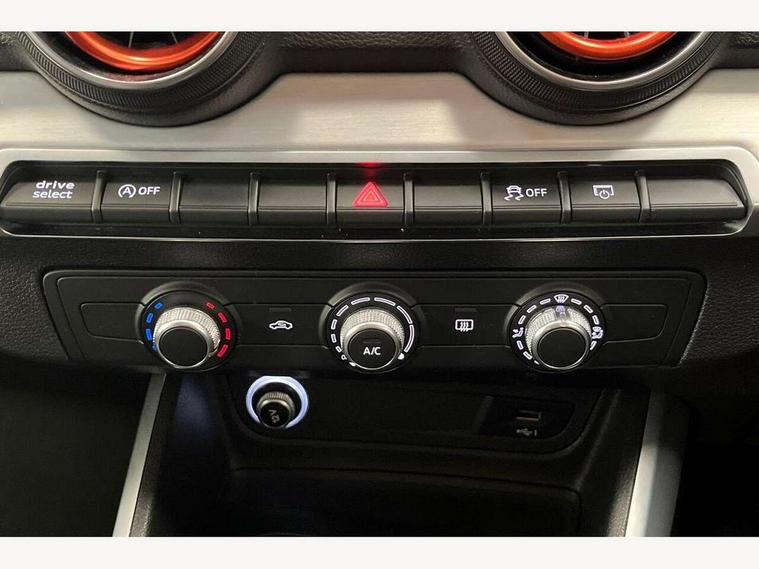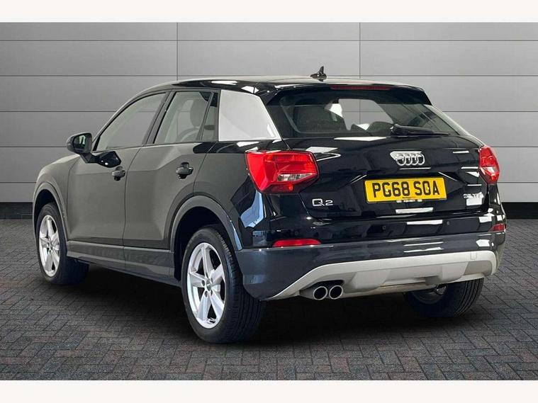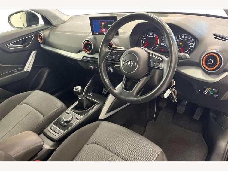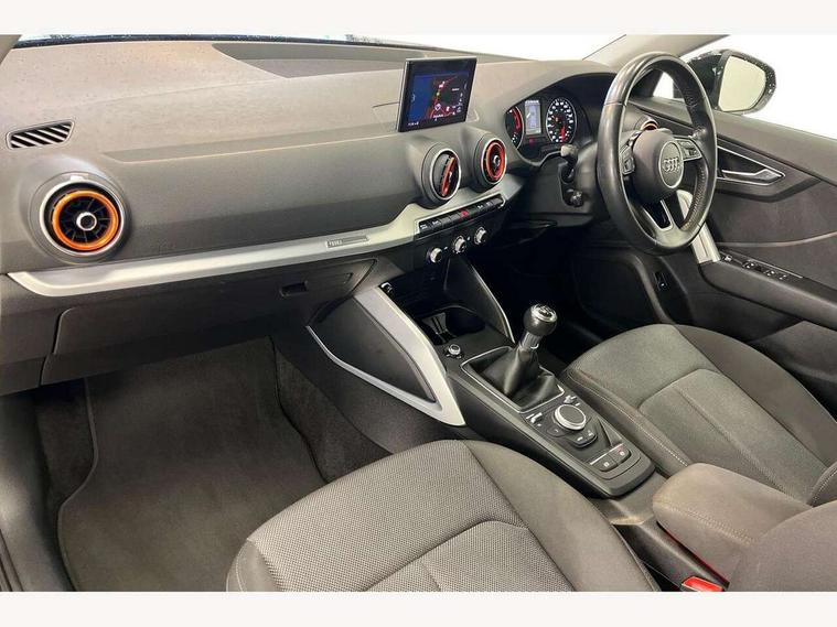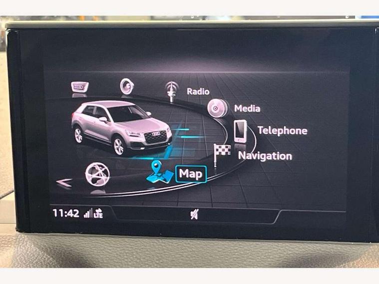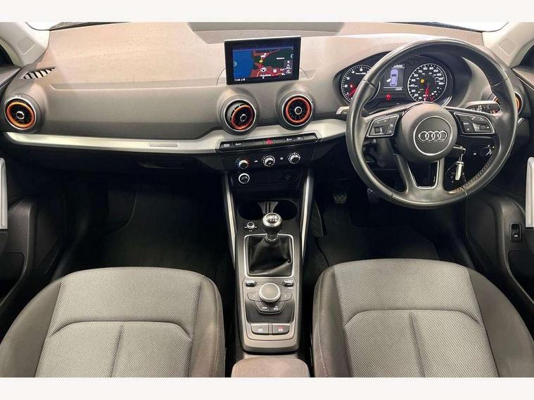 Audi drive select, Audi smartphone interface, Automatic start/stop system with recuperation, Bluetooth interface includes bluetooth audio streaming, Cruise control, MMI - Multi Media Interface control system, MMI SD card integrated nav with 3D map display, dynamic route guidance with TMC, MMI search, natural voice recognition and myAudi special destinations, Power operated tailgate, Progressive steering, Service interval indicator, Dynamic suspension, 2 x SDXC card reader, Audi music interface - apple iPod, apple iPhone, USB storage media, compatible MP3 players, 2 x USB charging points and 1 x Aux-in, CD Drive, DAB digital radio and AM/FM radio, MMI radio plus with 7" colour MMI screen and MMI controller, Air inlet in manhattan grey metallic, Black window trims, Body colour door mirrors, Chrome exhaust tailpipe, Electrically adjustable and heated door mirrors with integrated LED side indicators, Front and rear electric windows, Front underbody guard and rear diffuser trim in selenite silver, Front windscreen with grey tinted sunband, Halogen headlights including headlight range adjustment, High gloss black radiator grille, Interior mirror, LED indicator lights, Manual folding door mirrors, Rain and light sensors, Rear wiper, Side skirts in manhattan grey, Wheel arch trims in manhattan grey, 60/40 split folding rear seat bench, Door sill trims with aluminium inlay, Electronically operated child locks, Front centre armrest, Front headrests, Front sports seats, Front/rear floor mats, Height/reach adjust steering wheel, ISOFIX child seat mounting for front passenger with airbag deactivation and outer rear seat including top tether attachment point for outer rear seats, Manual seat adjustment including seat height adjustment for front seats, Storage compartments - Glovebox, cupholder compartment in centre console, storage compartment in rear centre console, front and rear door pockets, Three rear headrests, Titanium grey cloth headlining, Non smoking pack - Q2, 3x3 point rear seatbelts, 6 airbags - Front, curtain and front side airbags, Electromechanical parking brake, Electronic stabilisation control including ABS, ASR and EDL, Extended and proactive pedestrian protection, Hill hold assist, Multi collision brake assist, Pre-sense front with pedestrian recognition, Seatbelt monitoring, Tyre pressure warning light, Warning triangle and first aid kit, Anti theft alarm, Anti theft wheel bolts, Central locking system with remote control key, Aluminium interior element,