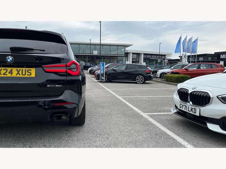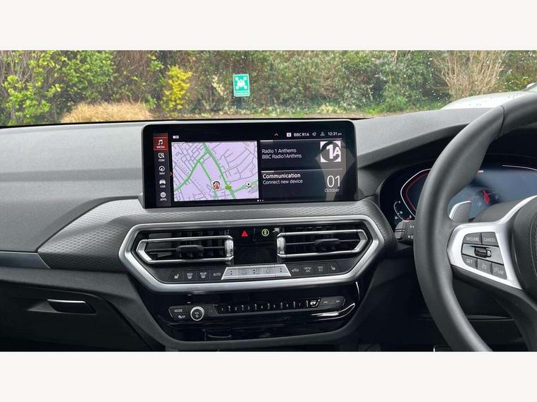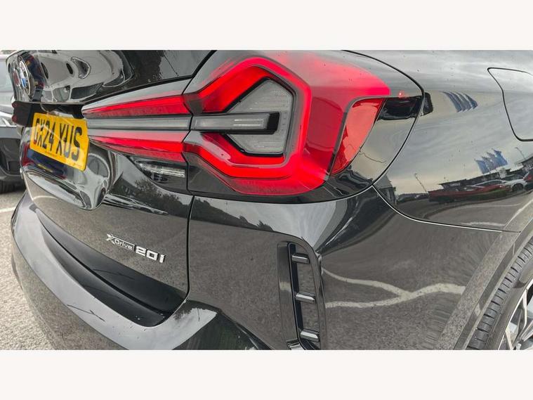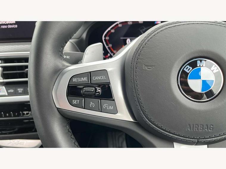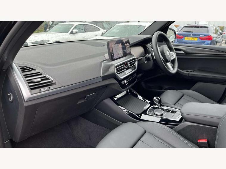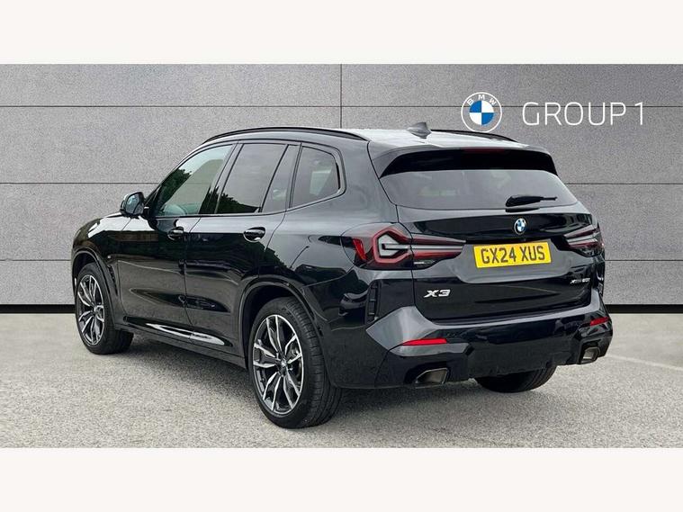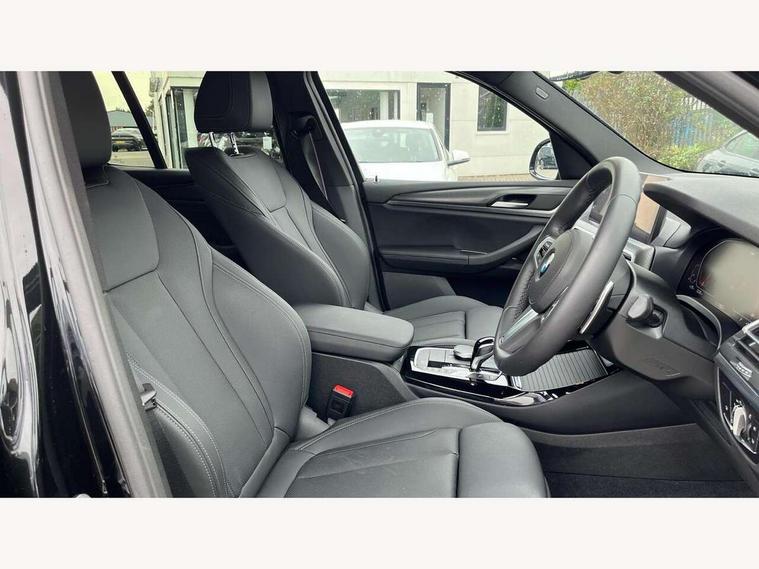 Active Guard, Attentiveness assist, BMW Live Cockpit Professional nav system including 12.3" instrument display + 12.3 high resolution control display, BMW Online services, BMW Teleservices, Brake pad wear indicator in front and rear, Check Control warning system for monitoring of lights and door/luggage compartment open warning, Condition based service - BMW service history, electronic service booklet, integrated owner's handbook, Connected drive services, Electric boot lid, Front/rear Parking distance control, iDrive touch controller with 8 favourite buttons, Instrument cluster with speedometer with mph readout, tachometer, fuel gauge and oil temperature gauge, Lights on warning by audio warning signal when ignition is switched off, Oil sensor for level and grade, warning by check control system, On board computer - average speed+fuel consumption, service interval, clock/date, odometer/trip meter, outside temperature display and ice warning, Optimum shift indicator, Personal Profile - automatic lock when driving away selectable, Run flat indicator, Stop/start system, Variable sports power steering with drive performance control Sport+ mode, Automatic transmission with gearshift paddles, Incorrect fuelling protection, M sport suspension, Multi-link rear suspension, BMW professional radio/CD/MP3, DAB tuner, Acoustic glazing, Automatic windscreen wipers and automatic headlight, Black finish on B pillars, Body colour door handles, Body colour electric adjust heated aspherical door mirrors, Body colour roof mouldings, Body coloured bumpers, Direction indicator, side repeaters, integrated in exterior mirrors, Dynamic brake lights, Exhaust tailpipes - dual, round, split left and right with chrome finisher, Fingertip control / anti-trap function on electric window, Folding wing mirrors with auto dimming, Follow me home headlights, Front and rear bumper system with replaceable deformation elements, Front and rear electric windows, Gloss chrome tailpipes finishers, Green tinted heat insulating glass, Heated windscreen washer jets, High beam assistant, High gloss black shadow line roof rails, High gloss shadowline exterior trim in decorative moulding side frame/recess cover/guide rail/B, C pillars/mirror frame and triangle with mirror base, High level 3rd brake light incorporating LED Technology, Interior rear view electrochromatic mirror with automatic anti dazzle function, LED tail lights, Lightweight engineering, M aerodynamic bodystyling, M Sport entry door sill strips, Model designation, Rain sensor, Rear side wing doors, Rear wing door, Rear wiper, Shark fin antenna, Side exterior M designation badges, Visible VIN plate, Welcome lighting, Windscreen wipers with adjustable interval, 12V power point in luggage area, 12V power socket in front centre console, 2 x USB Type C ports for charging and data transmission (front centre console) and 2 x USB Type C ports for charging (rear centre console), 3 rear headrests, 3 seat bench in 2nd row, 3 zone automatic air conditioning, 4 lashing points to secure luggage, 40:20:40 split folding rear seat with loading system, Ambient lighting, Anthracite headlining, Automatic interior light when door is opened/ignition switched off or via remote key, Floor mats in velour, Foldable storage floor with compartment, Four grab handles integrated in roof lining, Front and rear bottle holders integrated into door trim storage compartments, Front and rear side armrests integrated into door trim, Front centre armrest with storage compartment, Front footwell lights, Front head restraints, Front passenger seat, Front sports seats, Front/rear courtesy lights with soft on/off dimming, Front/rear reading lights, Heated front seats, Isofix rear child seat preparation, Leather gear knob, Lockable glove compartment, Luggage area underfloor compartment, Luggage compartment lighting, M sport leather steering wheel, Multifunction steering wheel, Parcel shelf removeable and storable under boot floor, Reach and rake adjustable steering column, Rear centre armrest with 2 cupholders, Removable / retractable luggage cover, Slope adjustable rear seats, Storage compartment in rear centre console and front/rear door trims, Sun visors with vanity mirrors and ticket pocket, Toolkit located in luggage compartment, Two front cupholders with removable oddments tray/lid, Connected pro pack - X3, ADB - Automatic Differential Brake, Anti-lock braking system (ABS) with brake assist, Automatic Stability Control (ASC), Battery safety cut-off, BMW emergency call, Brake drying, Brake energy regeneration, Braking pre-tensioning, Child locks on rear doors, Cornering brake control (CBC), Crash Sensor - activation of central locking release, hazard warning light and interior lighting, Deactivation of fuel pump in the event of a crash, Driver and front passenger front and side airbags with passenger deactivation and ITS front and rear head airbags, Driver and front passenger knee airbag, DSC+, Dynamic brake control, Dynamic Traction Control - DTC, Electromechanical parking brake, Hill descent control, Hill start assist, Seatbelt security check for front seats, Side impact protection, Three point seatbelts to all seats with front and outer rear pyrotechnic belt tensioners and seat belt force limiters, Two tone horn, Tyre pressure sensor, Ventilated front and rear disc brakes, Warning triangle and first aid kit, Central locking switch for all doors, fuel filler cap and luggage compartment, Electronic engine immobiliser, Locking wheel nuts, Remote control including two integrated key - one button for open/close all lockable content, windows and separate button for open luggage compartment, Remote control Thatcham category 1 alarm, Start/stop button with Comfort Go keyless engine start and auto Start/stop deactivation button, Low rolling resistance tyres,