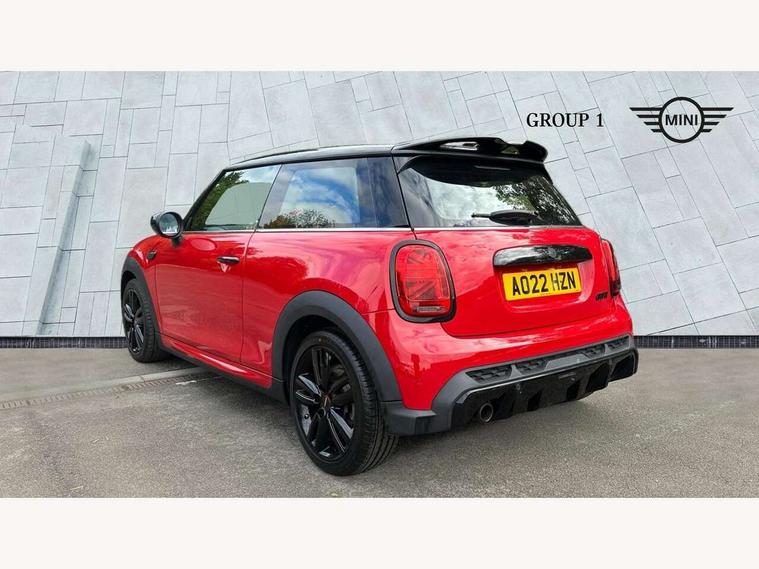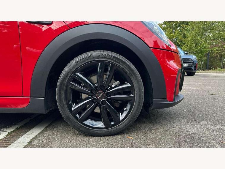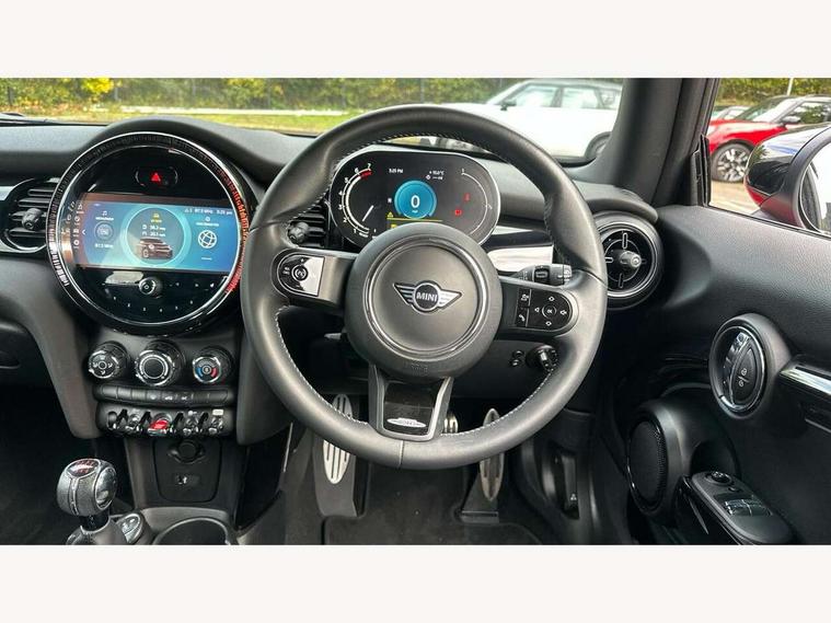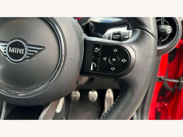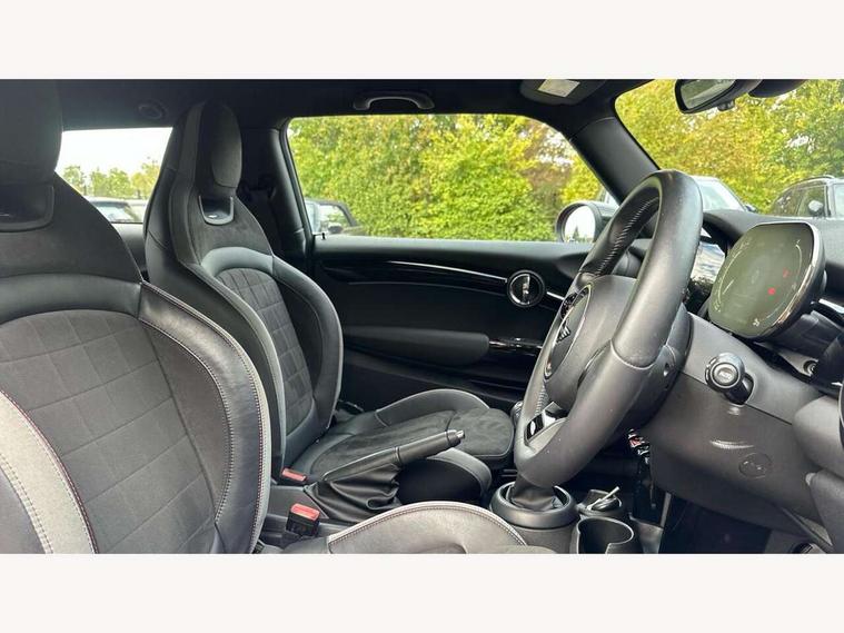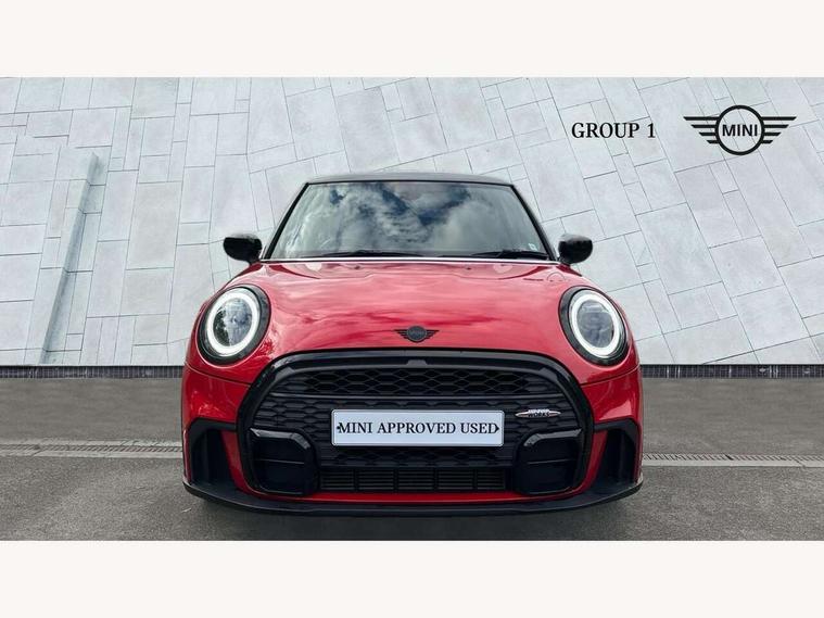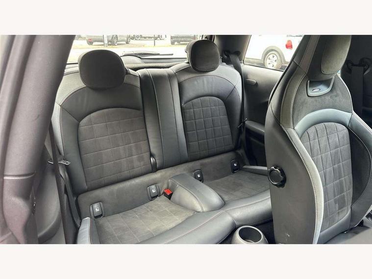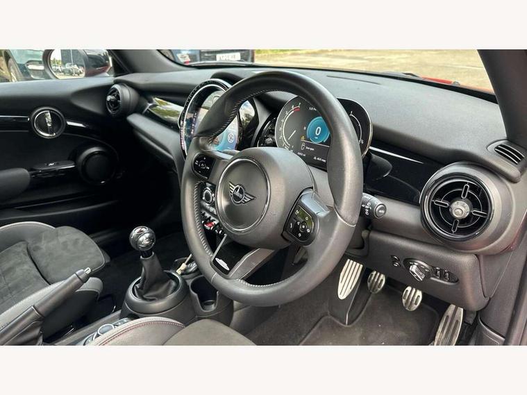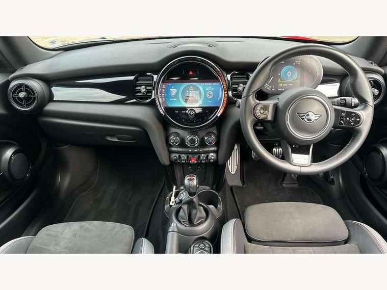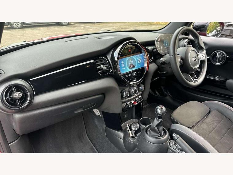 Apple CarPlay, Automatic start/stop function with brake energy recuperation, Compatible mobile phone bluetooth with audio streaming, Cruise control with brake assist, Electro-mechanical speed dependant steering assistance, Flexible car sharing preparation, Instrument cluster, MINI Driving Modes - centre toggle switch to control driving setting (sport, mid and green), Mini E-call, MINI TeleServices, On board computer, Rear park distance control, Service interval indicator, 6 Speed manual transmission including gear change indicator display, Double Vanos system, Fully variable valve control, High precision injection, Intelligent adaptive suspension, Performance Control, 8.8" touchscreen with LED ring, FM tuner and DAB digital radio, 3rd brake light, Automatic headlight activation switch, Body colour fuel filler cap, Chrome border high gloss black slats radiator grille, Dynamic brake lights, Electric front windows, Exhaust tailpipe on left with chrome finisher, Heated rear window, Heated windscreen washer jets, JCW Aerodynamic kit - Front and rear bumpers with sporty JCW styling and part-painted side sills with MINI John Cooper Works door sill finishers, John Cooper Works rear spoiler, LED headlight with closed ring and daytime driving lights, Metal door sill strips with MINI imprint, Model logo Cooper on right of tailgate, Rain sensor window wipers, Rear fog lights, Rear LED lights with union jack design, Rear window wiper, Side scuttle panel with integrated indicator, Sun/heat protection glass, White indicator lenses, 12V Accessory socket in centre console, 2 seat bench in 2nd row, 4 lashing eyes in luggage compartment, 60/40 split folding rear seat, Anthracite headliner including grab handles and clothes hooks, Carbon black colour line - Knee roll and door armrest, Chrome interior highlights, Cupholders, Front and rear isofix with front passenger airbag deactivation, Front floor mats in velour, Glove compartment, Height and length steering column adjustment, Interior lighting with 12 different colours across the dashboard, underneath door bezel with illuminated laser-engraved design on central display, JCW Sport seats with integrated headrests, adjustable thigh support and John Cooper Works logo, Leatherette gearshift lever and handbrake gaiters, LED reading lights, vanity mirror lights, front foot well light and spotlight on front seats, Manual air conditioning, Mechanical seat adjustment - forward/back & backrest for front seats and driver seat height adjust, Multifunction steering wheel, Passenger seat height adjuster, Single front passenger seat, Storage compartments in doors, Sunvisors with vanity mirrors, Walknappa leather steering wheel with grey seam and John Cooper Works badge on Piano Black lower steering wheel spoke, Piano black exterior pack - Mini Hatchback Cooper, 3 point seatbelts on all four seats, 6 Airbags - front, side, head and seat belt tensioners, Anti-lock braking system (ABS), DSC - Dynamic Stability Control, Front and rear disc brakes, Single tone fanfare horn, Tyre pressure monitoring system, Alarm system with tilt sensor, monitoring doors, bonnet interior and tailgate, Electronic vehicle immobiliser, Start/stop toggle with keyless go, Piano black interior trim, Tool kit,