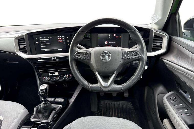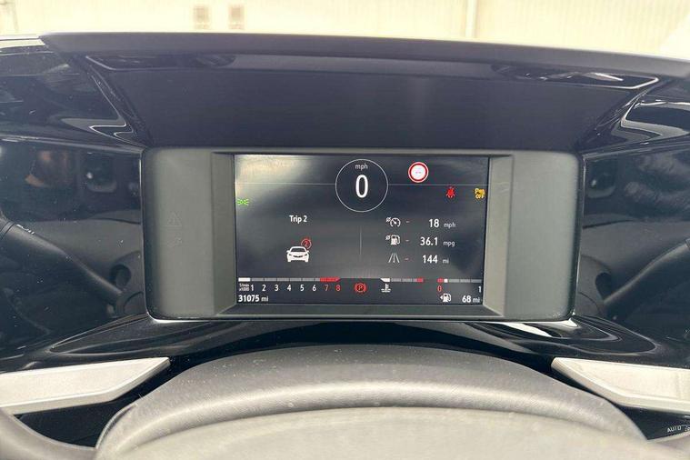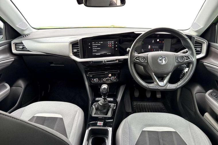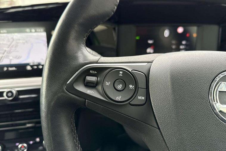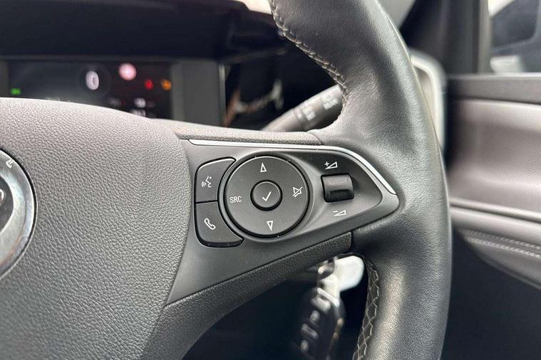 Automatic adaptive cruise control, Driver drowsiness alert system, Front camera system, Lane keep assist system (LAS) with Lane departure warning system (LDWS), Lights on audible warning, Multi function trip computer, Panoramic rear view camera, Power assisted speed sensitive steering, Rear parking distance sensors, Smartphone integration compatible with Apple CarPlay and Android Auto, Speed sign recognition, Start/stop system, Vauxhall connect with e-Call, 6 speed manual transmission, Chassis drive line front wheel drive, Electronic fuel system, Front chassis equipment, Rear chassis equipment, Standard chassis suspension system ride handling, Bluetooth A2DP audio streaming, Flexible Roof Mounted Radio Aerial, Front USB connection, Mobile phone portal - bluetooth connect, vehicle microphone, handsfree calls, SMS read out and reply, phone book access, Multimedia Navi infotainment with satellite nav, 7" colour touchscreen and instrument panel, 6 speakers, DAB digital radio, Apple carplay/Android auto, Steering wheel mounted controls, Two rear USB sockets, 3rd brake light, Adaptive brake lights, Automatic lighting control with tunnel detection, Automatically dimming anti dazzle rear view mirror, Black door mirror housings, Black rear spoiler, Body colour door handles, Body colour front and rear bumpers, Chrome effect skid plates, Chrome effect upper window moulding, Electrically adjustable and heated door mirrors, Electrically operated front and rear windows with safety auto reverse and one touch up/down facility, Hazard warning lights, Heated rear window+rear wash/wipe, High beam assist, LED daytime running lights, LED front fog lamps, LED side repeat indicators, LED tail lights, Manual headlamp level control, Rear foglight, Rear side wing doors, Rear wiper, Reversing light, Solar heat absorbing windscreen and windows, Two speed rain-sensitive windscreen wipers with variable intermittent wipe, Windscreen and side window demist vents, 12V Accessory socket, 3 seat bench in 2nd row, 3 spoke flat bottomed leather steering wheel with satin chrome bezel, 4 speed fan with illuminated controls, 6 way manual adjustable driver fore/aft, up/down with reclining seatback, 6 way manual adjustable front passenger fore/aft, up/down with reclining seatback, Air recirculation system, Cabin particulate filter - removes dust, airborne particles and pollen, Centre console with two cup holders at front and one in rear, Chrome effect interior door handles, Door pockets with two litre capacity, Driver and passenger seat pocket, Driver and passenger sun visors with vanity mirror, Electronic climate control (ECC), Fabric/leather upholstery with jet black fabric side bolsters, Four adjustable facia vents, Four load restraint lashing eyes, Front centre armrest with storage, Front map reading lights, Front seat back storage pockets, Fully carpeted load area, Heated front seats, Heated steering wheel, Height adjustable front/rear head restraints, Illuminated load area, Interior courtesy light, Interior tailgate handle, Luggage compartment cover, Luggage compartment lighting, Reach + rake adjustable steering column, Single front passenger seat, Twin gas assisted tailgate struts, 2x Isofix child seat fitting on outer rear seats, 3x3 point rear seat belts, Anti-lock braking system (ABS), Automatic emergency city braking, Child proof locks on rear doors, Cornering brake control, Deactivation switch for front passenger front and side impact airbags, Drag torque control, Driver and front passenger airbags, front seat side impact airbags, full size curtain airbags, Electronic brake force distribution, Electronic Stability Programme (ESP), Emergency brake assist, Forward collision alert at all speed, Hill start assist, Inertia reel lap and diagonal seatbelts for all seats, Seatbelt unfastened audible warning and warning light, Straight line stability control, Traction control, Tyre pressure monitoring system, Electronically protected audio equipment, Freewheeling door locks, Immobiliser, Key left in ignition audible warning, Locking wheel nuts, Remote control central locking, Visible vehicle identification number, Atlantis black trim inserts of front doors, Black facia with silver trim insert, Instrument panel bar in Light Gravel, 17" bi colour alloy wheels,