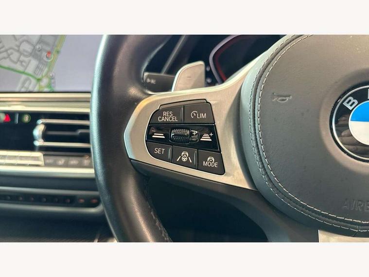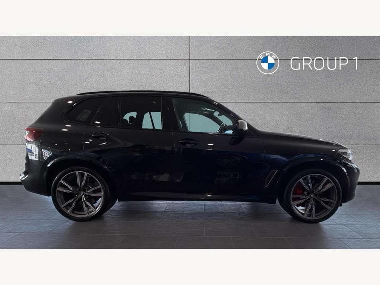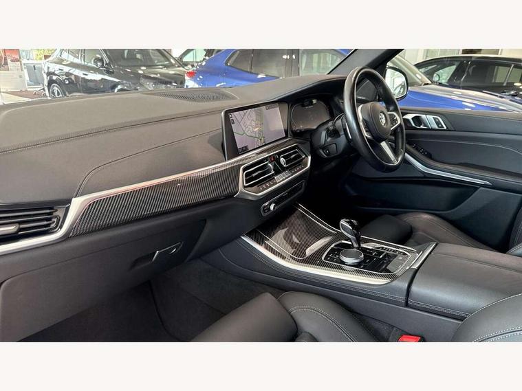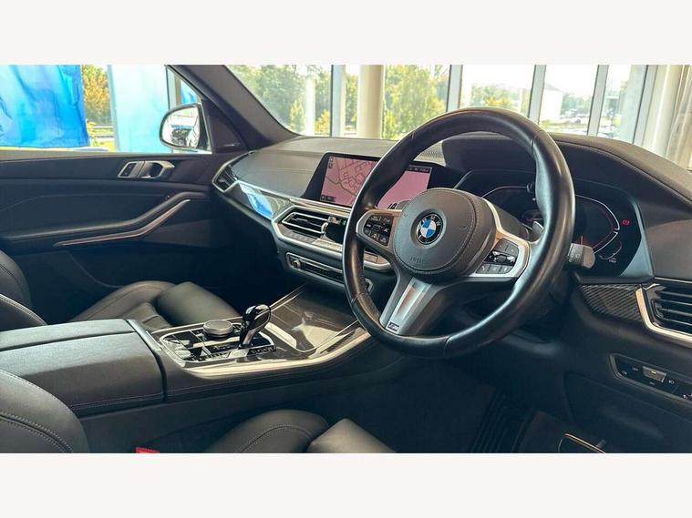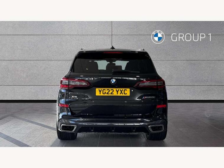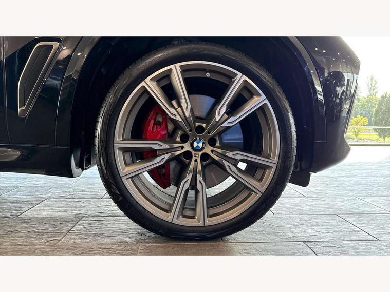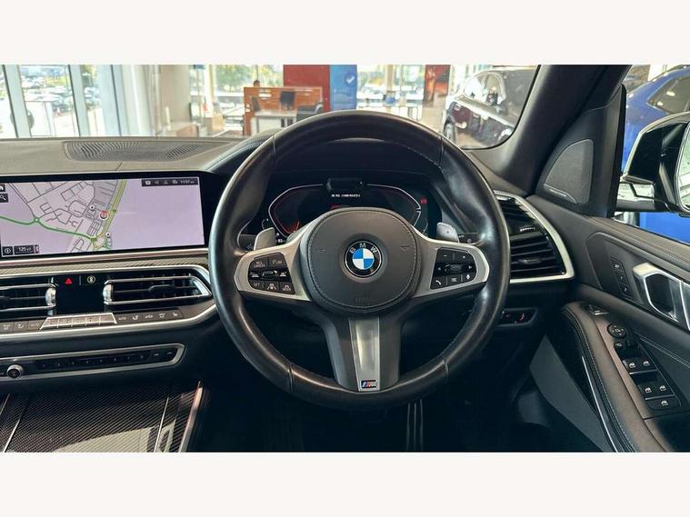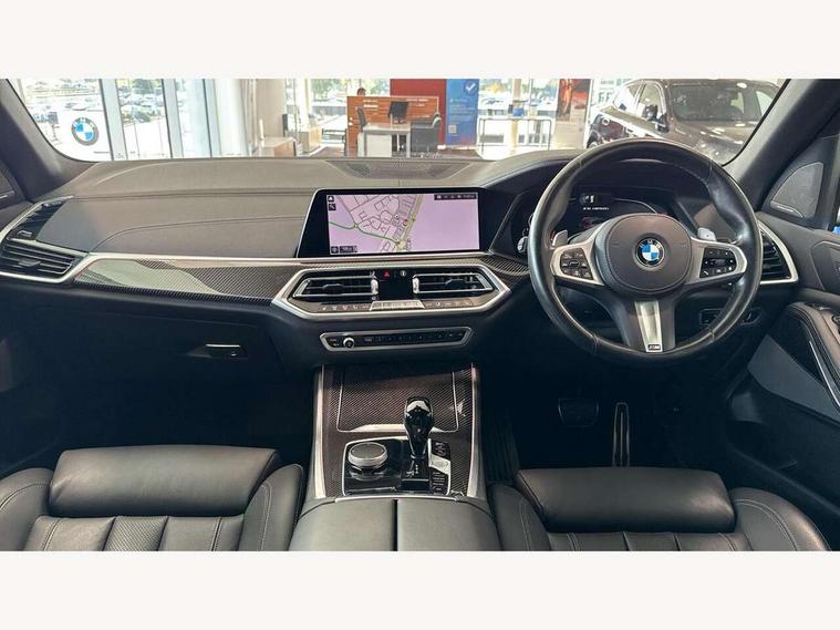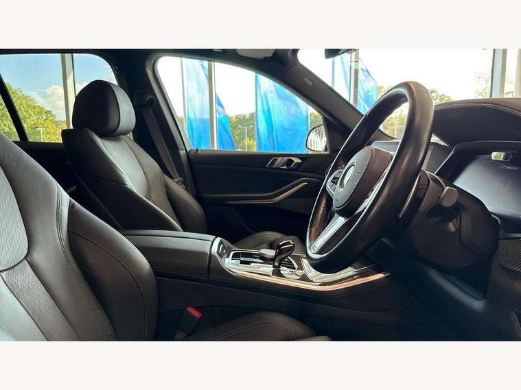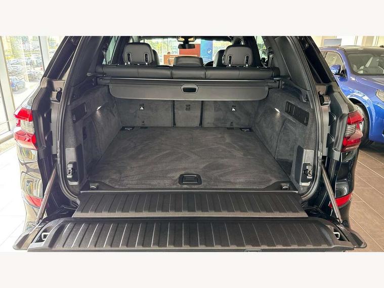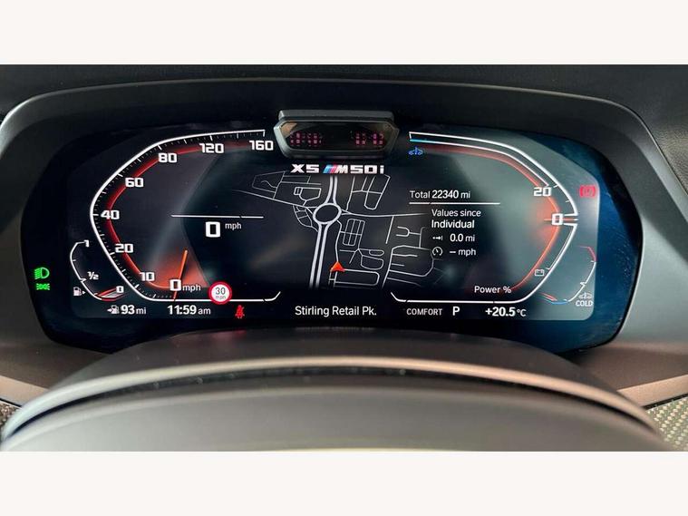 20GB hard disc drive (HDD) memory, Active guard plus, Attentiveness assist, Automatic tailgate with top hinged section open and manual bottom hinged section, BMW ConnectedDrive online services, BMW digital live cockpit professional - 12.3" digital instrument panel and 12.3" CID, with touch/voice command, BMW legal emergency call, BMW Teleservices, Brake force display, Brake pad wear indicator warning light, Enhanced bluetooth with wireless charging, Front/rear park distance control, iDrive controller with shortcut buttons, Lights on warning, Oil sensor for level and grade, On board computer inc. average speed, fuel consumption, liquid crystal Info display, journey computer, outside temperature display, personal profile, Service interval indicator, Wi-Fi hotspot, Double VANOS, Double wishbone front axle, Drive performance control with ECO PRO comfort + sport mode, Eight speed steptronic sport automatic transmission and gearshift paddles on the steering wheel, High precision injection, M Sport differential, Petrol Particulate Filter, Safety battery terminal clamp, Twin scroll turbocharger with Valvetronic, DAB Tuner enables digital radio reception, Favourite buttons, USB connection, USB type A 1.5A in cupholder, USB Type C 3A in centre armrest, Adaptive air flap control bar in high-gloss black, Automatically dimming rear view mirror, BMW Individual high gloss black shadow line roof rails, BMW Individual high gloss shadow line, Body colour bumpers, Body colour door handles, Cerium grey kidney grille, Cerium grey M badge on left and right side panels, Cerium grey M50i badge on right tailgate, Cerium grey side gill, Dynamic brake lights with LED technology, Exhaust tailpipes - single, left and right in Cerium Grey, Follow me home headlight function, Front and rear electric windows with open and close fingertip control, anti trap facility and comfort closing, Heated windscreen washer jets, High beam assistant, High gloss black outer and central air intakes on front bumper with pearlescent chrome finish, High gloss black Side elements, LED daytime running lights, LED rear lights, M aerodynamic body styling, M Sport exhaust system, Rain sensor with automatic headlight activation and windscreen wiper control, Rear side wing doors, Satin aluminium side window graphic, Sun protection glazing, Third brake light in rear spoiler, Variable intermittent rear wash/wipe, Welcome light carpet, X5 on left tailgate, xDrive designation on right tailgate, 12V - Power sockets with 2x centre console and 1x luggage compartment, 3 seat bench in 2nd row, 40:20:40 split folding rear seats, Ambient interior lighting with 6 pre-designed selectable lights including dynamic function, Centre and rear interior light, Child seat ISOFIX attachment with rear outer seats includes top tether, Compartment in front of cupholder, Electric front seat adjustment with driver and front passenger memory function, Electrical steering column with adjustable height and length with activation and control on the steering column, Foldable rear centre armrest with 2 cupholders and storage compartment, Front and rear cupholders x 2, Front and rear door pockets, Front and rear door sill finishers with illuminated M50i designation, Front and rear side armrest integrated into door trim, Front footwell lights, Front reading lights, Light inside glove compartment, Lockable glove compartment, Luggage compartment floor panel with integral storage tray, Luggage compartment lighting, M leather steering wheel, M specific key, M specific pedals, M specific steering wheel, Make-up mirror lights, Multifunction controls for leather steering wheel, Multifunctional hooks, Rear head restraints, Seat back with flap pocket, Securing rings in luggage compartment, Single front passenger seat, Storage bins on all doors, Storage tray and compartment with cover in centre console, Sunvisors with illuminated vanity mirrors, Toolkit located in luggage compartment, Velour floormats, Connected Package Professional - X5, Expanded exterior mirror pack - X5/X5 M, Non-smokers pack - X5, Active protection, Airbags - driver/front passenger, rear and side, first and second row seats head airbags, front passenger seat airbag deactivation + knee airbag, Anti-lock braking system (ABS), Automatic Stability Control (ASC), Brake drying, Brake energy regeneration, Brake fade compensation, Braking pre-tensioning, Cornering brake control (CBC), Crash sensor activating central locking release, hazard warning lights, fuel cut off, interior lighting + activation of safety battery terminal clamp, Deformation zones - front and rear with door reinforcements and bumpers up to 2.5 mph, DSC - Dynamic Stability Control, Dynamic brake control, Dynamic Traction Control - DTC, Electromechanical parking brake with automatic drive away release and auto hold function, Electronic brake force distribution, Front and rear seatbelts with seatbelt stopper, seatbelt tensioner for front and outer rear seats and belt force limiter, Front head restraints with anti-whiplash, Height adjustable front seatbelts, Hill start assistant, Integrated brake system, M sport seatbelt, Mechanical child proof lock on rear doors, Passive protection for pedestrians, Seat occupancy detection for driver and passenger side, Side impact protection, Three 3 point inertia reel seatbelts, Two tone horn, Tyre pressure monitoring system, Ventilated front and rear disc brakes, Warning triangle and first aid kit, Closing system with central locking, Driver and front passenger door centre lock switch, Locking wheel bolts, Thatcham 1 alarm system with remote control and engine immobiliser, Start/stop toggle diamond shaped trim finisher in pearl chrome, Tyre repair kit,