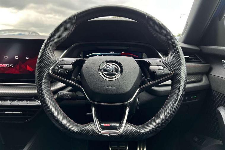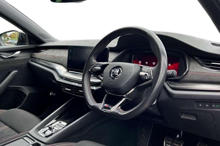1x USB Type C port in rear view mirror (charging only), 2x USB Type C ports in rear of front centre armrest (charging only), Bluetooth system, Columbus satellite navigation with 10" touchscreen display, Driver fatigue sensor, eCall emergency system, Front and rear parking sensors with manoeuvre assist, Front assist system, Progressive dynamic steering, Speed limiter, Turn Assist, Virtual Cockpit - 10.25" digital display, Virtual pedal with electrically operated boot door (Rear LED lights (high functionality), dynamic indicators, Voice control system, Wireless SmartLink for Apple Car Play, Front and rear stabilizers, 2x USB Type C ports (for charging and data transfer), 8 Speakers, DAB Digital radio, Aero front windscreen wipers with intermittent function, Auto dimming rear view mirror, Body colour door handles, Chrome exhaust tailpipes, Door sills with vRS logo, Electric front and rear windows, Exterior gloss black sports styling including front grille, side strip, window surrounds, door mirror and badging, Full LED Matrix headlights with AFS, rear LED lights (high functionality) and dynamic indicators and cornering front fog lights, Headlight washers, Heated rear windscreen, High level third brake light, Ice scraper in fuel cap, LED daytime running lights, Rain and light sensors, Rear fog light on one side, Rear privacy glass, Rear side wing doors, vRS bumpers and lip spoiler, 3 rear headrests, 3 seat bench in 2nd row, 4 foldable roof handles, Aluminium pedals, Black headlining, Black microsuede padded dash panel with red contrast stitching, Chrome inner door handles, Front centre armrest, Front head restraints, Heated front seats, Illuminated glovebox, Leather trimmed gearshift lever, Luggage compartment lighting x1 light, Mechanical rear seat release, Parcel shelf - folding, Single front passenger seat, Sunglasses storage, Textile floor mat set, Three spoke leather sports multifunction steering wheel with paddles, Ticket holder, Umbrella in door panel, Unsplit rear bench seat and split folding backrest, LED interior light pack - Octavia, 3 point front/outer rear seatbelts+pre-tensioners, Alarm with interior monitoring, tilt sensor and back up horn, Automatic door unlocking in case of crash, Automatic fuel cut off in case of crash, Automatic warning lights in case of emergency braking, Curtain airbags and front side airbags, Driver and front passenger airbags, Drivers knee airbag, Electronic parking brake, ESC including ABS, EBV, MSR, ASR, EDS, HBA, DSR, Front and rear disc brakes, Front central airbag, Hill hold control, Hill start assist, ISOFIX on front passenger seat and outer rear seats, Manual rear child locks, Passenger airbag deactivate switch, Pro active services, Red brake calipers, Two tone horn, Tyre pressure monitor, Visual and acoustic seat belt reminder, Warning reflectors in front door, Door locks with immobiliser, Keyless entry and start/stop including rear doors, Remote central locking, Carbon optic decorative inserts, Gloss black air vent surrounds, 19" Altair anthracite alloy wheels,