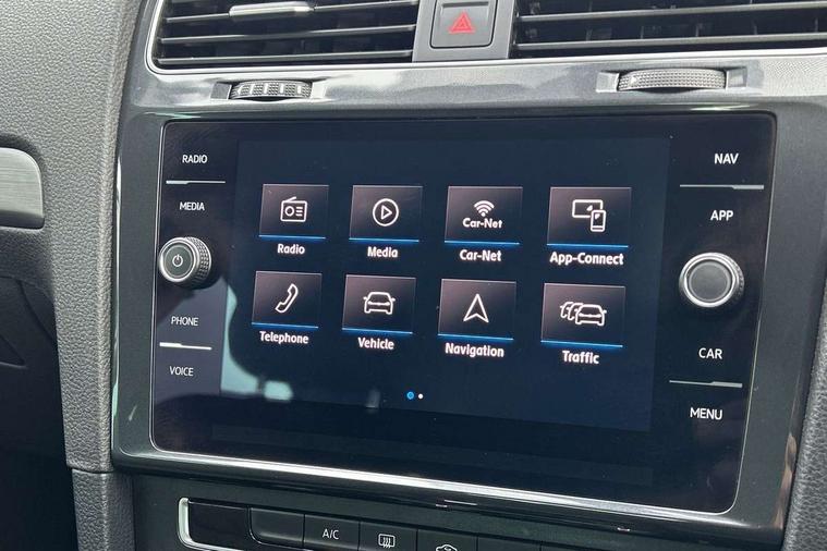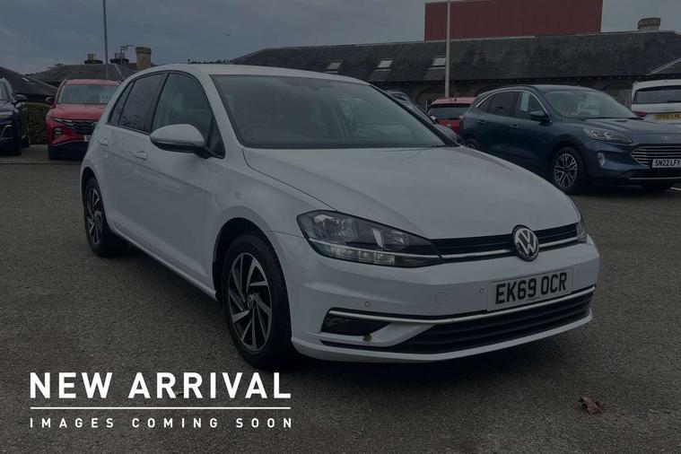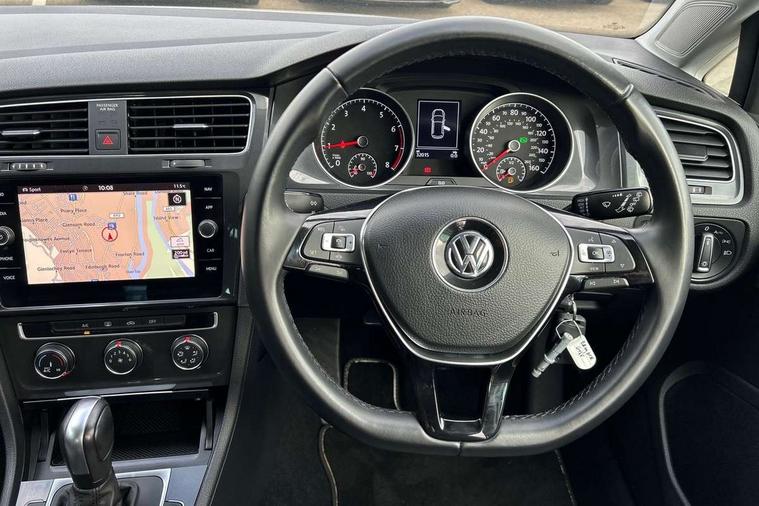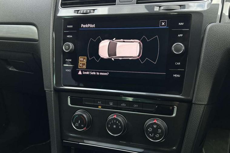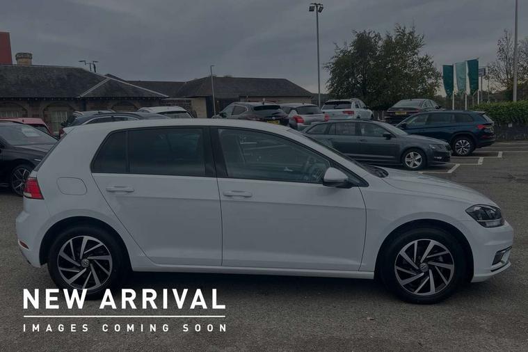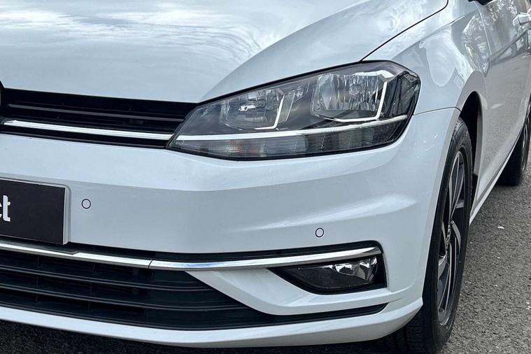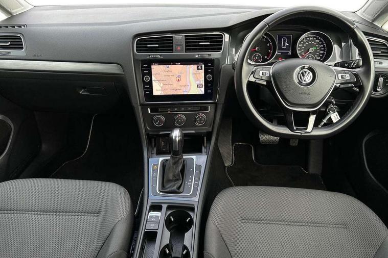 'Lights On' Reminder warning buzzer, ACC - Adaptive cruise control with front assist, forward collision warning, distance monitoring, city emergency brake and speed limiter, Bluetooth telephone and audio connection for compatible devices, Brake pad wear indicator warning light, Driver alert system, Driving Mode Selection with four preset modes - Eco, normal, sport or individual modes, Instrument cluster in white, Multifunction computer with visual gear change recommendation for fuel consumption, Power assisted speed sensitive electro-mechanical steering, Push tank flap, Speed limit display, Speedo, rev counter, electronic odometer, trip, service interval display, exterior temperature and fuel gauge, Stop/start system, Think blue trainer driver tips and journey analysis, Warning buzzer and light for front seatbelts unfastened, We Connect Go Dongle, Battery regeneration during braking, XDS electronic differential lock, Composition media system, DAB Digital radio receiver, Driver Personalisation profile selection, MP3/WMA compatability, Multi device interface (MDI) with USB connection, Personalisation 1.1 profile for media, Premium USB cable in choice of either Apple or Android smartphone compatibility, SMS Functionality, Title and cover art display, 4 X 20W output, USB connection and socket, USB and SD card connectivity, Auto dimming rear view mirror, Black front air intake and radiator grille with chrome insert, Black rear diffuser, Body colour bumpers, Body colour door handles, Body colour door mirrors with integrated indicators, Dusk sensor + automatic driving lights, Electric front windows, Electric rear windows, Electrically adjustable and heated door mirrors, Fully galvanised body, Heated rear windscreen, Hidden exhaust pipe, High level 3rd brake light incorporating LED Technology, LED front fog lights with static cornering light function, Range adjustable headlights via infotainment system with LED daytime running lights, Rear fog lamp, Rear number plate lights incorporating LED technology, Rear tinted glass 65% light absorbing from B pillar backwards, Rear window aerial, Rear window wash/wipe with intermittent wipe, Reflectors in all doors, Remote electrically foldable door mirrors, door mirror puddle lights and reverse activated kerb-view adjustment on passengers door mirror, Tailgate with integrated rear roof spoiler, Windscreen wipers/ intermittent wipe + 4 position delay, 12V socket in luggage compartment, 3 rear headrests, 4 load lashing points in luggage compartment, 60/40 split folding rear seat backrest, Auto fold down lever in rear seat backrest, Bag hook in luggage compartment x 2, Black decorative sleeve on gear handles, Cooled glovebox, Cover for storage compartment in centre, Cupholder cover, Dust/pollen filter, Front and rear reading lights X 2, Front centre armrest with storage compartment and two rear air vents, Front seat back storage pockets, Grab handles front x 2, rear x 2 with integrated coat hooks, Height and reach adjustable steering wheel, Illuminated vanity mirrors, Instrument lighting white adjustable panel illumination, Interior light delay, Isofix preparation for 2 rear child seats, Load through provision with rear centre armrest and cupholders x2, Luggage compartment lighting, Overhead storage box, Passenger underseat drawer, Pearl grey headlining, Storage box in luggage compartment, Storage compartment in roof console with cover, Storage compartments in centre console, Storage compartments in front doors, Storage compartments in rear doors, Stowable luggage compartment cover, Sun visors, Variable boot floor, height adjustable and removable, Convenience Pack - Golf, Light and Sight pack - Golf, Mirror pack - Golf, 3 rear three point seatbelts, Airbags - Driver's and front passenger's, curtain airbag, Driver's knee, front side impact and passenger's airbag deactivation switch, Anti-lock Braking System (ABS) with Hydraulic Brake Assist (HBA), Automatic post collision braking system, Child locks on rear doors, Driver/Passenger optimised head restraints, Electronic parking brake with auto hold, Electronic stability control (ESC) including Electronic differential lock (EDL) and ASR (Traction control) with deactivation via infotainment system, Front ventilated disc brakes and rear disc brakes, Pre crash preventive occupant protection, Three point height adjustable front seatbelts with tensioners, Tyre pressure loss indicator, Alarm with interior protection and deactivation via infotainment system, Electronic engine immobiliser, Brushed dark silver decorative inserts in dash and door panels, Chrome plated air vent surround, Chrome-plated light switch surround, Polar night black decorative inserts in centre console, Steel space saver spare wheel,
