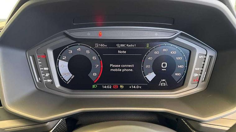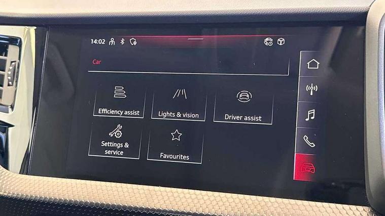 10.25" Digital instrument cluster display classis style instrument dials + speed, odometer, time, outside temperature, telephone menu + fuel level warning, Audi smartphone interface with connect compatible smartphone via USB directly MMI display + Nav, music, third party apps controlled via MMI controller, Automatic start/stop system, Bluetooth interface, Driver's information system, Electromechanical power steering, Emergency e-call, Emergency services call system, Lane departure warning system, Service interval indicator, Speed limiter, Voice control system, Washer fluid level indicator, Dynamic suspension, 1 x SDXC card reader, 2 x USB type C connection points, 6 passive loudspeakers, DAB Digital radio, MMI radio plus with 8.8" colour MMI display screen and MMI touch, Auto dimming rear view mirror, Body coloured bumpers, Body coloured door mirrors, Electric front and rear windows, Electrically adjustable, heated, folding door mirrors with integrated LED side indicator, Front side air inlets with front spoiler lip and rear diffuser in matt black grained, Heat insulating glass windscreen and side windows, Heated rear windscreen, High level LED brake light, LED headlights with LED rear lights + dynamic rear indicators + headlight adjustment and high beam, turning light + LED daytime running lights, Radiator grille in matt black, Rain and light sensors, Rear fog lights, Rear side wing doors, Rear wing door, Rear wiper, 12V socket in centre console with two cup holders, 3 rear seats with headrests, 3 seat bench in 2nd row, 3 spoke leather multifunction plus steering wheel, 40:60 Split folding rear seat or folded fully, Air vents, door handle recesses and centre console in black, Delta cloth upholstery, Driver and passenger seat with manual height adjust with forward and backwards adjustment, Front head restraints, Front passenger seat, Front/rear floor mats, Height and reach adjustable steering wheel, ISOFIX child seat mounting for front passenger and outer rear seats including top tether attachment point of outer rear seats, Leather gear knob with aluminium trim, Leatherette handbrake grip, Luggage compartment light with front and rear reading lights, Manual air conditioning, Titanium grey cloth headlining, Luggage compartment pack - A1, 3x3 point rear seatbelts, Audi pre-sense front with pedestrain and cyclist recognition, Brake assist function, Driver and front passenger airbag with front side and head airbags, Electronic Stability Control including ABS, EBD, ASR and EDL, Front passenger airbag deactivation switch, Hill hold assist, Manual rear child locks, Seatbelt height adjustment for front seats, Seatbelt monitoring, Tyre pressure warning light, Warning triangle and first aid kit, Anti theft alarm, Anti theft wheel bolts and loose wheel warning, Immobiliser, Remote central locking with 2 foldaway keys, Black inlays polygon structure, 15" 5 arm design alloy wheels,