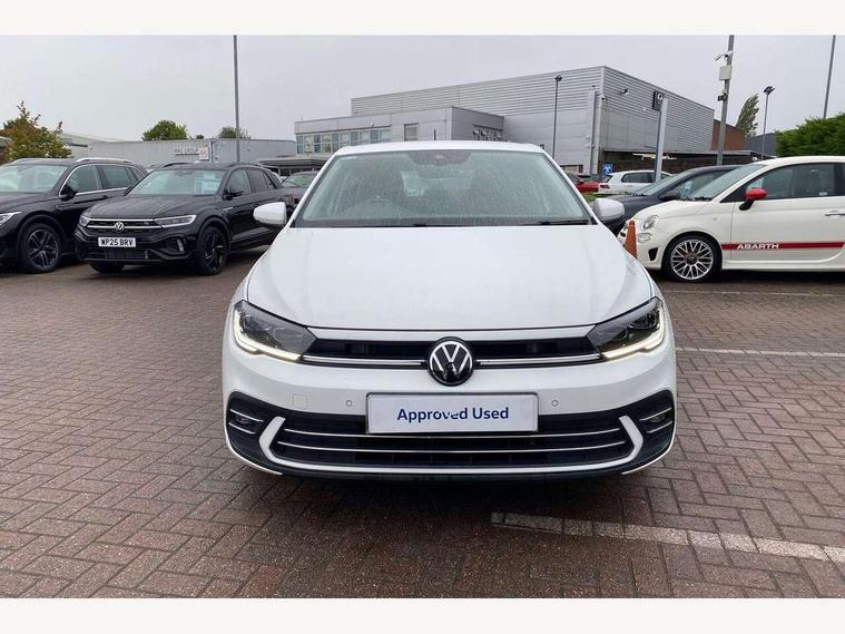 Adaptive cruise control without follow-to-stop and speed limiter, Bluetooth mobile phone interface, Digital Cockpit Pro with 10.25" Display, Driver alert system, Dynamic road sign display, Emergency call service, Power assisted speed sensitive steering, Preparation for We connect and We connect plus, Speedo and rev counter, electronic odometer, trip, service interval display and fuel gauge, Standard rear axle, Travel Assist - Lane keeping system and traffic jam assist, Travel assist including emergency assist, Trip computer, Warning signal and warning light for front and rear seatbelts not fastened, Washer fluid level indicator, Wireless app connect, Front wheel drive, Rear shock absorpion, Start-stop system with battery regeneration (recuperation - energy recovery during braking), DAB Digital radio, Diversity antenna for FM reception, Front and rear 6 speakers, Automatic dimming interior rear view mirror, Automatic headlights, Body colour door handles, Body coloured bumpers and radiator grille with chrome trims, Electric front windows, Heat insulating darkened glass in side and rear windows, Heat insulating glass windscreen, LED separate daytime running lights with coming/leaving home function, Power folding adjustable/heated exterior mirrors and front passenger exterior mirror lowering function, Rain sensor, Rear electric windows, Rear fog light, Rear side wing doors, Rear windscreen washer and wiper with interval delay, Third brake light, 12V power socket in centre console, 2 USB-C ports in the front, 2 USB-C charging sockets on the center console in the rear, 3 rear head restraints, 60/40 split folding rear seat and rear seat bench not split, Air care climatronic air conditoning system with active combination filter and 2-zone temperature control, Ambient lighting, Ceramique headliner, Chrome plated radiator grille inserts, air vent surrounds and light switch surrounds, Door and side trim panel, Driver and front passenger seat height adjustment, Driver/passenger sunvisors with illuminated vanity mirrors, Front + rear carpet mats, Front centre armrest, Front footwell illumination, Front seat backrest storage pockets, Front sports comfort seats, Handbrake lever handle in leather, Isofix child seat preparation easy-fit (for two outer rear seats, and front passenger seat) compatible with I-size, Leather trimmed gear knob, LED interior light with switch off delay and dimmer, 2 reading lights front and rear, Luggage compartment cover, Luggage compartment floor, Luggage compartment lighting, Lumbar adjustment for front seats, Multifunction steering wheel, Single front passenger seat, Standard pedal cluster, IQ LED matrix headlights pack - Polo, Light and vision pack - Polo, 3 point height adj front seatbelts + pretensioners, 3x3 point rear seatbelts, ABS, Driver and front passenger airbag with front passenger airbag deactivation, Drivers and front passengers safety optimised head restraints, ESC (Electronic stability control) + EDL (Electronic Differntial lock) and ASR (Traction control), Extended and predictive pedestrian/ cyclist protection, Front curtain and side airbags with center airbag, Front disc brakes, Hill hold control, Manual child lock in rear doors, Rear drum brakes, Single tone horn, Tyre pressure loss indicator, Alarm with interior protection, Anti-theft alarm system with interior monitoring, backup horn, and towing protection, Anti-theft wheel bolts, Electronic engine immobiliser, Chrome applications on rotary light, mirror adjustment, window regulator switches, outlet with frame in black, Deep iron gloss decorative inserts in dash and front door panels, Low rolling resistance tyres,