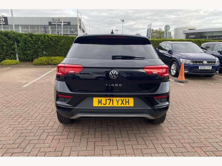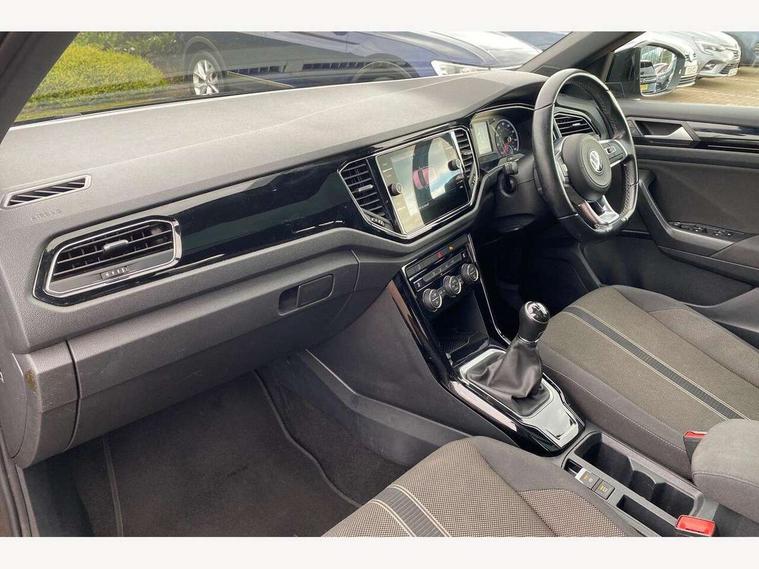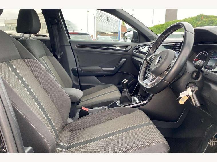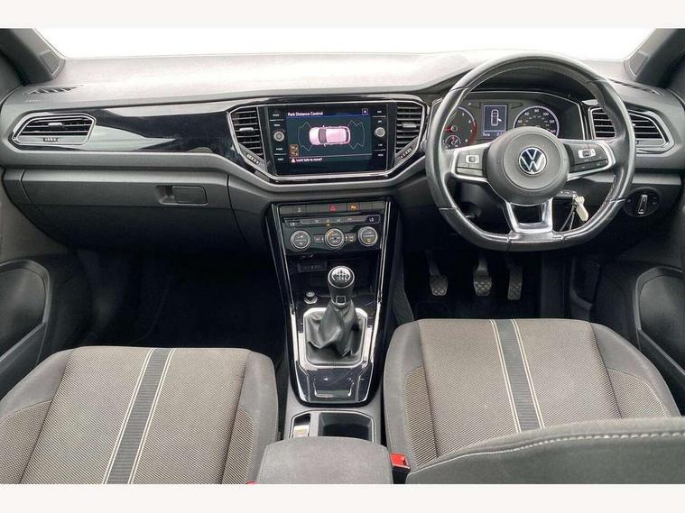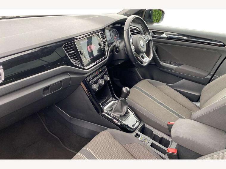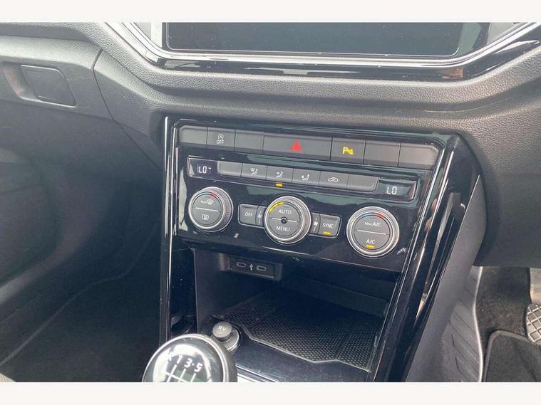 'Lights On' Reminder warning buzzer, Adaptive cruise control, Bluetooth telephone and audio connection for compatible devices, Car information display, Driver tips and journey analysis, Emergency call service, Lane assist with warning text instrument cluster, Modified key software - reduce switch off time for key status change to Long no motion, Multifunction camera, Multifunction computer with visual gear change recommendation for fuel consumption, Service interval indicator, Think blue trainer driver tips and journey analysis, Warning sound and light for doors and tailgate open, Warning sound and light for front seatbelts unfastened, Wireless app connect for apple carPlay, Battery regeneration during braking, Start/stop function with battery regeneration, DAB Digital radio, Diversity antenna for FM reception, Multi device interface (MDI) with USB connection, Music playback - MP3, WMA and AAC files, Premium USB cable in choice of either Apple or Android smartphone compatibility, SD card slot, Simultaneous pairing of 2 compatible mobile devices, Single CD player, glovebox mounted, SMS functionality - read, compose and send SMS messages using touch-screen display, Storage compartment with longitudinal and height adjustable in armrest and two rear air vents, Title and cover art display, USB-C Interface and USB charging socket, Auto dimming interior rear view mirror, Automatic coming/leaving home lighting function and daytime running lights, Automatic hazard lights activation under emergency braking, Black grained lower door protectors, Black grained wheel arches, Black roof rails, Body colour door handles, Body colour sports bumpers with silver metallic underbody fascia, Body coloured bumpers and radiator grille with chrome trim and front fog lamps with chrome bezel, Chrome trim on upper and lower radiator grille, Dusk sensor, Electrically foldable, adjustable and heated door mirrors with puddle lights and reverse activated kerb-view adjustment on passenger's door mirror, Exhaust tailpipes in black, External USB type C socket and charging sockets, Front and rear electric windows, Front windscreen wiper with intermittent wipe and 4 position delay, Fully galvanised body, Heated rear window, High level 3rd brake light, LED headlamps with automatic range adjustment and unique signature LED separate daytime running lights, LED rear number plate lights, LED tail lamp rear comination lamps, Privacy glass, Rain sensor, Rear tinted glass from B-pillar backwards approx 65% tinted, Rear wash/wipe with intermittent wipe setting, Trim strips on grille and vehicle side, Volkswagen roundel, 12V socket in centre console storage area, 3 rear head restraints, 4 load lashing points in luggage compartment, Black roof lining, Climate control - 2 zone electronic air conditioning with automatic air recirculation and allergy filter, Door and side trim panel, Drawer under drivers seat, Front centre armrest, Front cupholders x 2, Front seat back storage pockets, Glovebox, Height adjustable front seats, Height/reach adjust steering wheel, Instrument lighting, white adjustable panel illumination, Interior light in footwell, Isofix easy fit child seat preparation for 2 outer rear seats, LED interior light with switch off delay/dimmer and 2 front/rear LED reading lights, Load through provision with single cup holder when folded down, Luggage compartment cover, removable, Luggage compartment lighting, Split folding rear seat backrests with centre armrest, Storage compartment in left and right luggage area, Storage compartment in rear doors, Storage compartments in driver and front passenger doors, Sunvisors with illuminated vanity mirrors, Three spoke multi-function leather trimmed steering wheel and gearknob, White ambient lighting, Black decal on C-pillar pack - T-Roc, 3 rear three point seatbelts, ABS, Curtain airbags, Driver and front passenger safety-optimised head restraints, Drivers and front passengers airbags with passengers deactivation switch, Drivers seatbelt reminder, Electronic parking brake with auto hold, Electronic stability control (ESC) includes ASR, EDL, EDTC and trailer stabilisation function, Front assist with city emergency braking and pedestrian monitoring, Front seat side impact airbags, Predictive pedestrian protection, Rigid safety cell with front and rear crumple zones, Single tone horn, Three point height adjust front seatbelts + pretensioners, Tyre pressure loss indicator, Ventilated front and rear disc brakes, Volkswagen roadside assistance, Alarm with remote central locking and interior protection, Electronic engine immobiliser, Remote central locking with SAFELOCK, radio remote control with 2 remote control folding keys, Black decorative trims, Piano black decorative inserts in dash, centre console and door panel, 18" Arlo black diamond turned surface alloy wheels with low rolling resistance tyres and anti theft wheel bolts,