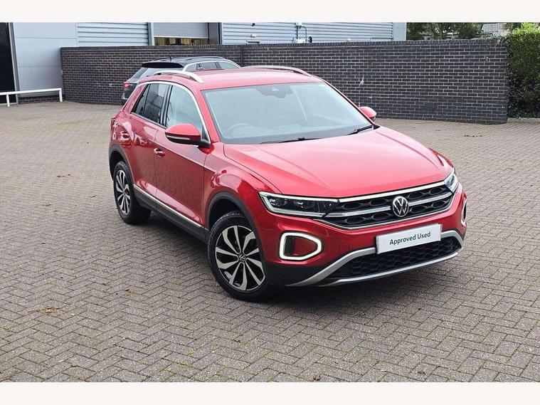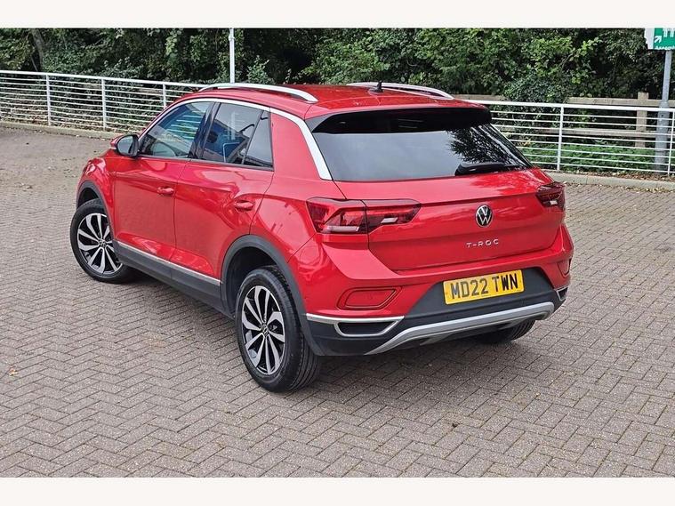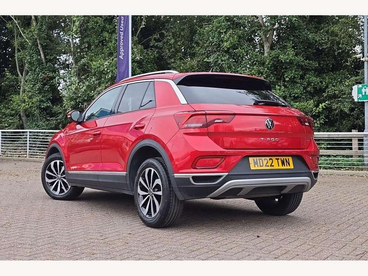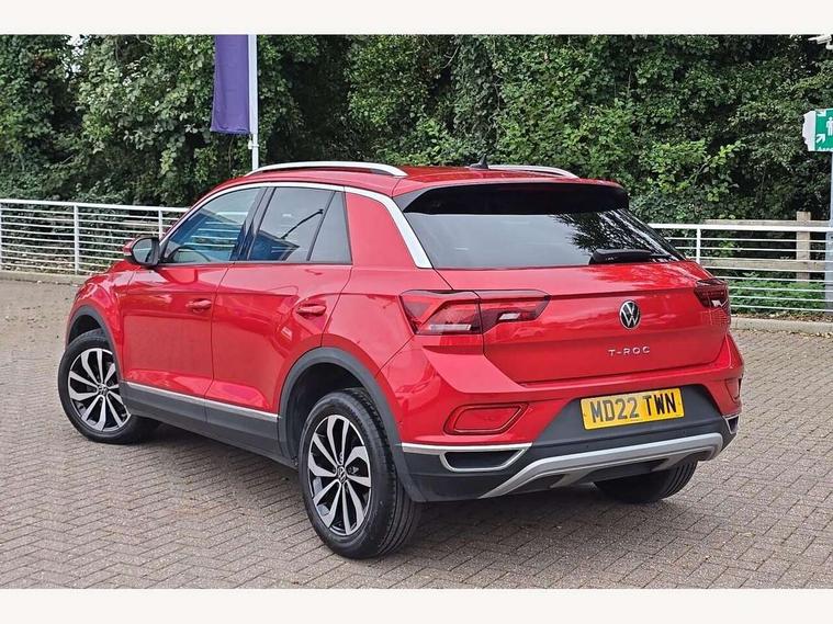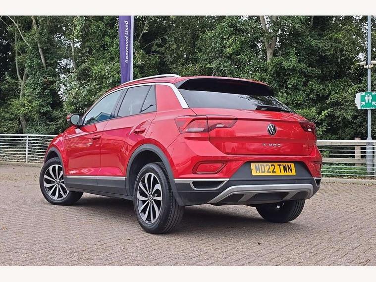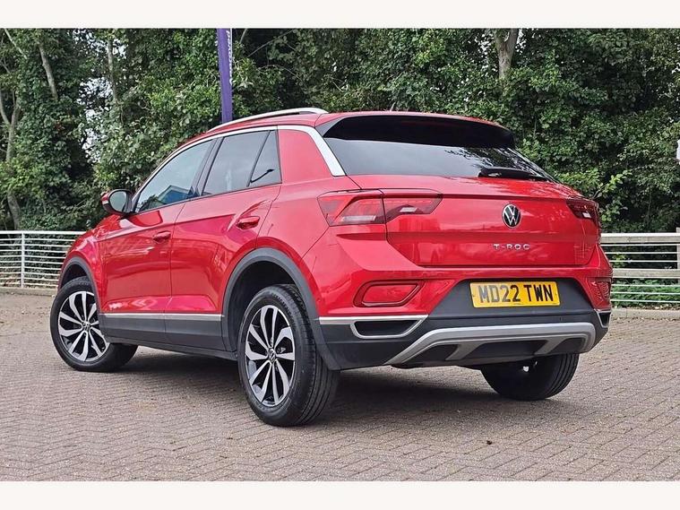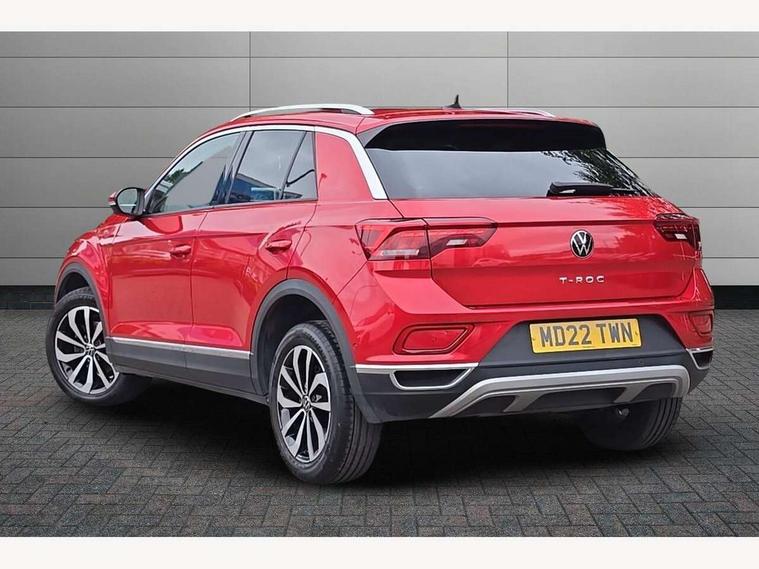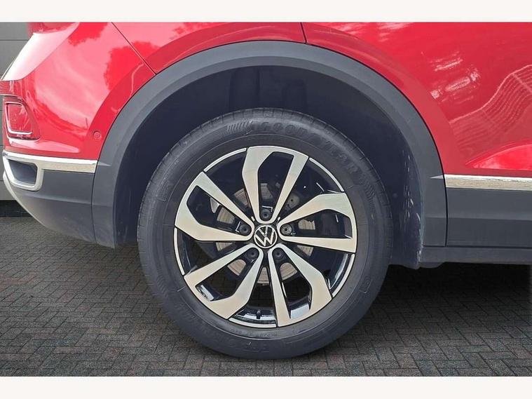 10.25" Digital cockpit pro, Bluetooth mobile phone interface, Driver alert system with fatigue detection, Driver tips and journey analysis, Dynamic road sign display, Emergency call service, Lane keeping system Lane Assist, Modified key software - reduce switch off time for key status change to Long no motion, Online services, Park assist including front and rear parking sensors, Power assisted speed sensitive steering, Service interval indicator, Tailgate/trunk lid release from outside, Think blue trainer driver tips and journey analysis, Warning sound and light for front seatbelts unfastened, Wireless app connect, Battery regeneration during braking, Front shock absorption, Rear shock absorption chassis with increased ride height, Start/stop function with battery regeneration, Diversity antenna for FM reception, Front and rear 6 speakers, Music playback - MP3, WMA and AAC files, Premium USB cable in choice of either Apple or Android smartphone compatibility, SD card slot, Simultaneous pairing of 2 compatible mobile devices, Title and cover art display, We Connect and We Connect Plus functionality, 3rd brake light, Auto dimming interior rear view mirror, Automatic hazard lights activation under emergency braking, Automatic headlight control with LED separate daytime running lights with coming/leaving home function, Body colour sports bumpers with silver metallic underbody fascia, Dynamic headlight range control with self adjusting whilst driving, Extended roof spoiler, Exterior mirrors aspherical on driver side, convex on front passenger side, External USB type C socket and charging sockets, Front windscreen wiper with intermittent wipe and 4 position delay, Heated rear window, LED Plus headlamps, LED rear combination lamps, LED rear number plate lights, LED tail lamp rear comination lamps, Light mode for poor weather, rain, fog or snow, Power windows with comfort operation and circuit breaker, Rain sensor, Rear exhaust tailpipe, Rear fog light on one side and reversing lights on both sides, Rear side wing doors, Rear wash/wipe with intermittent wipe setting, Remote electrically foldable door mirrors, puddle lights and reverse activated passenger's door mirror, 12V power socket in centre console, 3 rear head restraints, 3 seat bench in 2nd row, 4 load lashing points in luggage compartment, Air care climatronic air conditoning system with active combination filter and 2-zone temperature control, Chrome plated radiator grille inserts, air vent surrounds and light switch surrounds, Door and side trim panel with leatherette insert, Drawer under drivers seat, Front + rear carpet mats, Front centre armrest, Front comfort sports seats, Front cupholders x 2, Front footwell illumination, Instrument lighting, white adjustable panel illumination, Interior ambient lighting and surround lighting, Interior light delay, Isofix child seat preparation, Leather gearshift handle, LED interior light with switch off delay/dimmer and 2 front/rear LED reading lights, Load-through provision with cup holder when folded down ('Unsplit rear seat bench, split folding backrest, with centre armrest), Luggage compartment lighting, Non-folding front passenger seat backrest, Single front passenger seat, Storage compartment in left and right luggage area, Storage compartment in rear doors, Storage compartments in driver and front passenger doors, Sunvisors with illuminated vanity mirrors, Variable boot floor, height adjustable and removable, Driver assistance pack without proactive passenger protection - T-Roc, 3 point height adj front seatbelts + pretensioners, 3 point seatbelts in outer rear with ECE label, ABS, Child locks on rear doors, Driver and front passenger airbag with front passenger airbag deactivation, Driver and front passenger safety-optimised head restraints, Drivers seatbelt reminder, Electronic parking brake, Electronic Stability Control (ESC) inc EDL (Electronic Differential Lock) and ASR (Traction Control), Front and rear passengers curtain airbag system including front side airbags, Front assist with city emergency braking and pedestrian monitoring, Front disc brakes, Front seat side impact airbags, Predictive pedestrian protection, Rear disc brakes, Single tone horn, Tyre pressure loss indicator, Volkswagen roadside assistance, Alarm with interior protection, Anti-theft alarm system with interior monitoring, backup horn, and towing protection, Remote central locking with SAFELOCK, radio remote control with 2 remote control folding keys, Trims for alloy wheels,