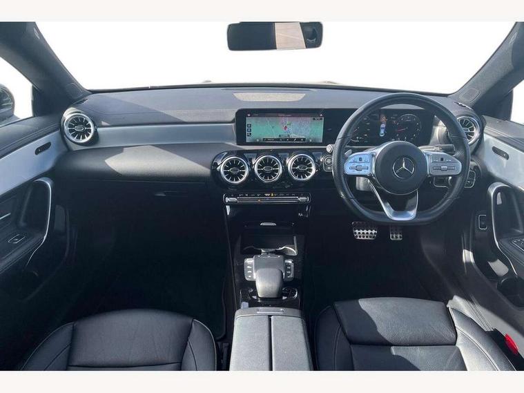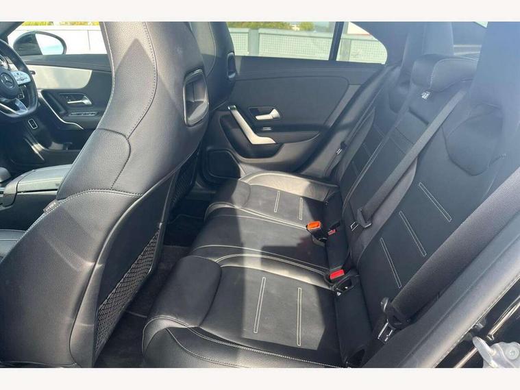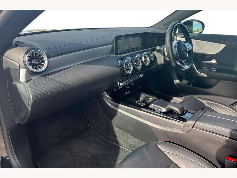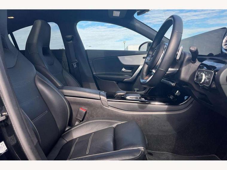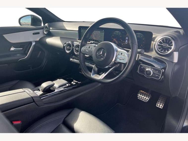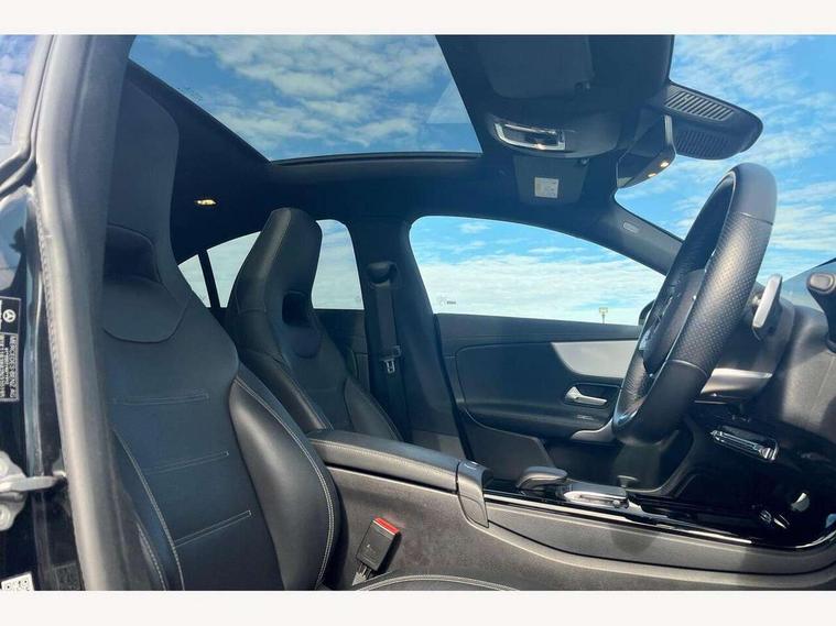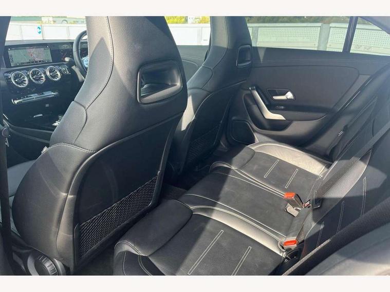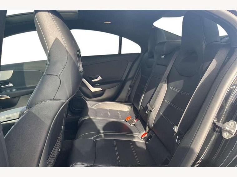 10.25 inch Instrument display with digital cockpit, 10.25 inch touchscreen central media display, Attention assist - Monitors steering behaviour and long journey fatigue, Bluetooth connection, Car wash mode, DYNAMIC SELECT with a choice of driving modes (ECO, Comfort, Sport and Individual), ECO start/stop function, Fluid level warning indicator for fuel, oil, coolant and washer fluid, Hard-disk navigation, Hey Mercedes Voice activation, Lamp failure indicator, Mercedes me connect including emergency call system, accident recovery, breakdown management and maintenance, Mercedes me remote services, Outside temperature gauge, Owners manual and service booklet in English, Pre-installation of private car share, Preinstallation for Mercedes Benz link, Radio aerial integrated into front and rear windshields, Service indicator (ASSYST), Smartphone integration with Apple CarPlay and Android auto, Traffic sign assist, Trip computer in multifunction display with current consumption indicator, 7G-DCT 7 speed automatic transmission, Lowered comfort suspension, Rear axle multi-link, DAB digital radio tuner, MBUX multimedia system with DAB digital radio and touchpad including satellite navigation, Mid-range sound system, USB (type C) ports (2) in stowage compartment and 1 in front of centre console, Adaptive brake lights, AMG body styling with AMG front apron and rear apron and visible exhaust tailpipe in chrome trim elements, AMG bodystyling side skirts, Auto headlights, Body colour bumpers, Body colour door handles, Chrome beltline strips, Chrome weather strip, Diamond radiator grille pins in chrome with silver painted louvres and chrome insert, Electric panoramic sliding sunroof, Electric windows, Electrically adjustable and heated door mirrors with integrated LED indicators, Exhaust system with 2 Visible tailpipe trim elements and rear apron with trim in chrome, Headlamp assist automatic headlamp activation, Heated glass rear windscreen + timer control, High level LED third brake light, Integrated LED daytime running lights, Interior mirror with black reading lamps and frameless, LED tail lamp, Multibeam LED headlamps with adaptive highbeam assist plus, Privacy glass with dark tinting on rear side windows and rear window, Rain sensing windscreen wipers with two sensitivity settings, Rear boot, Rear fog lamp, Rear side wing doors, Window line trim strip in chrome, 3 seat bench in 2nd row, 3 spoke flattened bottom nappa leather multifunction steering wheel with perforated leather in grip area, 40:20:40 split folding rear seats with backrest, Air conditioning - Two zone thermotronic luxury automatic climate control with display, Air vents with surround in silver chrome, Automatic child seat recognition sensor, Black roof lining, Brushed stainless steel sports pedals with rubber studs, Floor mats with stitched AMG lettering, Front centre armrest with stowage, Galvanished gear shift paddles on steering wheel, Heated front seats, Illuminated front door sills with changeable cover, Illuminated glove compartment stowage, Interior lighting - 64 colour Ambient lighting, Luggage net on driver/front passenger seat backrest, Manually height and reach adjustable steering column, Rear armrest with two integral cup holders for drinks, Rear head restraints, Single front passenger seat, Sport seats with fixed head restraints, Stowage compartment in centre console with retractable cover, Sunvisors with illuminated vanity mirrors, Touchpad on center console, Twin front cupholders, Two outer rear seat isofix and top tether child seat fixing points, Keyless go pack - CLA, Light and sight pack - CLA, Mirror pack - CLA, Parking package - CLA, Seat comfort pack - CLA, Active bonnet pedestrain safety measure which detects an impact and raises bonnet by 65mm, Adaptive brake assist with hold function and hill start assist, Anti-lock braking system (ABS), Black seat belts, Bonnet with power domes, Brake pad wear warning indicator, Childproof locks manually operated for rear doors and electrically operated for rear power windows, Crash responsive emergency lighting, Driver and front passenger head and sidebags, Driver and front passenger windowbags, Drivers knee airbag, Dual stage driver and front passenger airbags, Electric parking brake, Electronic stability programme with acceleration skid control, ESP curve dynamic assist, Front and rear seatbelt reminder, Front passenger seat occupancy sensor, Three point rear seat belts, Tyre pressure monitoring system, Warning triangle and first aid kit, Remote central locking and crash sensor with emergency opening function, Urban guard vehicle protection system with immobiliser and interior protection, Light aluminium with longitudinal grain interior trim, 18" 5 twin spoke design alloy wheels painted in titanium grey with high sheen finish, Summer tyres, Tirefit tyre sealant kit,