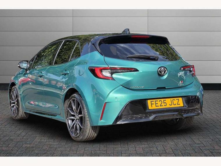 10.5" Multimedia display screen, Bluetooth telephone connectivity, Connected car functionality upgrade, tracker, remote status and e-care, Drive mode select (Eco, Normal), E-call, Electrically assisted power steering, EV drive indicator, Front and rear parking sensors, Full Digital 12.3" TFT Digital Combimeter, Intelligent clearance sonar, Key reminder warning, Lane Departure Alert (LDA) switch on steering wheel, Memory on adjustable speed limiter, MyT connected services, Proactive driving assist (PDA), Reversing camera, Smart entry and push button start with GR Logo, Smartphone integration with Apple CarPlay and wired android auto, Tailgate, Toyota remote services, Toyota smart connect navigation, Wireless charger, Gasoline particulate filter, Vehicle Stability Control (VSC), 6 speakers, AM/FM radio, DAB Digital radio, Front USB-C in centre console, Front USB-C in dashboard, Smart voice assist/ Voice recognition, USB and Aux in connectors + 12V front outlet, Anti-jam protection on power windows, Auto up and down function on all power windows, Automatic folding mirrors, Automatic headlights with high beam assist, Black centre and side air vents, Black toyota logo in front, Body coloured bumpers, Body coloured door mirrors, Body coloured outside door handles, Dark chrome lower grille, Electrochromatic mirror, Follow me home headlights, GR Sport dark chrome front mesh grille and black rear grille, GR Sport exclusive under guard, GR sport scuff plates, LED daytime running lights, LED dual beam projector headlights, LED front fog lights, LED High mounted stop light, LED rear combi lights with LED lightguide, Manual headlight levelling system, New grille pattern, Noise reduction layer on windscreen, Piano black diffuser, Power adjustable heated door mirrors, Power front windows, Power rear windows, Privacy glass with UV filter, Rain sensing wipers, Rear side wing doors, Rear window defogger, Rear window wiper, Reverse tilting door mirrors, Rocker and door lower moulding, Roof spoiler, Satin chrome insert on front air vents, Satin chrome insert on front door assist grips, Satin silver front spoiler, Shark fin antenna, Tailgate release with push button, Time adjustment on intermittent wiper, Turning signal integrated indicators in door mirrors, Unique lower skirt, Unique side rocker with black insert, UV-filter on driver and passenger windows, 2 Shopping bag hooks in luggage compartment, 3 rear headrests, 3 seat bench in 2nd row, 3 spoke steering wheel with satin insert and red stitching, 4 tie down hooks in luggage compartment, 60/40 split folding rear seat, Adaptive cruise control (ACC) switch on steering wheel, Adjustable speed limiter switch on steering wheel, Audio, multimedia and telephone switches on steering wheel, Black armrest on centre console box, Black gear shift console, Boot light, Boot underfloor storage, Centre room light, Driver and front passenger personal light, Driver and passenger assist grip, Driver and passenger seatback pockets, Driver and passenger sun visor with mirror and light, Dual zone automatic air conditioning with ECO mode switch, Electric lumbar support for passenger, Fabric/synthetic leather upholstery, Front and rear cup and bottle holders, Front door pockets, Front head restraints, Front passenger seat, Front sliding synthetic leather armrest, Gear knob, GR Sports seats with partial leather bolsters, Heated front seats, Illuminated entry system in room lamp, ISOFIX seat fixing (2 fixings on rear outer seats), Manual height adjustable for driver and front passenger seat, Manually tilt with sliding driver and front passenger seat, Nanoe-X air purifier, Paddle shifts, Parcel shelf, Pollen filter, Power adjustable lumbar support on driver seat, Power window switches with satin chrome inserts, Rear armrest with 2 cupholders, Rear passenger coat hooks (2), Red stitching on gear shift, Remote air conditioning, Satin chrome inside door handles, Satin chrome surround on speedometer, Sliding armrest on centre console box, Slow opening glovebox with lights, Textile floor mats, Tilt/telescopic steering column, Voice recognition switch on steering wheel, Whiplash Injury Lessening (WIL) feature (active headrest) for seats, White ambient lighting on open tray and front cup holder, Toyota safety sense 3 pack - Corolla, 3x3 point rear seatbelts, Adjustable driver and front passenger seat belt extender to top anchor point, Anti lock braking system + Electronic brake force distribution, Brake assist function, Child locks on rear doors, Downhill Assist Control (DAC), Electronic parking brake, Emergency brake light signal (EBS), Front passenger airbag on/off switch, Front seatbelt reminder, HAC - Hill start assist control, Rear seat belt reminder, Seatbelt pretensioners and force limiters, Supplemental restraint system (SRS) 7 airbags - dual driver, dual side curtain, side impact and driver knee airbags, Traction control, Tyre pressure warning system, Acoustic vehicle alert system (AVAS), Alarm with motion sensor and immobilizer, Power passenger window lock, Remote central locking + deadlocks, GR Sport interior and exterior styling, Satin chrome dash trim, Soft touch texture on upper dashboard, Stitching on lower dashboard, 18" 10 spoke black machined face alloy wheels, Tyre repair kit, Unique wheel finish with red wheel cap,