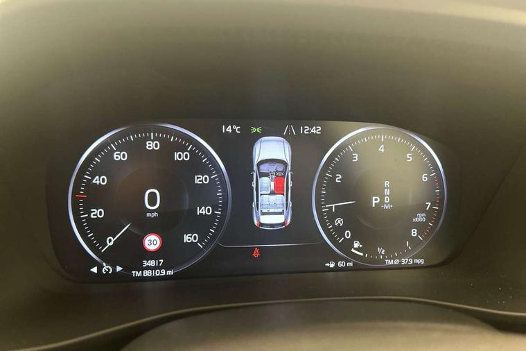 12.3" Active TFT crystal driver's instrument display, 9" centre console portrait touch screen, Adjustable steering wheel force, Bluetooth hands free telephone kit, Drive mode selector, Lane keep assist with driver alert control, Oncoming Lane Mitigation, Sensus navigation with European mapping and traffic information, Speed limiter, Speed sensitive steering, Voice activated control for key functions, Volvo on call, Sports chassis, DAB Digital radio, Steering wheel mounted remote controls, Adaptive brake lights with high level LED brake lights, Auto dimming interior mirror, Automatic headlamp levelling, Black stone door mirrors, Black stone roof, Colour coordinated auto folding and heated power door mirrors, Dark tinted windows for rear door side windows and cargo compartment, Dual integrated exhaust pipes with high gloss black surround, Front aluminium tread plates, Front and rear electric windows, High gloss black front and rear skid plate, High gloss black lower front bumper, High gloss black mesh front grille with high gloss black surround, High gloss black roof rails, High gloss black sensus surround deco, High gloss black window trim, Home safe and approach lighting, LED front fog lights, LED Headlights + Active high beam incorporating daytime running lights, Rain sensor with automatic windscreen wiper activation, Rear side wing doors, Rear wiper, Roof antenna, Roof spoiler, Visible VIN plate, 12V socket in front tunnel console and luggage compartment, 2 zone electronic climate control and rear air vent, 3 seat bench in 2nd row, 60/40 split folding rear seat, Ambient front door and instrumental panel lighting, Centre console cupholders and storage, Charcoal headlining, Driver's side lower dashboard credit card storage compartment, Front door pocket and front cupholder illumination, Front footwell illumination, Front headrests, Front reading light and theatre lighting, Front tunnel net pocket and integrated waste bin, Glovebox bag hook, Height/reach adjustable steering column, High gloss centre tunnel deco, Illuminated glovebox, Illuminated luggage compartment, Illuminated tailgate, Illuminated vanity mirrors, Isofix attachments on outer rear seats, Key integrated remote, Leather gearknob, Load protection net, Multi directional lumbar support, Multicolour theatre lights, Rear armrest / integral cup holders / storage tray, Rear coat hook, Rear reading and courtesy lights, Single front passenger seat, Sports Leather steering wheel, Sports pedals, Underfloor cargo storage, 3x3 point rear seatbelts, City safety includes pedestrian, cyclist and large animal detection and front collision warning with full auto brake, Drivers knee airbag, Dual stage driver/passenger airbags, Electronic parking brake with auto hold, First aid kit, Front and outer rear seatbelt reminder and pretensioners, Front seats SIPS airbags, Hill descent control, Hill start assist, Inflatable curtain, Passenger airbag cut-off device, Road sign information display, Run off Road Mitigation, Run off Road Protection, SIPS (Side Impact Protection System), Slippery road and hazard light alert, Stability and Traction Control with Spin control, Engine Drag Control and Corner Traction Control, Tyre pressure monitoring system, Vehicle deceleration control with Anti-lock Brake System, Electronic Brake Distribution and Emergency Brake Assist, Warning triangle, WHIPS whiplash protection system - front, Anti-theft alarm including immobiliser/volume sensor + level sensor, Care key with user defined top speed, Key integrated remote control central locking + fuel flap with deadlocking system and auto open/close power windows, Locking wheel nuts, Private locking for tailgate, Cutting edge aluminium inlay,
