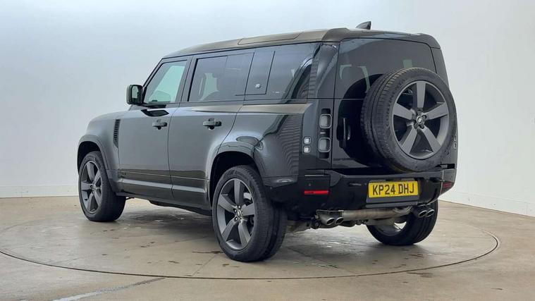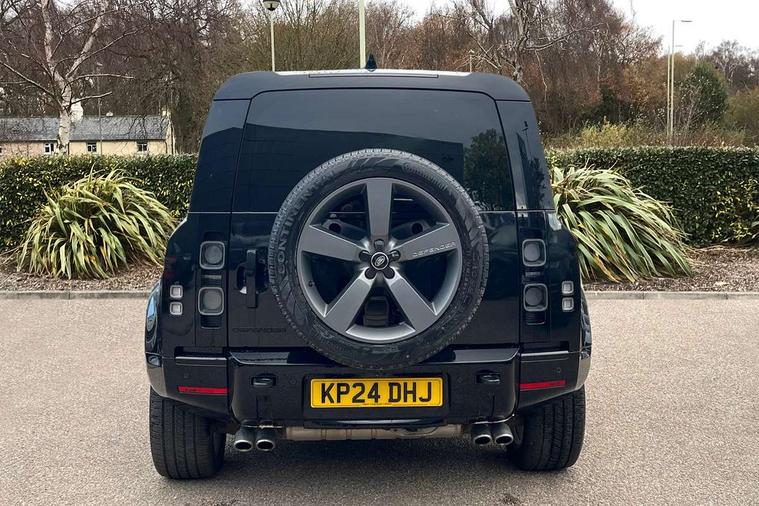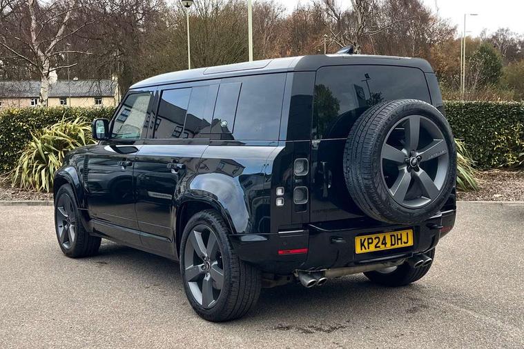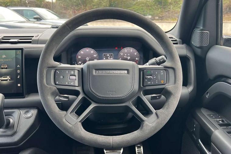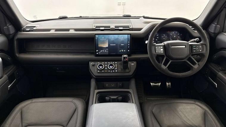 11.4" touchscreen, 360 degree parking aid, 3D Surround Camera with 360 View, 180 Rear View, Front Traffic Detection, Forward Vehicle Guidance, Tow Hitch Assist and clear sight Ground View, Adaptive cruise control, Android Auto, Apple CarPlay, Assisted tailgate with soft close, Blind spot assist, Bluetooth system, Brake pad wear indicator, Clear exit monitor, Connected navigation pro, Driver condition monitor, Electric power assisted steering (EPAS), Garage door opener (Homelink), Head up Display, Interactive driver display, Lane keep assist, Push button start, Rear collision monitor, Rear traffic monitor, Traffic sign recognition with adaptive speed limiter, Trip computer, Wade Sensing, 8 speed automatic transmission, Adaptive dynamics, All terrain progress control, All wheel drive system, Configurable Terrain Response, Electronic active differential with brake torque vectoring, Electronic air suspension, Terrain Response 2 with dynamic program, Twin speed transfer box, DAB Radio (Digital Audio Broadcasting), Pivi pro connected, Advanced tow assist, Automatic headlight levelling, Automatic headlights, Black exposed rear recovery eyes, Centre high mounted stop light, ClearSight interior rear view mirror, Darkened LED tail lights, Electric heated/power fold door mirrors with approach lights and auto dimming driver side, Electric windows with one touch open/close and anti-trap, Electrically deployable towbar, Follow me home lighting, Front fog lights, Headlamp power wash, Heated rear window with timer, Heated washer jets, Heated windscreen, Illuminated metal treadplates with V8 branding, Less roof rack or roof rails, Matrix LED headlights with signature DRL, Privacy glass, Puddle lights, Quad outboard mounted exhaust pipes, Rain sensing windscreen wipers, Rear fog lights, Rear side wing doors, Rear wiper, Side hinged tailgate, Signature graphic (with interior storage), Sliding panoramic roof, Solar attenuating windscreen, Trailer stability assist, V8 badge, 12V power socket in loadspace, 14 way heated and cooled electric adjustable memory front seats with 4 way manual headrests, 3 seat bench in 2nd row, 40:20:40 folding, heated rear seats with centre armrest, Air quality sensor, Alpine lights, Bright metal pedals, Cabin Air Purification plus, Configurable cabin lighting, Domestic plug socket, Durable rubber cabin flooring, Durable rubber loadspace flooring, Ebony morzine headlining, Electric cabin pre conditioning, Electric reach + rake adjustable steering column, Extended leather upgrade, Footwell lights, Front centre console refrigerator compartment, Front passenger isofix child seat attachment, Heated steering wheel, Leather gearshift, Loadspace cover, Loadspace Hook, Multifunction steering wheel, Overhead stowage for sunglasses, Premium cabin lighting, Rear headrests, Rear ISOFIX, Rear reading lights, Satin chrome gearshift paddles, Single front passenger seat, Standard seat configuration, Storage glovebox, Suedecloth steering wheel, Sunvisors with illuminated vanity mirrors, Three-zone Climate Control with Rear Cooling Assist, Twin front cupholders with cover, Online pack with data plan - Defender, 5 x 3 point seatbelts, ABS, Brake hold function, Cornering brake control (CBC), Cross car beam in satin black powder coat brushed finish, Customer configurable autolock, DSC - Dynamic Stability Control, EBD - Electronic brakeforce distribution, Electric parking brake (EPB), Emergency brake assist, Emergency braking, ESP + traction control, Front airbags with passenger seat occupant detector, HDC - Hill descent control, Hill launch assist, Low traction launch, Power operated child locks, Remote for (e-Call, Optimised assistance call, InControl app, Climate, beep and flash and door), RSC - Roll stability control, Seat belt reminder, TPMS (Tyre pressure monitoring system), Activity key, Alarm, Immobiliser, Intrusion sensor, Keyless entry, Locking wheel nuts, Robustec veneer,