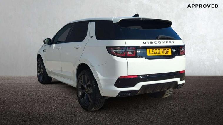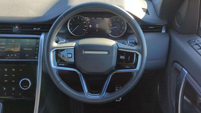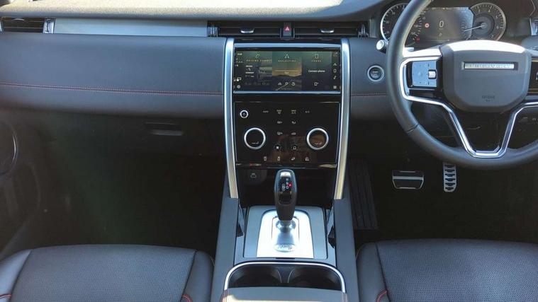 10" touch screen, Adaptive cruise control, Android Auto, Apple CarPlay, Blind spot assist, Clear exit monitor, Driver condition monitor, eCall emergency call system, Front and rear parking aid, InControl remote premium, Lane keep assist, Locking fuel flap, PAS, Pivi Pro connected navigation system with upgraded Infotainment, Powered tailgate/boot lid, Push button start, Rear collision monitor, Rear traffic monitor, Service interval indicator, Traffic sign recognition with adaptive speed limiter, Trip computer, Wade Sensing, All terrain progress control, Coil suspension system, Dynamic stability control, Terrain Response 2, Bluetooth connectivity including audio streaming, Digital Audio Broadcast radio-DAB, Steering wheel mounted audio controls, 3rd brake light, Automatic headlight levelling, Automatic headlights, Electric front/rear windows, Electric heated/power fold door mirrors with approach lights and auto dimming driver side, Fixed panoramic sunroof with powered sunblind, Front and rear recovery eyes, Heated rear window, Heated windscreen including heated washer jets, No badges, Privacy glass, R Dynamic badge, Rain sensing windscreen wipers, Rear fog lights, Rear side wing doors, Rear wing door, Rear wiper, 5 seats, Bright metal pedals, Centre console with armrest, Footwell lights, Front and rear grab handles, Front passenger isofix child seat attachment, Loadspace cover, Loadspace light, Overhead lighting console, Overhead stowage for sunglasses, Rear headrests, Satin chrome gearshift paddles, Sunvisors with illuminated vanity mirrors, Tilt/reach adjustable steering wheel, Black exterior pack - Discovery sport R-Dynamic SE/HSE, Online pack with data plan - Discovery, 3 point seatbelts on all seats, ABS, Brake hold function, Child locks on rear doors, Collision mitigation braking system, Cornering brake control (CBC), Driver/Front Passenger airbags, Drivers knee airbag, Electronic brake force distribution, Electronic parking brake, Emergency brake assist, ESP + traction control, Hill descent control, Hill launch assist, Pedestrian airbag system, Rear seat ISOFIX, Roll stability control, Side and curtain airbags for front and 2nd row seats, Trailer stability control, Tyre pressure monitoring system, Battery Back Up System (BBUS) with tilt sensor, Global lock and unlock switch on driver door, Intrusion sensor, Keyless entry, Locking wheel nuts, Centre stack rails in noble chrome,