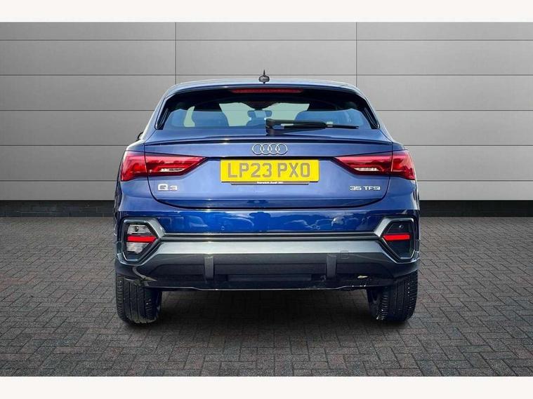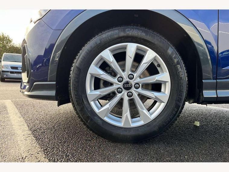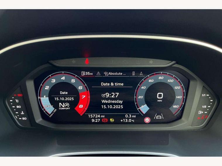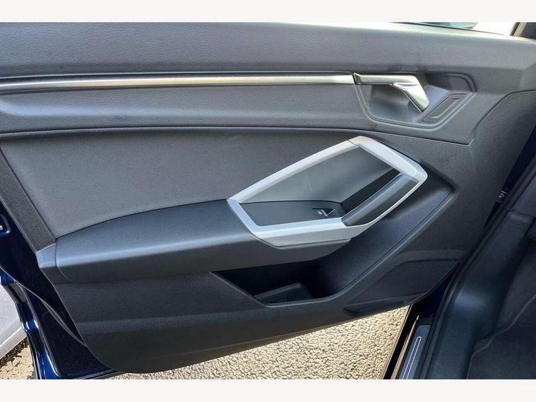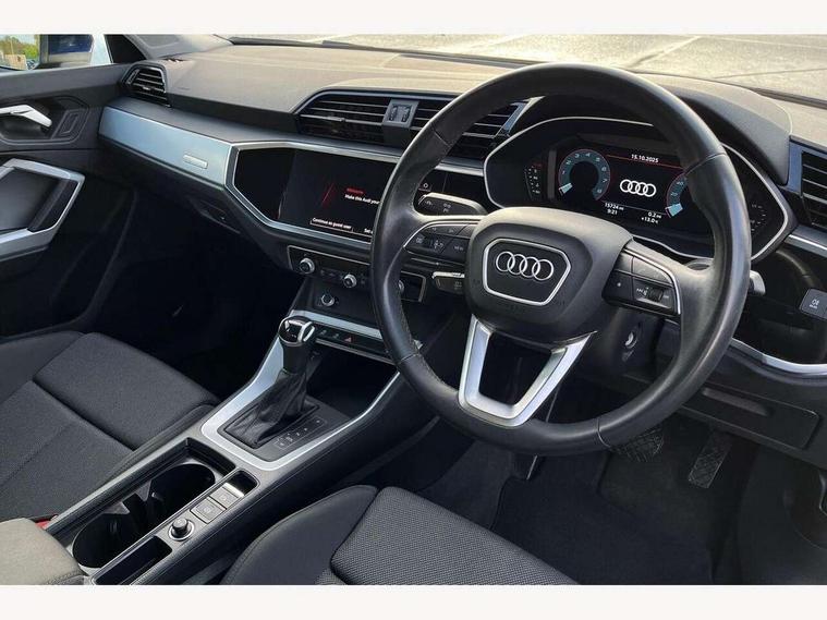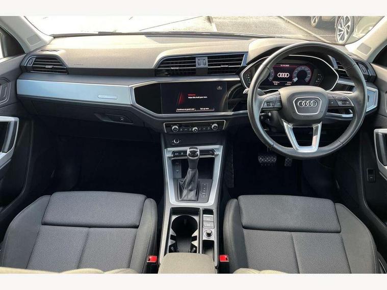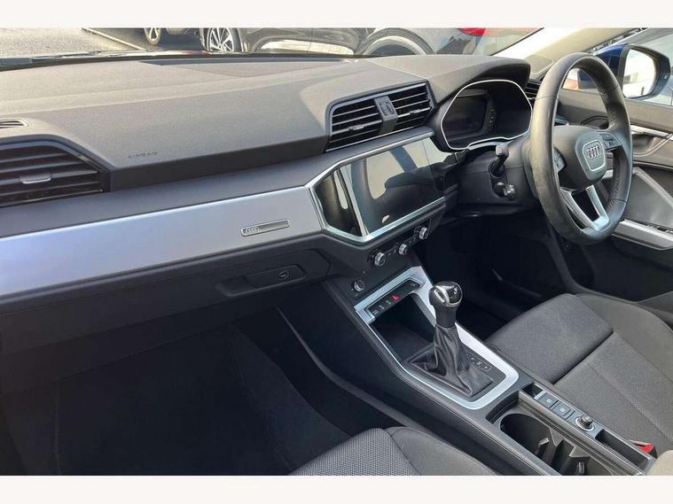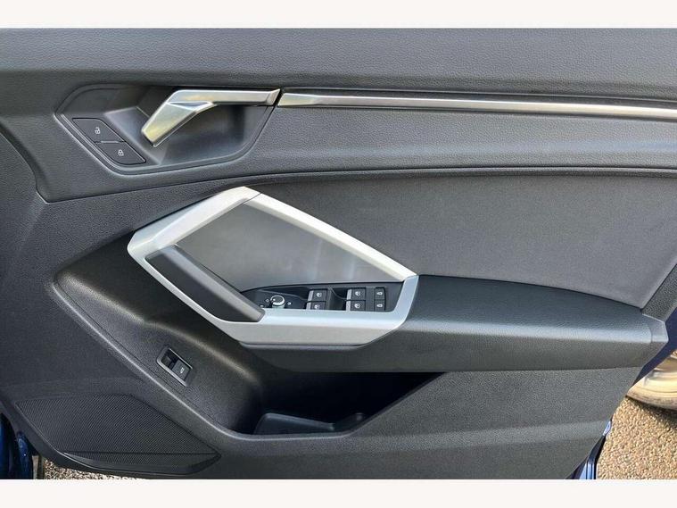 Audi drive select, Audi lane departure warning, Audi smartphone interface includes wireless Apple carplay/Android Auto, Audi Virtual Cockpit - 10.25" display, Bluetooth interface, Camera based traffic sign recognition, Legal emergency call, MMI Navigation Plus with high resolution 10.1 inch touchscreen colour display, Power operated tailgate, Progressive steering, Service interval indicator, Start stop system with recuperation, Voice control system with natural language interaction, Sports suspension, 2 USB-C ports with charge and data functions, 6 passive loudspeakers, DAB digital radio module, Acoustic windscreen, Aluminium window trim, Auto dimming door mirrors, Auto dimming frameless rear view mirror, Bumpers and underbody protection in contrasting manhattan grey paint finish, Diffuser grille in grained matt black, Diffuser trim in manhattan grey metallic, Door sill trims with illuminated aluminium inlay, Electrically folding, adjustable and heated door mirrors with integrated LED side indicators and kerb view function for passenger side, Front and rear electric windows, Front fog lights, Front side air inlets in Manhattan grey metallic, Grille surround in aluminium silver matt, High gloss black finish B and C pillars, Honeycomb design radiator grille in matt anthracite black, LED headlights with LED daytime running lights, LED third brake light, Rain and light sensors, Rear side wing doors, Rear wiper, Variable front intermittent wipers, 12V socket in rear centre console, 3 seat bench in 2nd row, 3 spoke multi-function leather steering wheel, 40:20:40 folding with manual adjustment for 60:40 forwards/backwards position and backrest angle, Dual zone electronic climate control, Electric lumbar support, Front and rear floor mats, Front and rear headrests, Front centre armrest, Height and reach adjustable steering wheel, ISOFIX child seat mounting for front passenger with airbag deactivation and outer rear seat including top tether attachment point for outer rear seats, Luggage compartment sill protection in stainless steel, Lunar silver cloth headlining, Manual front seats with height adjustment, Single front passenger seat, Non smoking pack - Q3, 3x3 point rear seatbelts, 6 airbags - Driver, front passenger, curtain and side windows, Audi pre-sense front with pedestrain and cyclist recognition, Electrically operated child locks on rear doors, Electromechanical parking brake, Electronic stabilisation control including ABS, ASR and EDL, Front seatbelt reminder, Hill descent control, Hill hold assist, Pre sense basic, Seatbelt monitoring, Tyre pressure warning, Warning triangle and first aid kit, Anti theft alarm, Anti theft wheel bolts, Immobiliser, Remote central locking, Aluminium look interior elements, Detail dashboard around MMI touch colour display in glass look, black with surround in aluminium look, Micrometallic silver inlay,