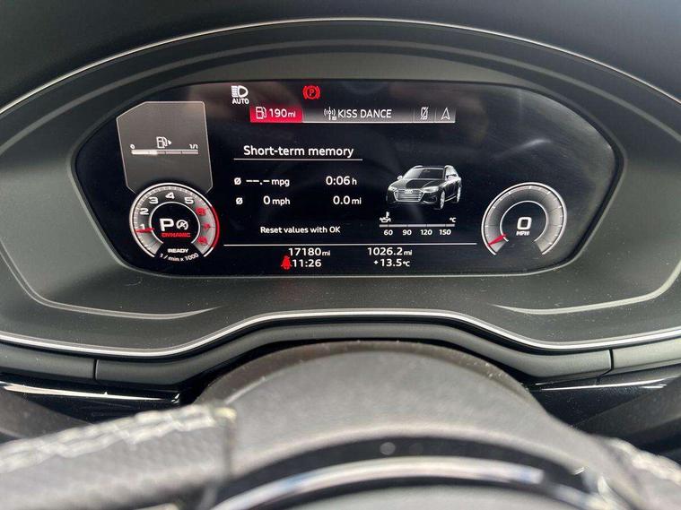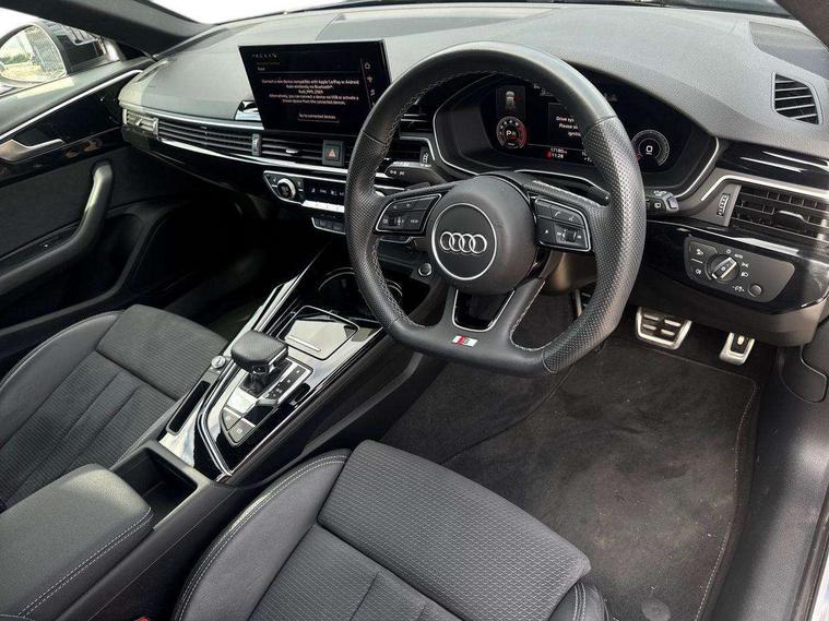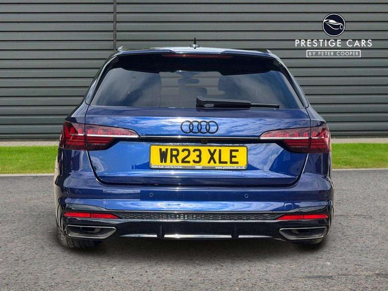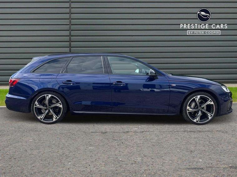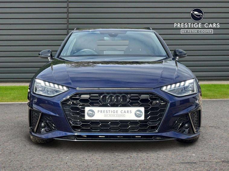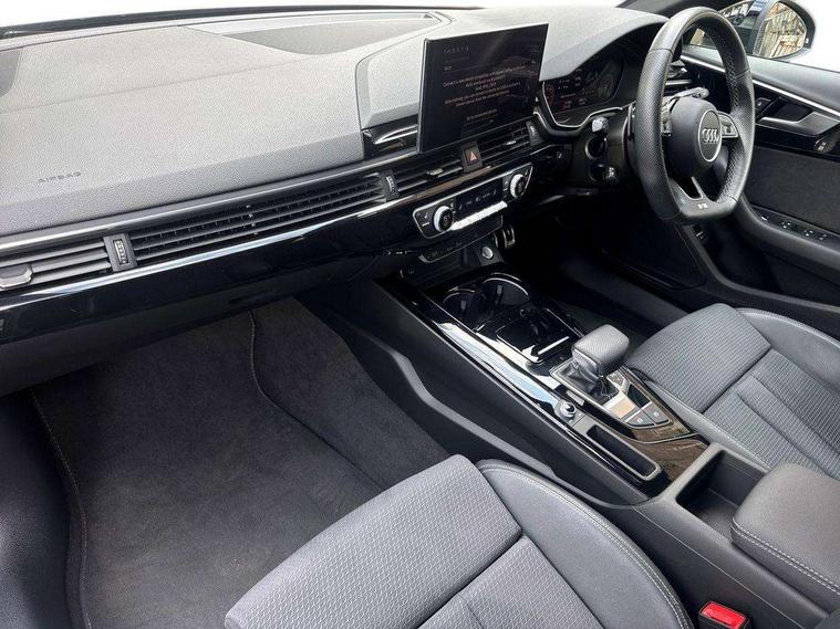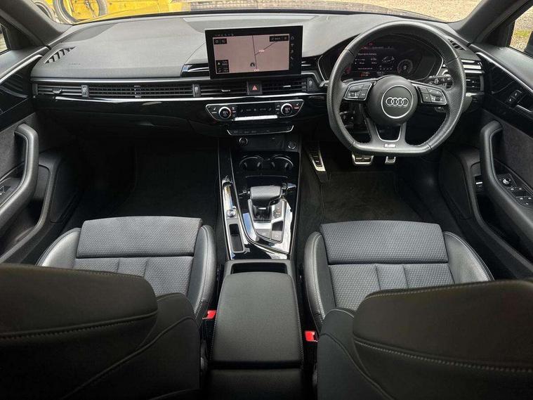 Audi connect safety and service (e-call), Audi connect with Amazon Alexa Integration, Audi drive select, Audi smartphone interface, Audi virtual cockpit, Automatic start-stop system with coasting functionality and efficiency programme, Bluetooth interface, Electromechanical power steering, Email, calendar and text messages displayed via MMI, Front and rear parking sensors, MMI Navigation plus with MMI touch includes 10.1" high resolution colour MMI display, 3D map, Power operated tailgate, Rear view camera, Voice control system, 54 litre fuel tank, Sports suspension lowered by 23mm, 2 USB charging ports, 8 passive loudspeakers, DAB digital radio reception, Audi beam uses LEDs to project the audi logo onto the ground as you exit your A4, Auto dimming rear view mirror, Black Audi rings and black badging (model name in black badging, no engine badging), Body colour door handles, Body colour front spoiler lip, Body colour side sill trim, Electrically folding auto dimming/adjustable/heated door mirrors with LED side indicators and kerb view function for passenger side, Exhaust tailpipes in high dark chrome, Grained matt black side air inlets with matt aluminium silver inlay, High beam assistant, High gloss black B pillar trims and triangular rear door trim, LED headlights with LED rear lights + dynamic rear indicators + headlight adjustment and high beam, turning light + LED daytime running lights, LED third brake light, Privacy glass, Rain and light sensors, Rear diffuser in matt black with trim strip in matt aluminium silver, Rear side wing doors, Rear wiper, RS4 rear spoiler in body colour, S Line roof edge spoiler, Sport front and rear bumpers with side skirts, Variable intermittent front wash/wipe, Windscreen with acoustic glazing, 4 way electric lumbar support for driver and front passenger, 40/20/40 split folding 3 rear seat bench in 3 parts with rear centre armrest, Black cloth headlining, Black perforated leather gearknob, Contrast stitching on seats, steering wheel and gear lever gaiter, Deluxe 3 zone electronic climate control, Door sill trims with aluminium inlay, Electric load area cover, Front and rear head restraints, Front centre armrest, Heated front seats, Illuminated door sill trims with S logo, ISOFIX child seat mounting and top tether, Manual seat adjustment, Single front passenger seat, Stainless steel pedals and foot rest, Tool kit, Black styling pack - A4 Avant, LED Interior light pack - A4/S4, 3 rear seatbelts, 6 airbags - Driver, front passenger, curtain and side windows, Electronic Stabilisation Control (ESC) including ABS, ASR and EDL, Hill hold assist, Multi collision brake assist, Pop-up bonnet for pedestrian protection, Pre sense city, Rear door child safety locks, Seatbelt monitoring, Warning triangle and first aid kit, Anti theft alarm, Anti theft wheel bolts, Central locking, Keyless Go, Piano black finish inlay, Tyre repair kit,