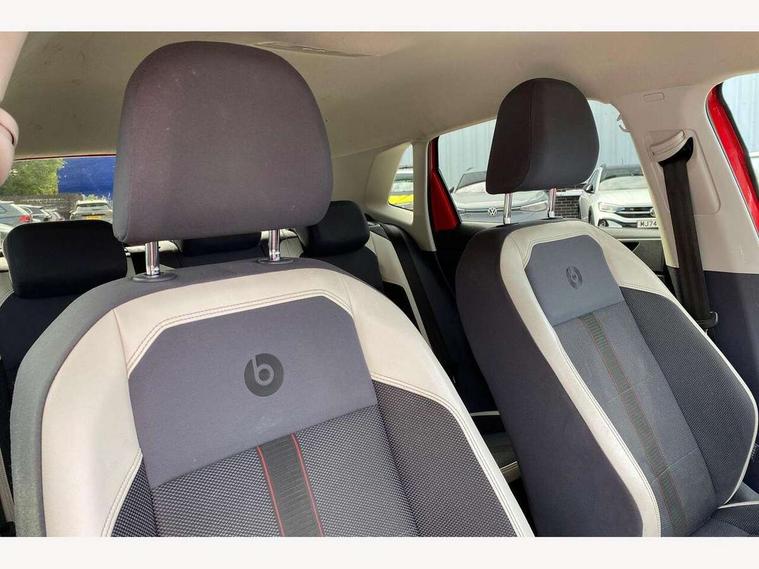 App-Connect, Bluetooth Telephone preparation, Driver alert system, Multifunction colour display, PAS - speed related, Service interval indicator, Trip computer, Warning buzzer and light for front seatbelts unfastened, Beats audio system, Composition media system with radio, glovebox mounted CD, colour touch screen, SD card, aux-in, USB, multimedia interface, DAB Digital radio, Automatic headlamp activation, Black door mirrors with integrated indicators, Black grille with chrome surround, Body colour bumpers, Body colour door handles, Body colour rear spoiler, Body coloured side sills, Chrome trimmed front air intake surrounds, Electric front windows, Electric operated/heated door mirrors, Front fog lights with static cornering function, Front wash/wipe with interval delay, Heat insulated tinted glass 65% light absorbing from B pillar back, Heated rear window with auto timer, LED daytime running lights, LED rear number plate lights, Rear electric windows, Rear tinted windows from B pillar back, Rear windscreen washer and wiper with interval delay, 12V power socket in centre console, 2 bag hooks in luggage compartment, 2 cupholders, 3 rear head restraints, 3 spoke steering wheel, 4 grab handles, 60/40 split folding rear seat, Centre console storage, Chrome interior door handles, Chrome plated light switch, Driver/front passenger seat height adjustment + underseat drawers, Driver/passenger sunvisors with illuminated vanity mirrors, Dust/pollen filter, Front and rear carpet mats with red stitching, Front door pockets, Front seat backrest storage nets, Front sport seats, Front/rear reading lights, Glovebox, Height/reach adjustable steering column, Interior light with delay, Isofix Preparation 2 Rear child seats, Jack and tool kit, Leather door panels, Luggage compartment cover, removable, Luggage compartment lighting, Matt chrome gear lever gaiter surround, Multifunction leather steering wheel with leather gear knob/handbrake grip, Storage compartment in front doors, Storage compartment in rear doors, Storage compartment under front seats, Sunglasses holder, Tracks 2 cloth upholstery, 3 point height adj front seatbelts + pretensioners, 3x3 point rear seatbelts, ABS, Automatic post collision braking, Driver/front passenger airbag, Driver/Passenger whiplash optimised head restraints, ESP with EDL + ASR, Front and rear passengers curtain airbag system including front side airbags, Front passenger airbag deactivation, Hill hold control, Hydraulic Brake Assist (HBA), Two tone horn, Tyre pressure monitoring system, Alarm with remote central locking and interior protection, Anti-theft wheel bolts, Electronic engine immobiliser, Matt chrome interior trim, Silver grey surround to air vents, Velvet red dashboard pad, Tyre repair kit,