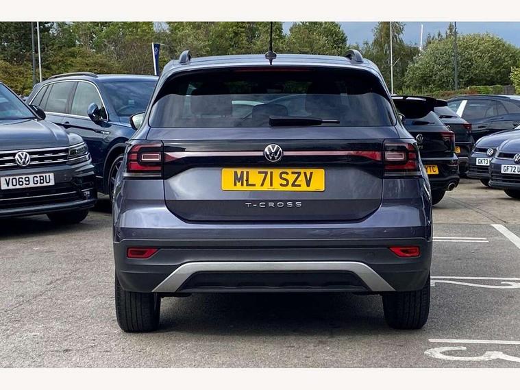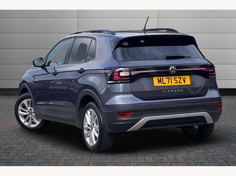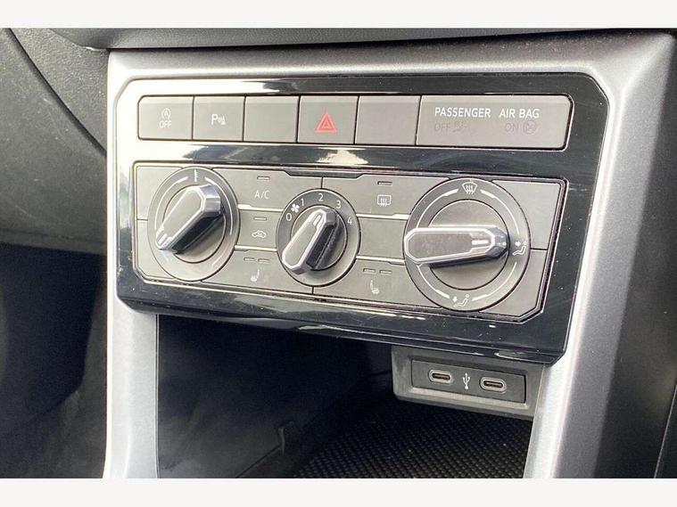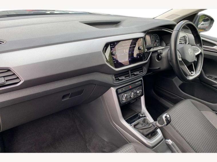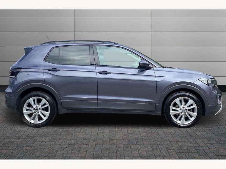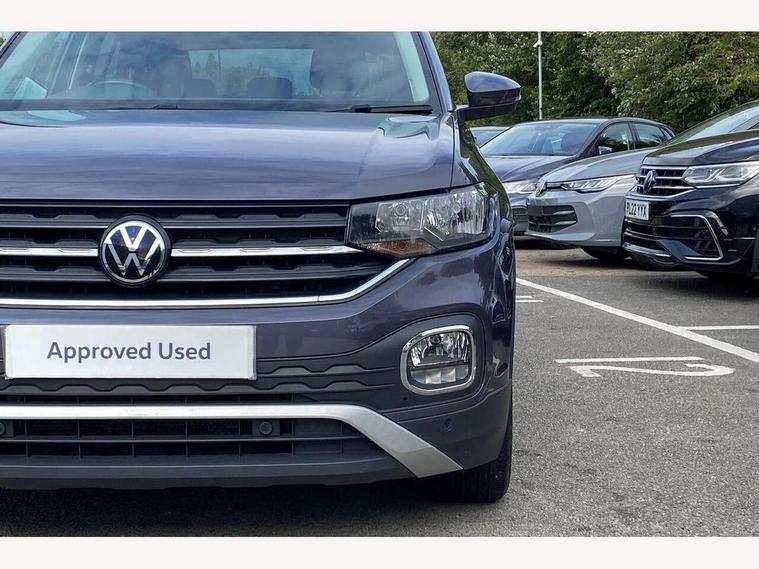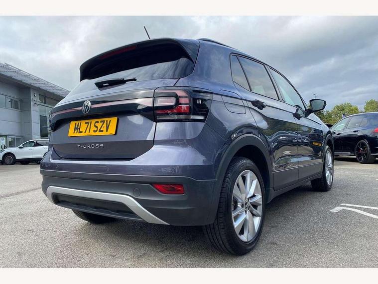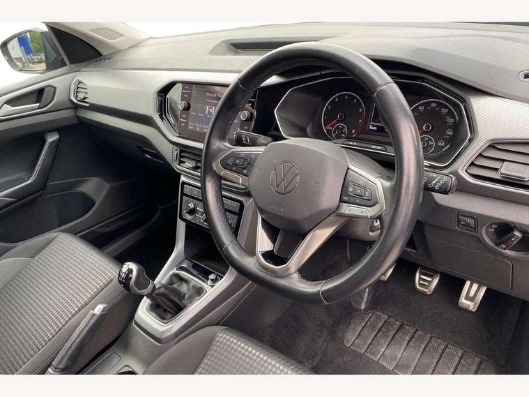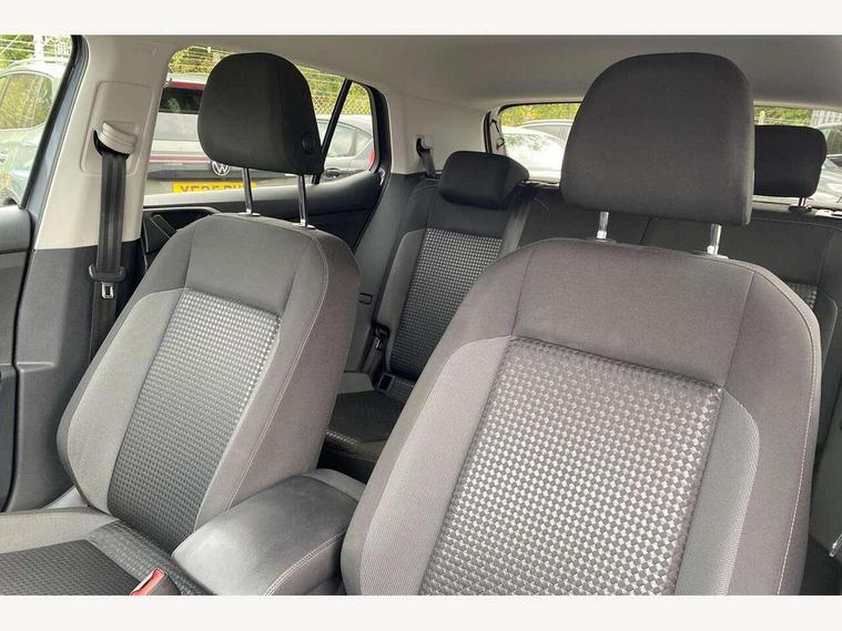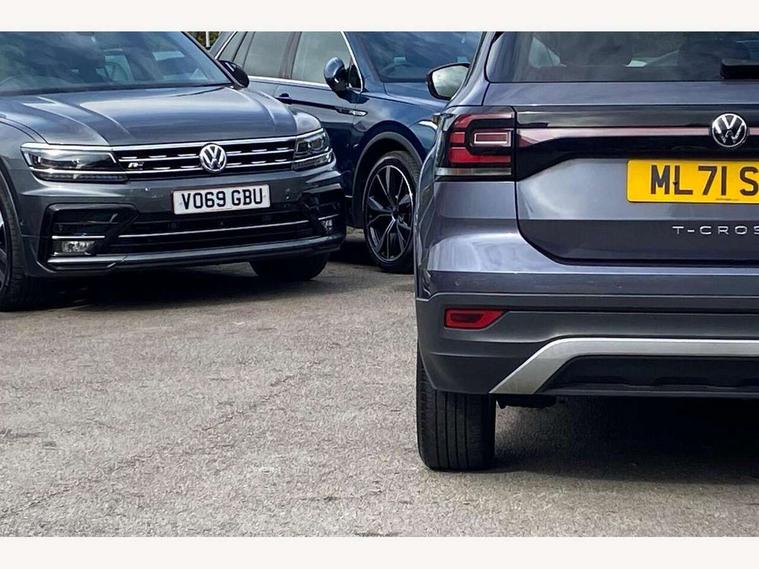'Lights On' Reminder warning buzzer, Adaptive cruise control including front assist, forward collision warning, autonomous emergency braking, speed limiter, Blind spot monitoring, Bluetooth telephone and audio connection for compatible devices, Car information display, Driver alert system, eCall emergency call system, Lane assist, Low washer fluid warning light, Multifunction computer with visual gear change recommendation for fuel consumption, Operating permit alteration, Power assisted speed sensitive steering, Speedo, rev counter, electronic odometer, trip, service interval display, exterior temperature and fuel gauge, Stop/start system, Warning sound and light for doors and tailgate open, Warning sound and light for front seatbelts unfastened, We Connect Go Dongle, Wireless Car net app connect with Apple CarPlay, combined functionality of Apple CarPlay/Android Auto and MirrorLink, Battery regeneration during braking, Misfuel prevention device, 2x USB connection with USB charging sockets and in rear centre console, DAB Digital radio receiver, Diversity antenna for FM reception, Multi device interface (MDI) with USB connection, Music playback - MP3, WMA and AAC files, Premium USB cable for Apple or Android smartphone compatibility, Simultaneous pairing of 2 compatible mobile devices, Title and cover art display, 3D active badge on B-pillar, Active door sills, Active sill panel trims, Automatic hazard lights activation under emergency braking, Black roof rails, Body colour door handles, Body coloured bumpers, Dusk sensor + automatic driving lights, Electrically foldable, adjustable and heated door mirrors with reverse activated kerb view adjustment on passenger's side, Front and rear electric windows, Front fog lights with static cornering function, Galvanised body, Heated rear window, High level 3rd brake light, Lower door sills and door pillars in black, Radiator grille with high gloss surface and chrome strip, Rear fog light on one side, reversing light on both sides, Rear lights incorporating LED technology, Rear tinted glass 65% approx light absorbing from B pillar backwards, Rear window aerial, Rear windscreen washer and wiper with interval delay, Reflectors in all doors, Tailgate with integrated roof spoiler, Windscreen wipers/ intermittent wipe + 4 position delay, 12V Accessory socket in centre console, 3 rear head restraints and 3 rear three point seat belts with ECE label, 60/40 split folding rear seat backrest, Ambient lighting and sourround lighting, Brushed stainless steel pedals, Drawer under drivers seat, Driver and front passenger sunvisor with vanity mirror, Driver's sunvisor with ticket holder, Dust and pollen filter, Front + rear carpet mats, Front and rear reading lights X 2, Front centre armrest with storage compartment, Front seat back storage pockets, Front seats with adj lumbar support, Glovebox, Heating and fresh air system with 4 stage blower, Height/reach adjust steering wheel, Instrument lighting white adjustable panel illumination, Interior light with delay, Isofix child seat preparation for 2 rear child seats, Luggage compartment cover, Luggage compartment lighting, Moveable and foldable Rear bench seat, Storage compartment in drivers and front passengers door, Three spoke multi-function leather trimmed steering wheel and gearknob, Trapeze cloth upholstery, Variable boot floor, Winter pack - T-cross, Anti-lock Braking System (ABS) with Hydraulic Brake Assist (HBA), Automatic post collision braking system, Driver and front passenger safety-optimised head restraints, Drivers and Front Passengers airbags with front passengers airbag deactivation switch, ESC with EDL, ASR, EDTC and trailer stabilisation function, Extended and proactive pedestrian protection, Front and rear curtain airbags, Front seat side impact airbags, Height adjustable 3 point automatic front seatbelts with pretensioners, Hill start assist, Pre crash preventive occupant protection, Rigid safety cell with front and rear crumple zones, Single torn horn, Tyre pressure loss indicator, Volkswagen roadside assistance, Alarm with interior protection and deactivation via infotainment system, Child security locks in rear doors, Electronic engine immobiliser, Remote tailgate unlocking using key fob, Decorative strips in doors in matt silver/ center console, 17" Clayton alloy wheels + anti theft wheel bolts, Breakdown kit,