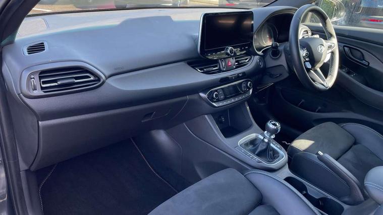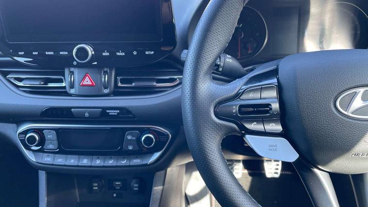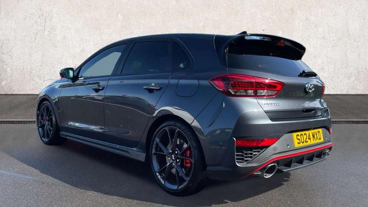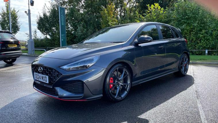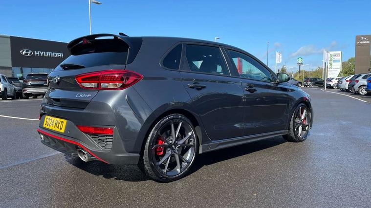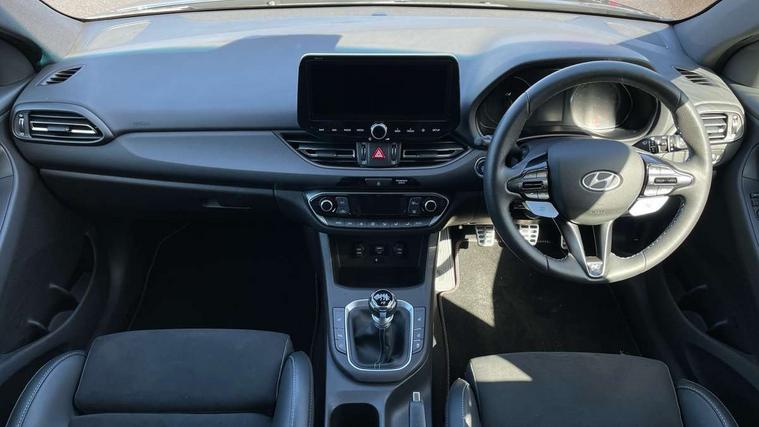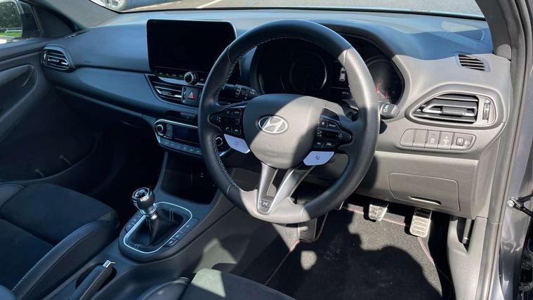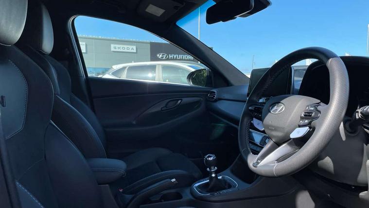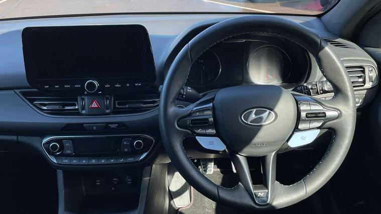 10.25" touchscreen centre console display satellite navigation including traffic messaging channel, map care and live services, Android Auto, Apple car play, Audio control with voice recognition, Blind spot Collision Warning (BCW), Bluetooth connectivity with voice recognition, Cruise control, Drive mode buttons, Driver attention alert system, Driver's supervision instrument cluster with 4.2" LCD display, e-Call (Emergency button system), Emergency stop signalling system, Forward collision avoidance assist, Front and rear parking sensors, Intelligent speed limit warning, Lane follow assist, Lane keep assist, N exclusive sport cluster, N grin shift, N mode button, N track sense shift, Parking system with rear camera and guidance system, Performance information display, Rack motor driven power steering, Rear collision assist, Rev matching system, Shift timing indicator, Trip computer, Windscreen washer fluid sensor and warning indicator, Wireless phone charging pad, Electric active sound design, Electronic limited slip differential, Electronically controlled suspension, Intelligent Stop and Go, Launch control, 2 front and 2 rear speakers with 2 tweeters, DAB Digital radio, USB ports in centre console, 1 speed non intermittent rear windscreen wiper, Active variable exhaust system, Adjustable intermittent front windscreen wipers with aero wiper blade, Automatic defog system for front windscreen, Automatic dimming rear view mirror, Automatic headlight with follow me home function, Automatic windscreen wipers with rain sensor, Black finish window surrounds, Black glossy door mirrors with integrated indicators, Body coloured door handles, Door mirror puddle lights, Dual LED Headlamps with Low/High Projection & Static Cornering, Dusk sensor, Electric adjustable heated door mirrors, Electric folding door mirrors, Electric windows - front and rear with anti-trap mechanism and one touch control (driver window), LED daytime running lights, LED tail lights, N exclusive front and rear bumpers, N exclusive radiator grille, N exclusive rear diffuser, Rear brake light in signature N triangular design, Rear LED lights, Rear side wing doors, Rear spoiler with integrated LED brake light, Rear stiffness bar, Rear windows and tailgate privacy glass, Shark fin antenna, Static Cornering lights, Tinted glass with windscreen shade band, 12V power outlets in front console and luggage compartment, 3 seat bench in 2nd row, 60/40 split folding rear seat, Active head restraints, Aluminium pedals, Black roof liner, Centre console storage, Chrome effect interior door handles, Driver's seat electric height adjustment, Driver's seat manual extendable seat cushion, Driver/passenger sunvisors and illuminated vanity mirrors, Dual zone climate control air conditioning, Electric adjust driver's seat, Floor mats, Front and rear door pockets, Front armrest with storage box, Front cupholders, Front head restraints with vertical and horizontal adjustment, Front passenger's seat electric adjustments, Front passenger's seat electric height adjustment, Front passenger's seat electric lumbar support, Front passenger's seat manual extendable seat cushion, Front, rear and luggage compartment interior lights, Glove compartment, Heated front seats, Heated function steering wheel, Interior front map reading light and sunglasses holder, ISOFIX child seat anchorage points attached on outer rear seats, Leather gearstick gaiter with light blue stitching, Leather wrapped steering wheel and gear knob, Luggage board, N branded aluminium door sill trims, N drive mode steering wheel button in blue, Reach + rake adjustable steering column, Rear armrest with cupholder, Rear head restraints, Single front passenger seat, Steering wheel audio, phone and cruise control buttons, 3x3 point rear seatbelts, Airbags - front, front side and curtain airbags, Anti-lock braking system (ABS), Childproof rear door locks, Curtain airbag roll over sensor, Electronic stability control, Front passenger airbag deactivation switch, Front seatbelt reminder, Height adjustable seatbelts, Hill start assist control (HAC), Manual parking brake, N power shift, Red brake calipers with N logo, Reinforced brakes, Seatbelt reminder for rear passenger seats, Torque vectoring brake, Tyre pressure monitoring system (TPMS), Deadlocks, Immobiliser, Locking wheel nuts, Remote control central locking, Smart key with keyless entry and engine start/stop button, Speed sensitive automatic door locking, Thatcham category 1 alarm, 19" Gloss black alloy wheels, 19" Pirelli P zero performance tyres, Temporary mobility kit (TMK),